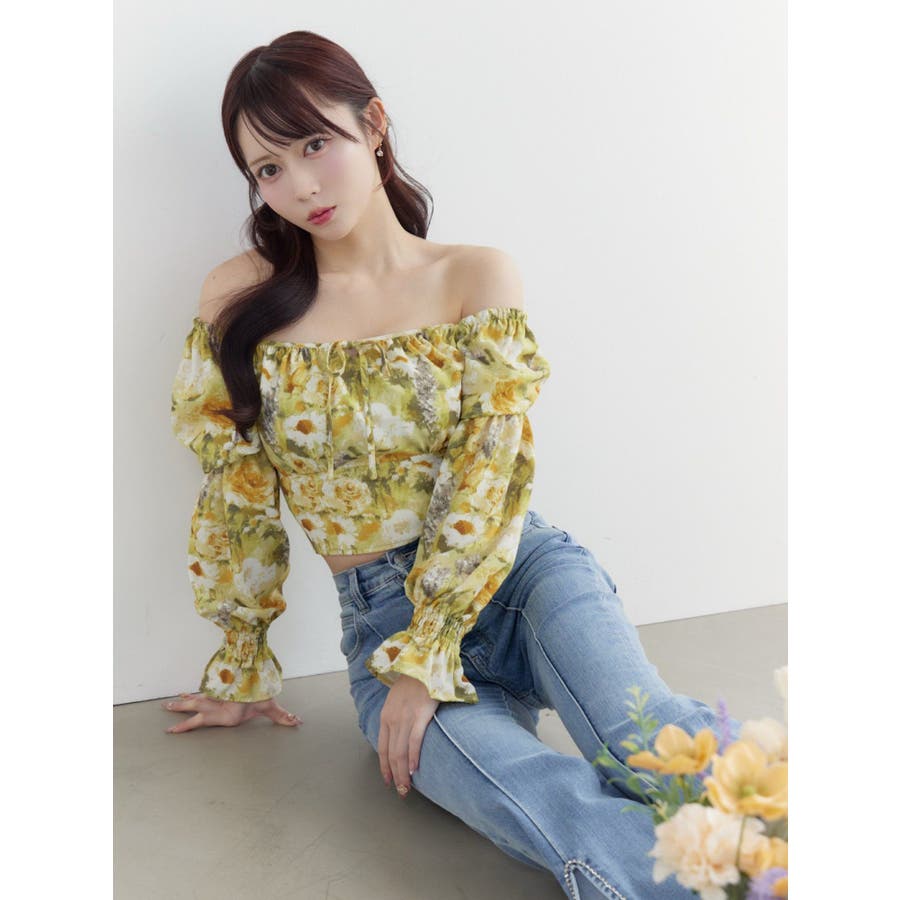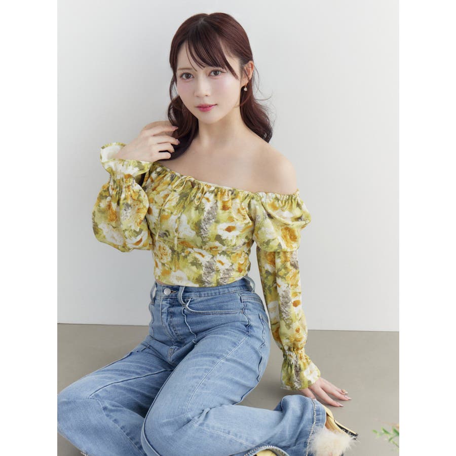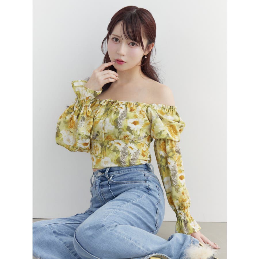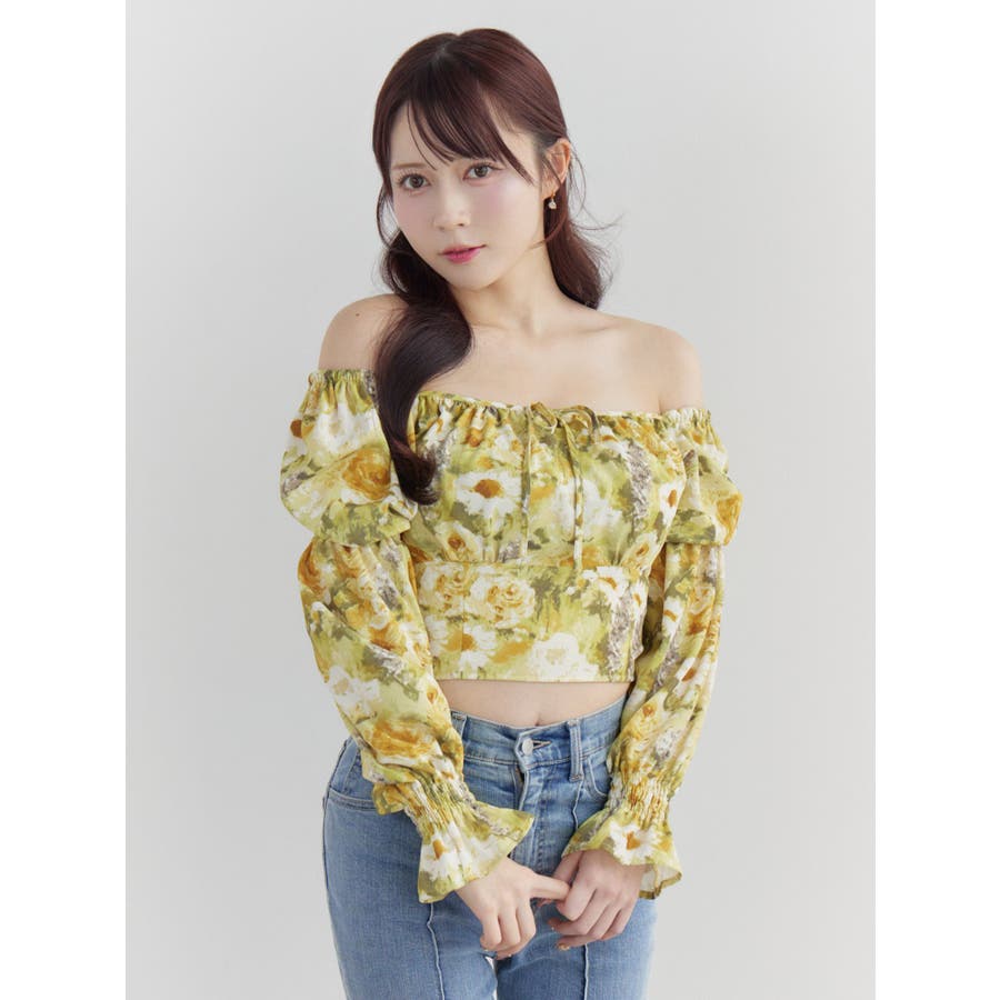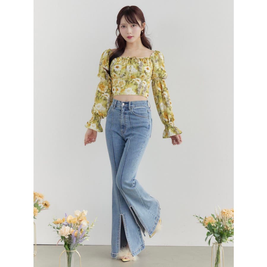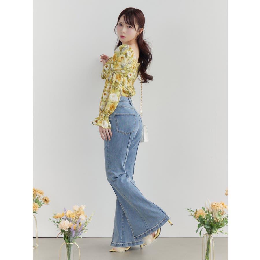 スクエアネックシャーリングブラウス