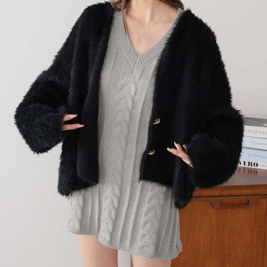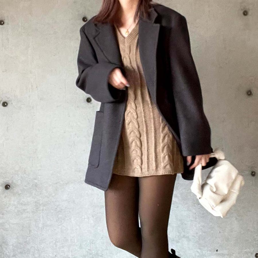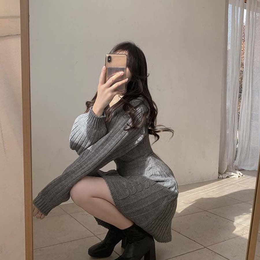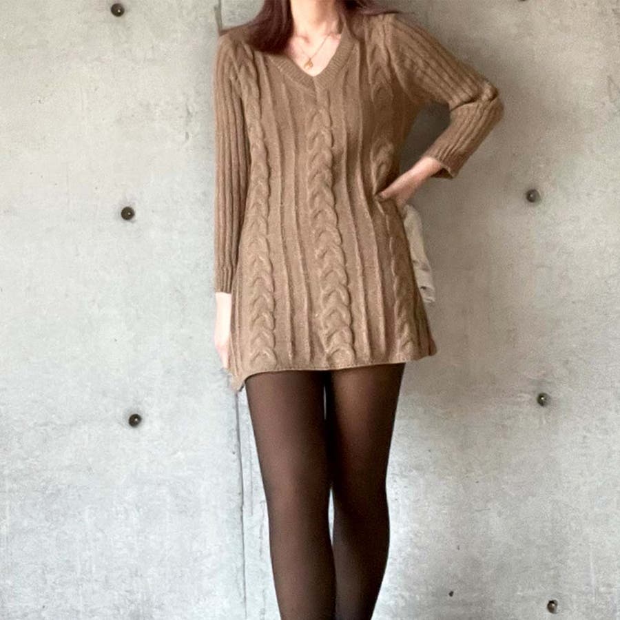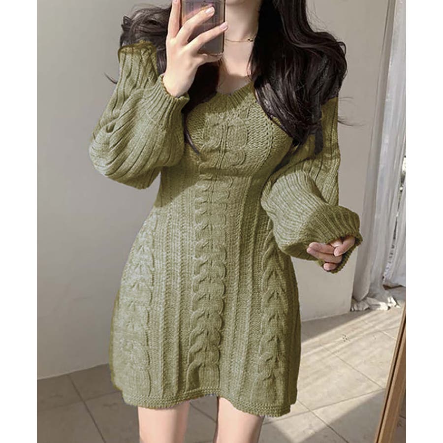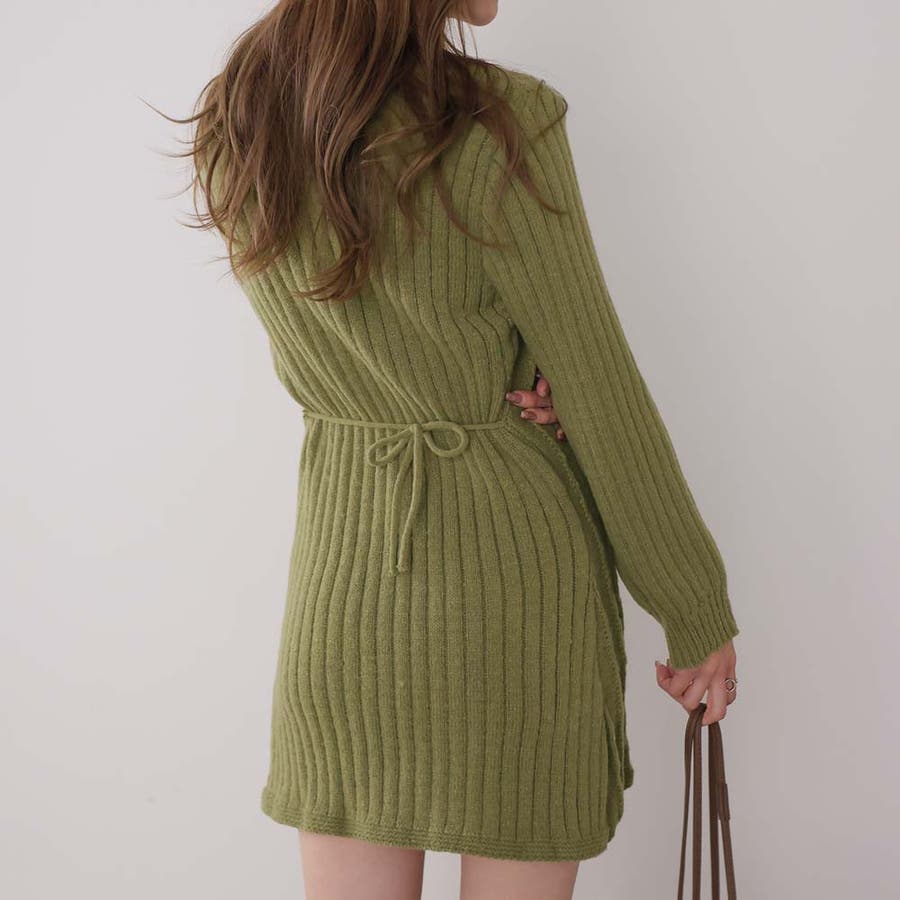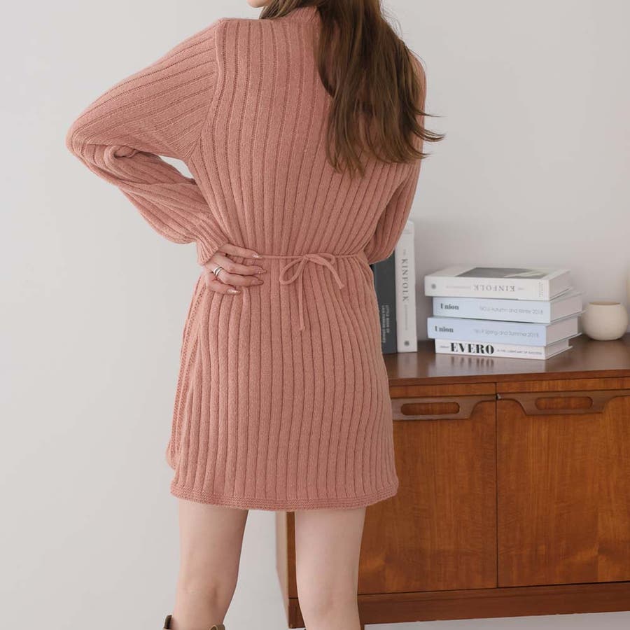 Vネックケーブルニットミニワンピース【韓国ファッション】