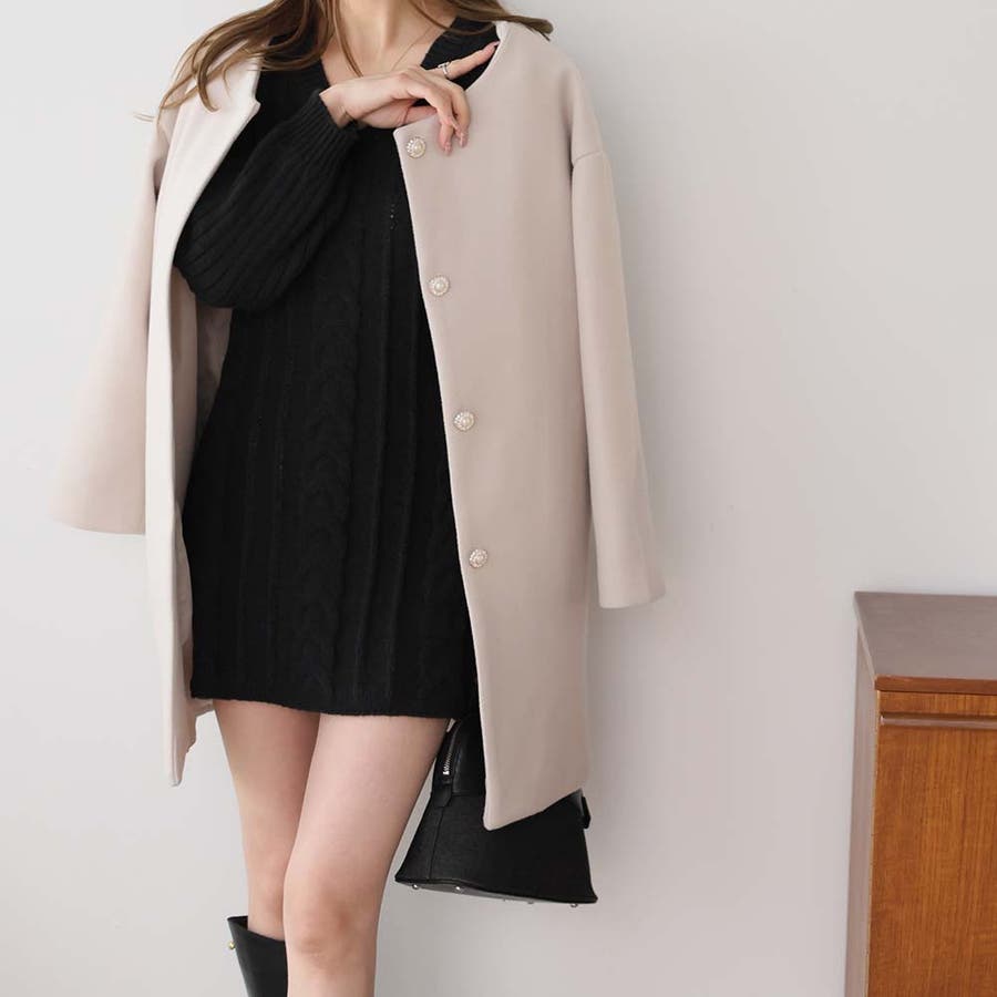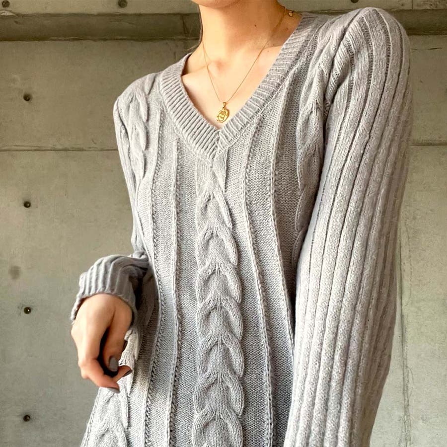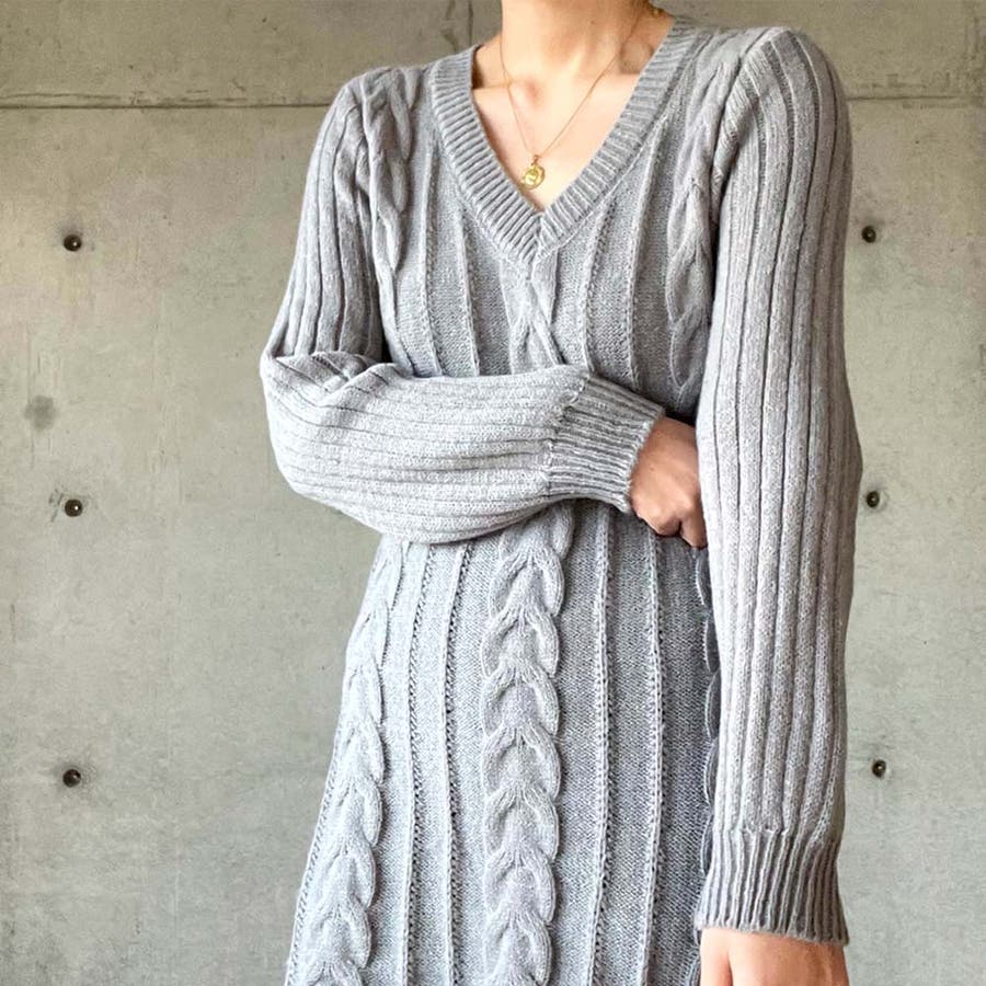 ケーブル編みがポイントのシンプルなデザインのワンピース。