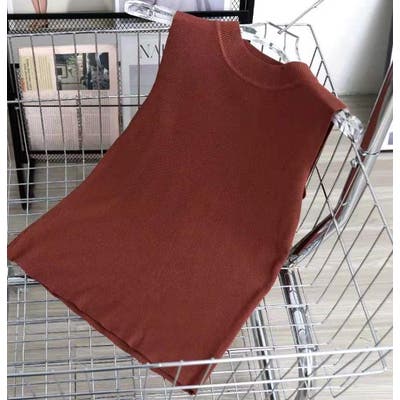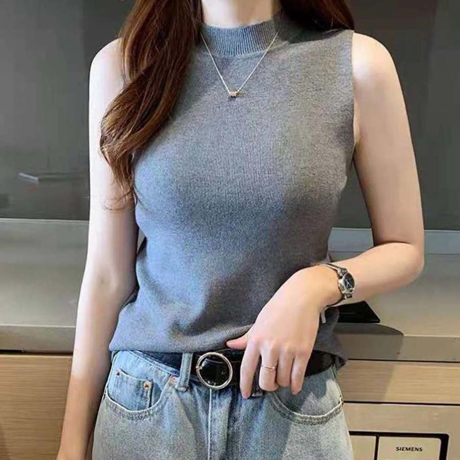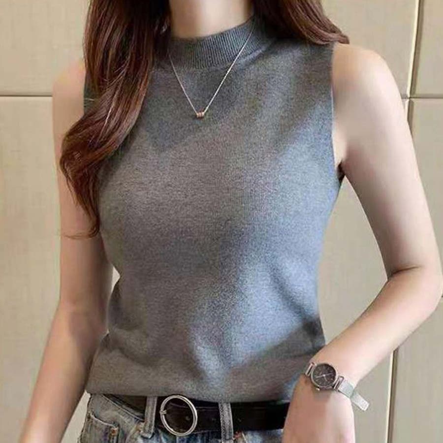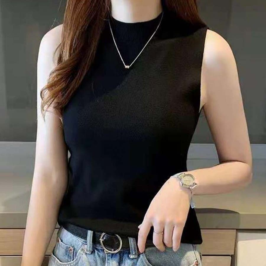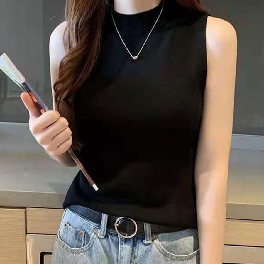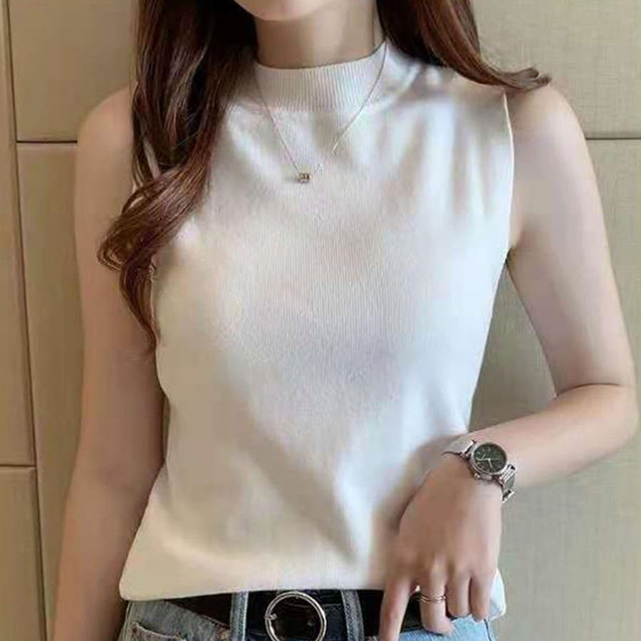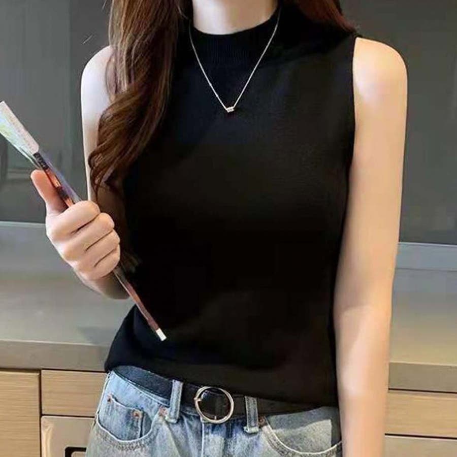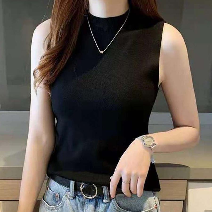 夏にさらっと着られるノースリーブのきれいめリブニット。