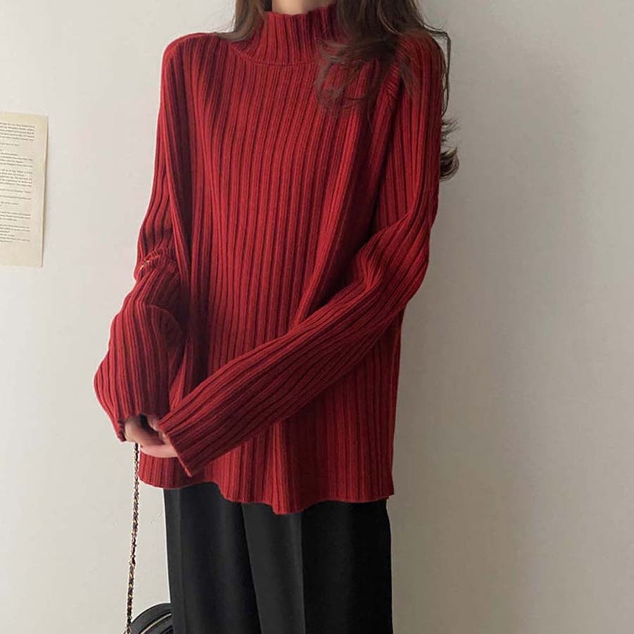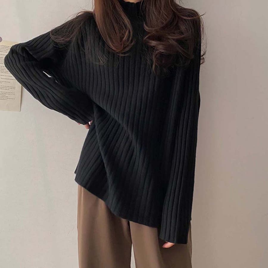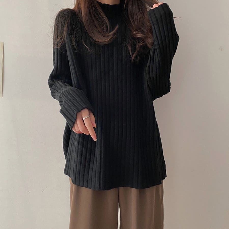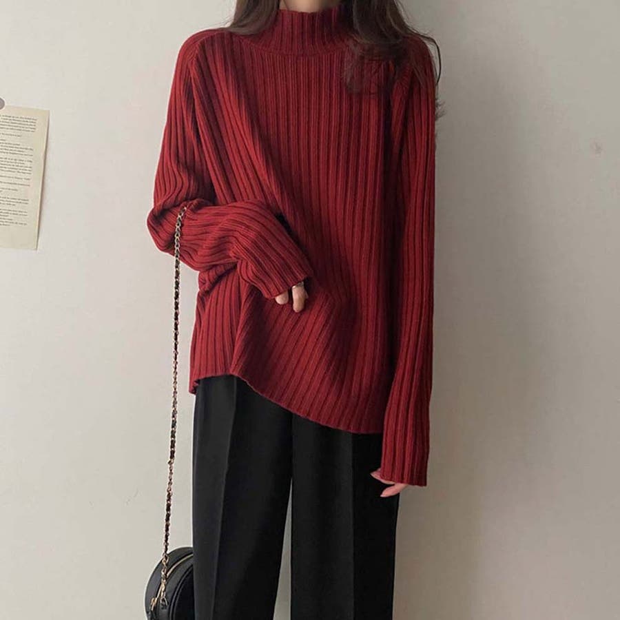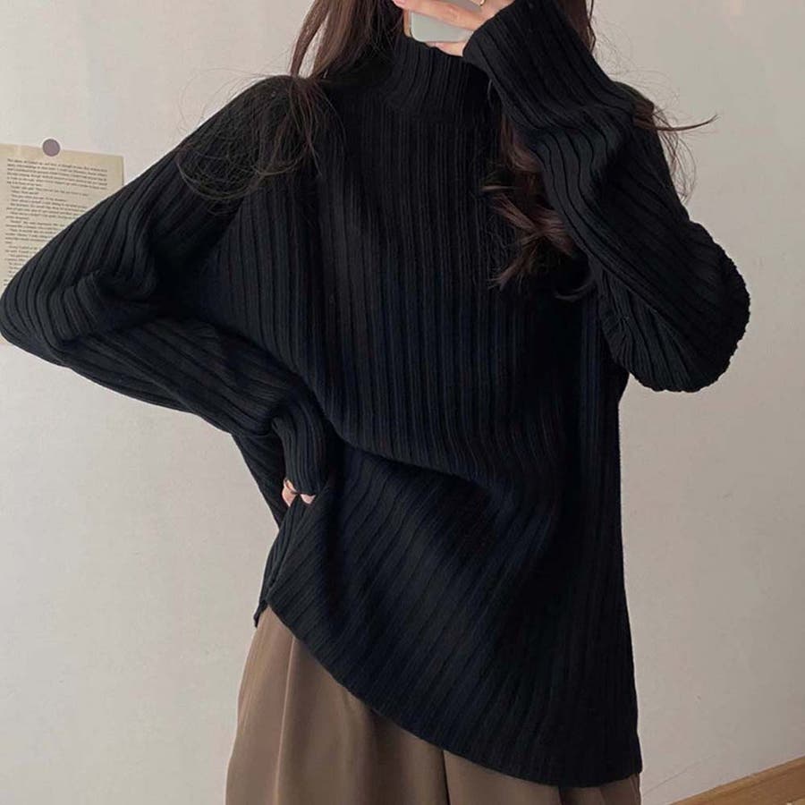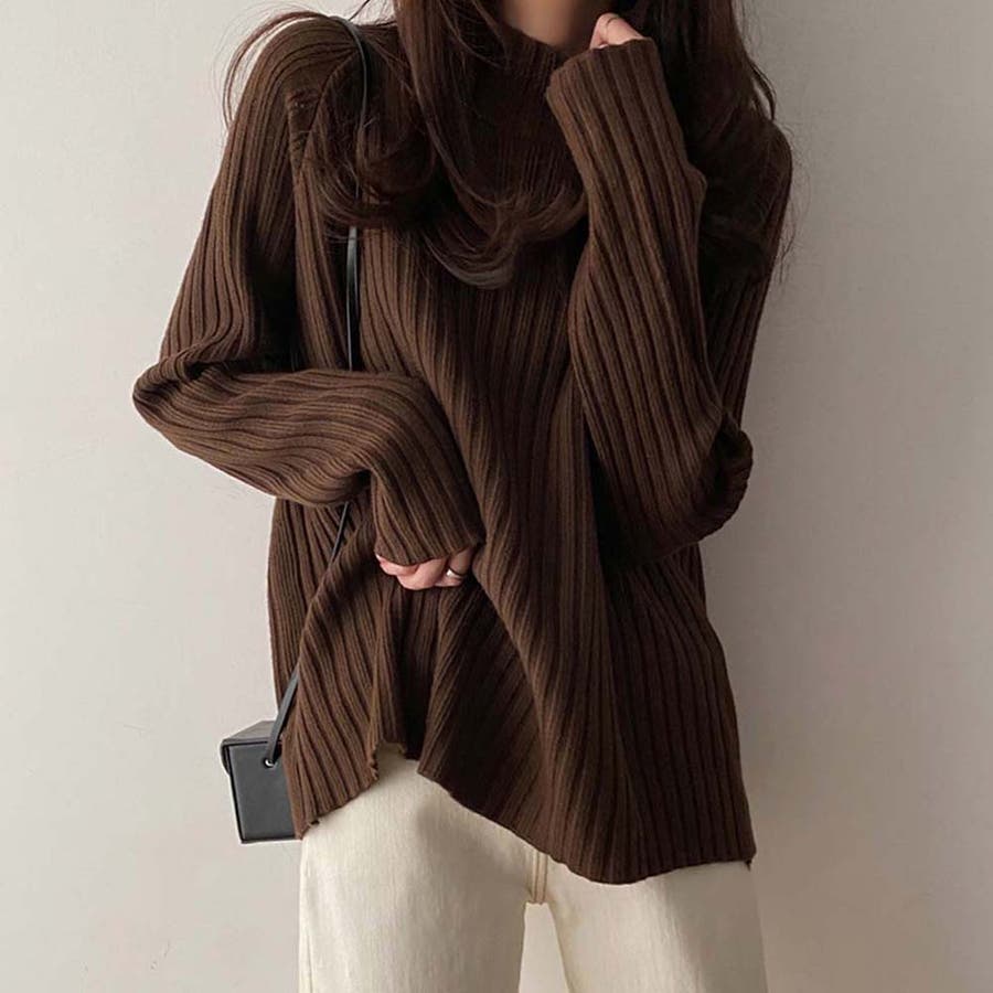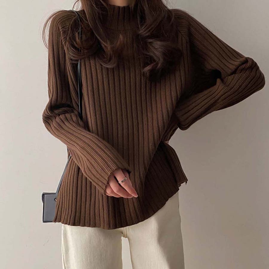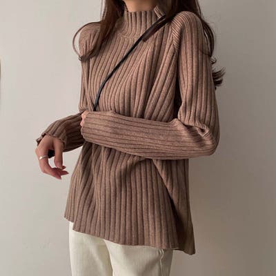 ボトルネックリブニットセーター【韓国ファッション】