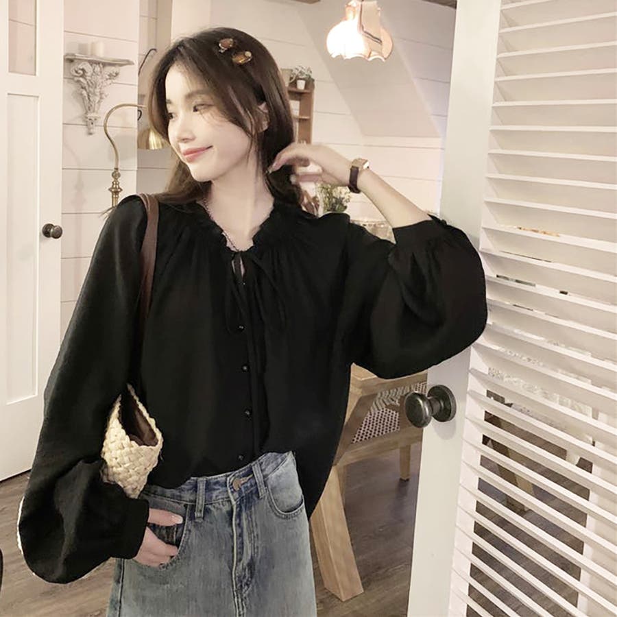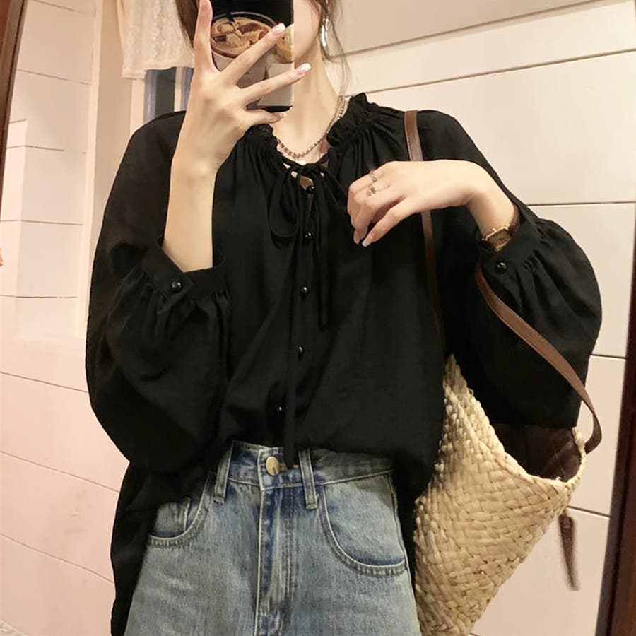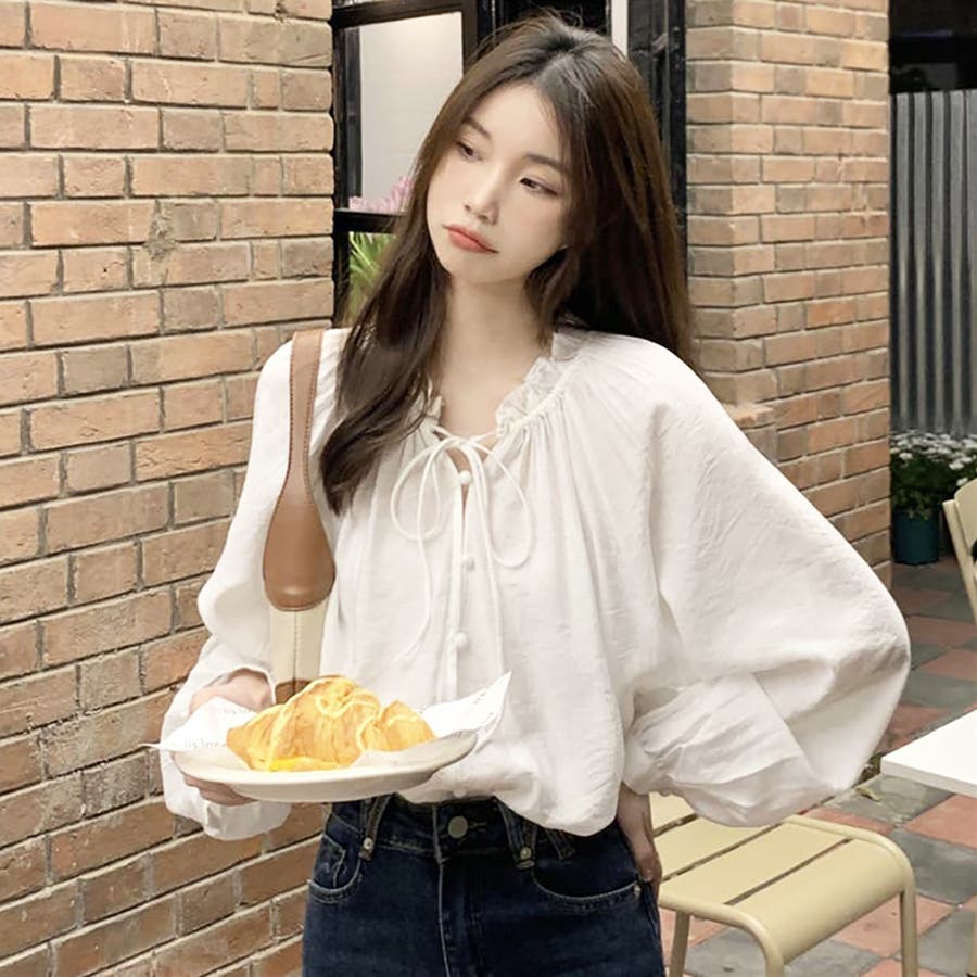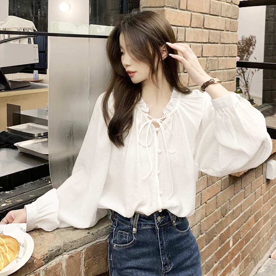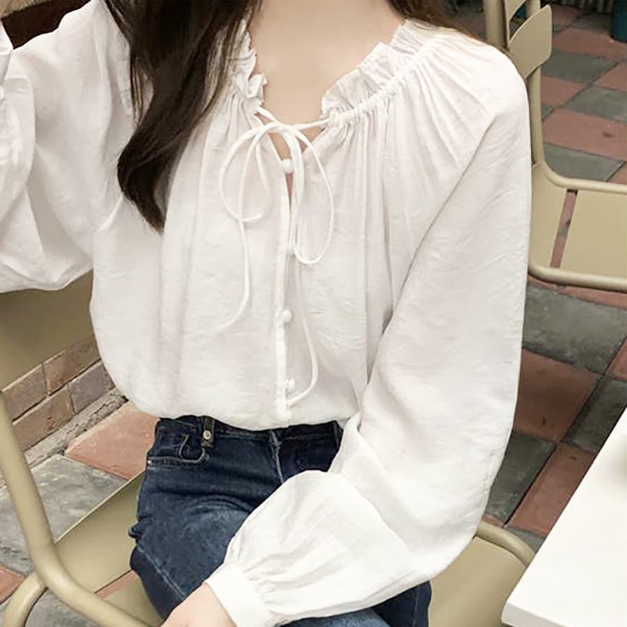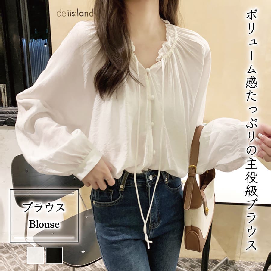 ギャザーネックボリュームスリーブブラウス【韓国ファッション】