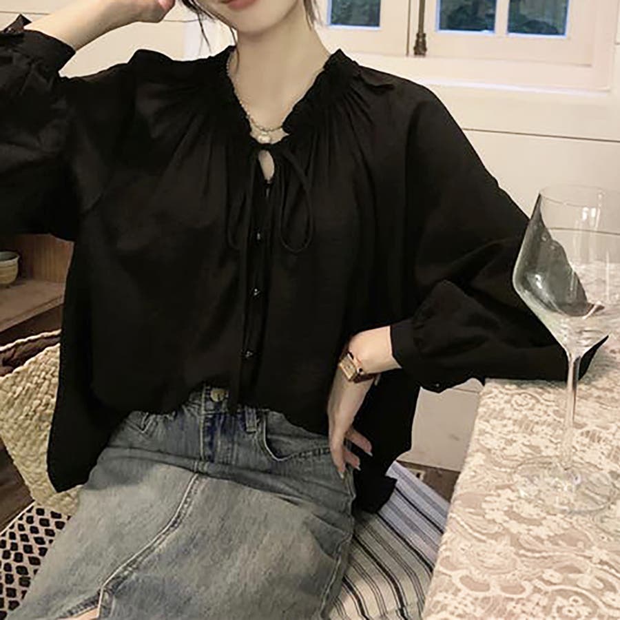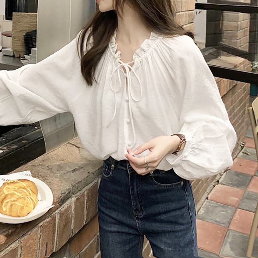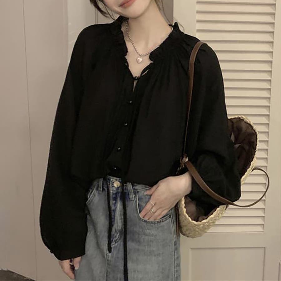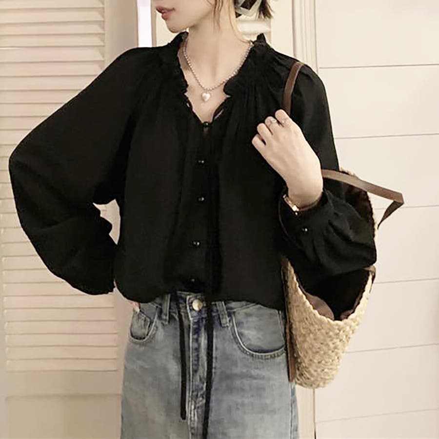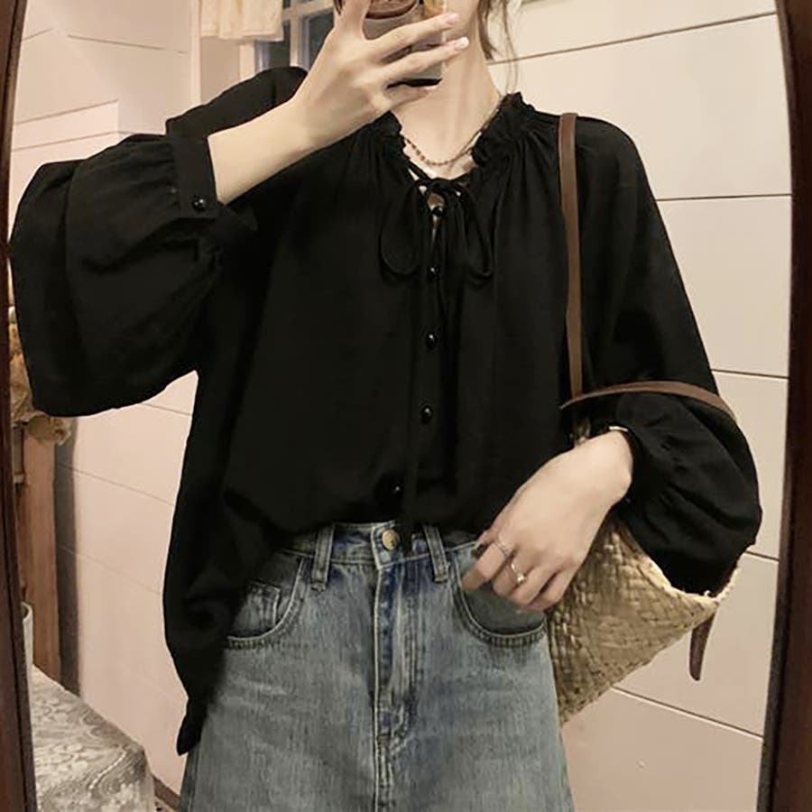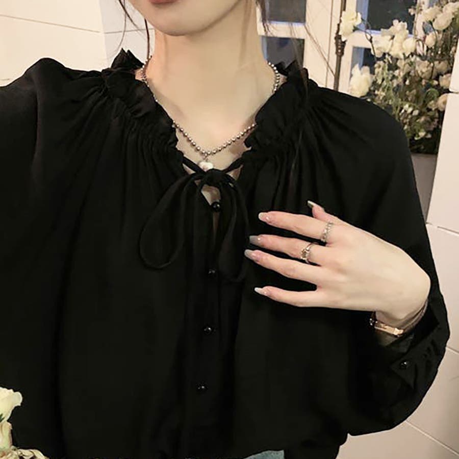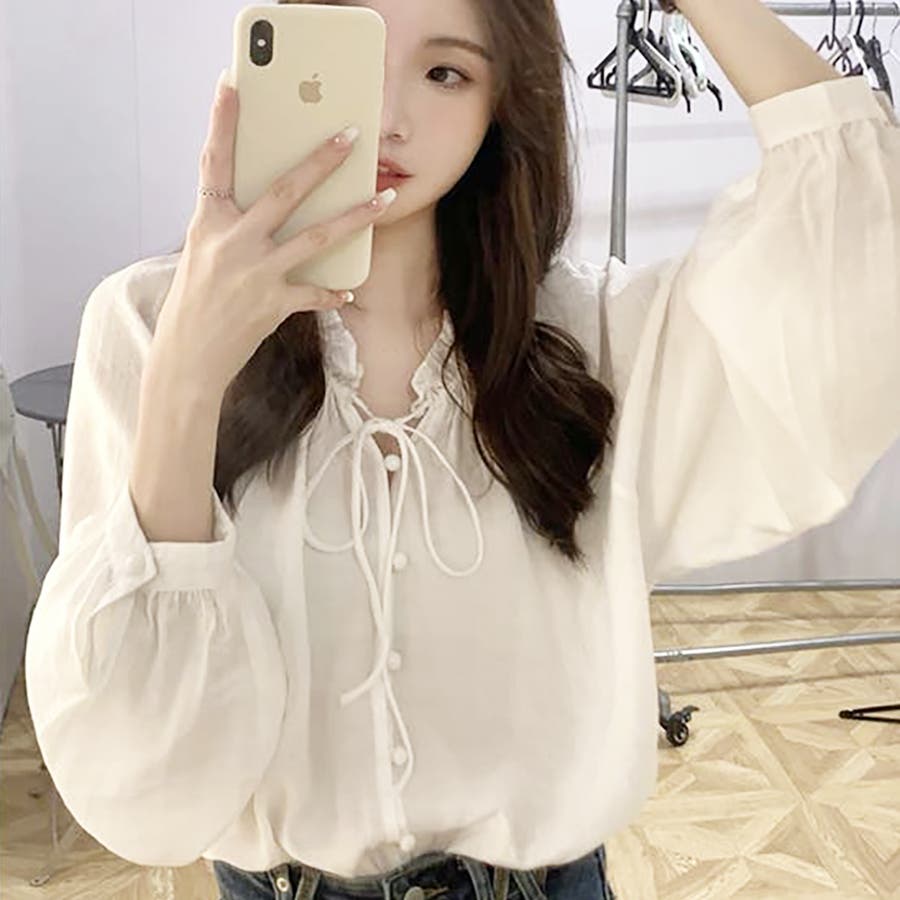 ギャザーネックボリュームスリーブブラウス【韓国ファッション】