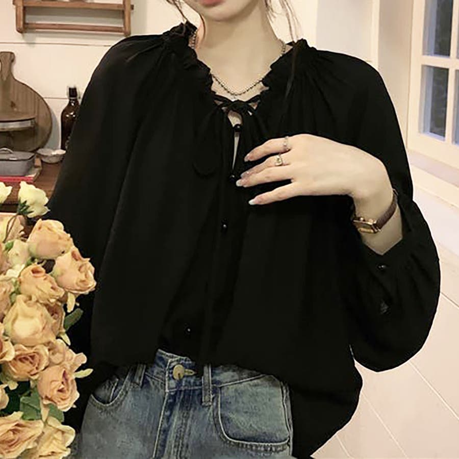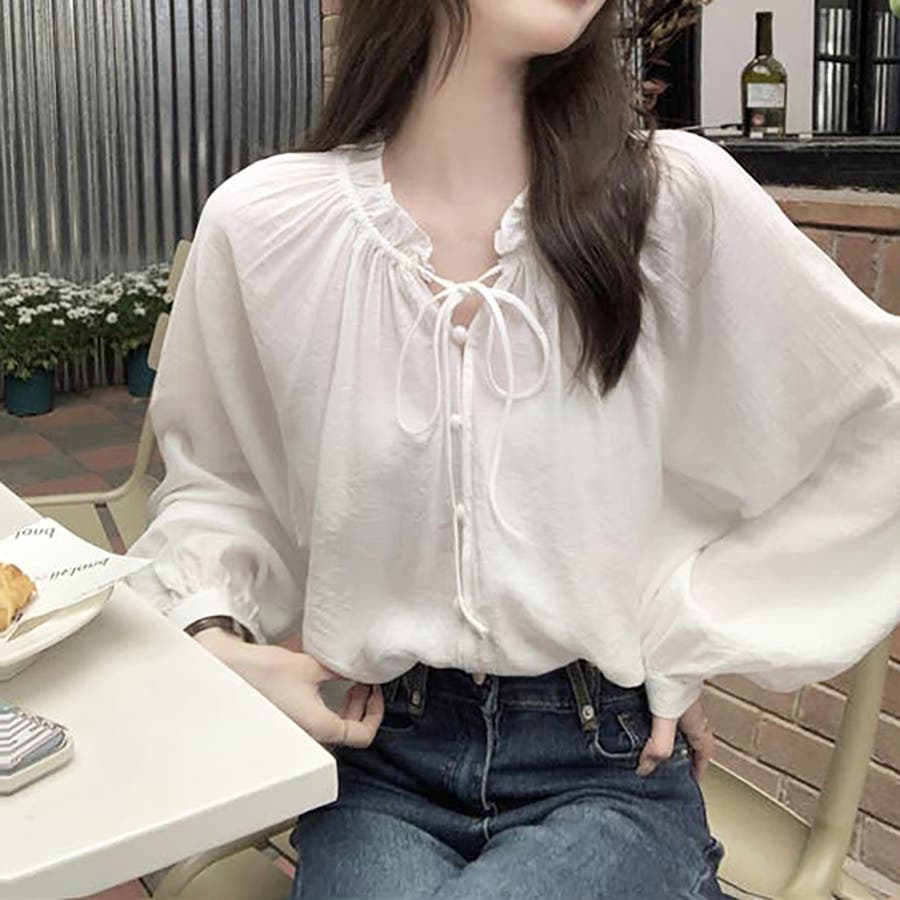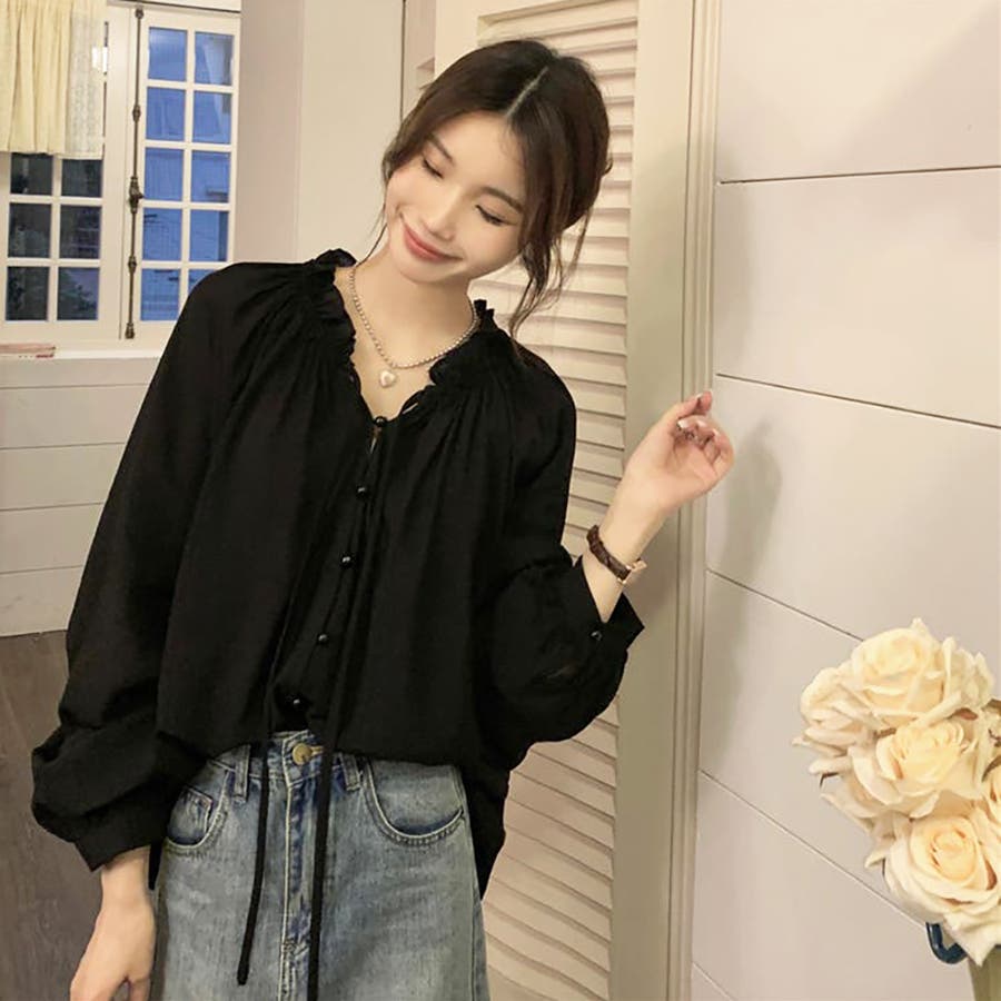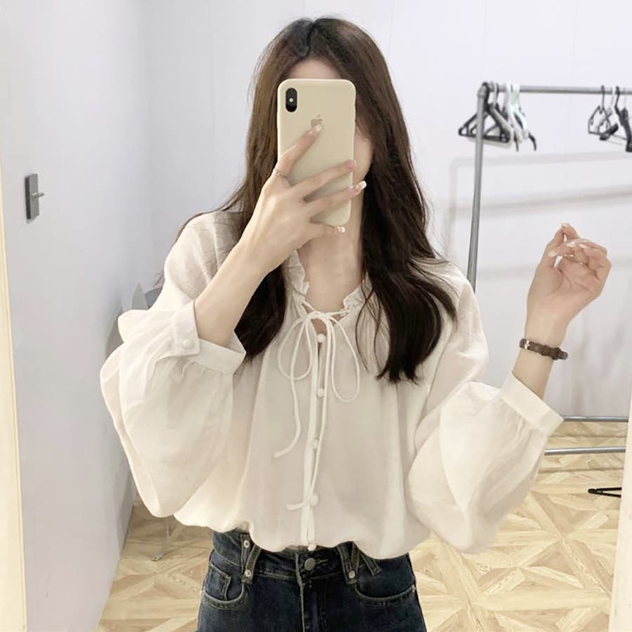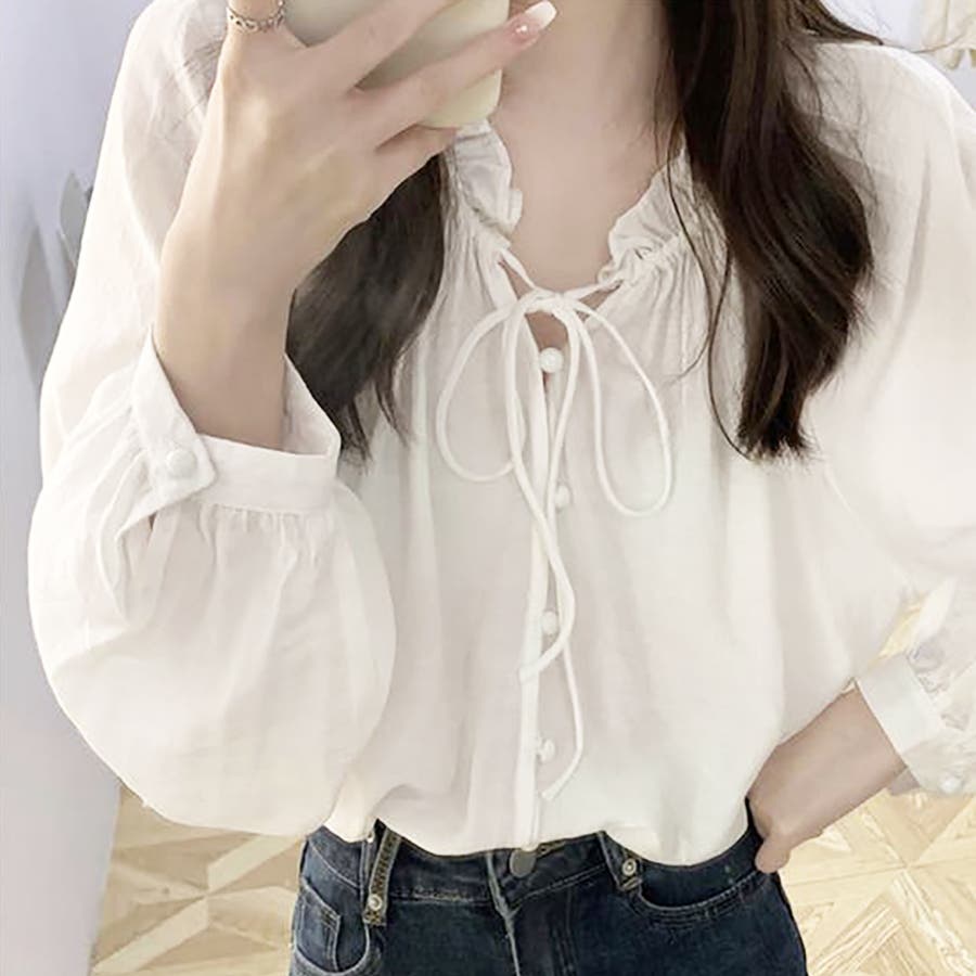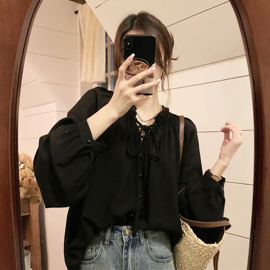 ギャザーネックボリュームスリーブブラウス【韓国ファッション】