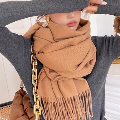 ストールとして肩から掛けたり、ぐるっと首に巻いたスタイルなど…