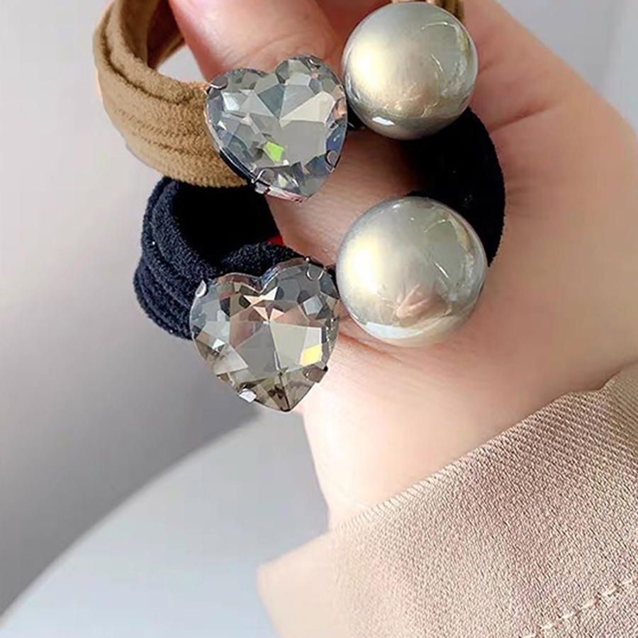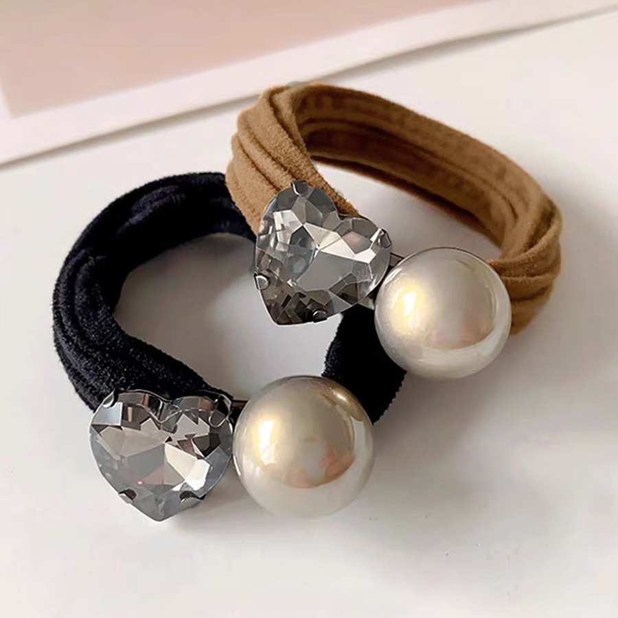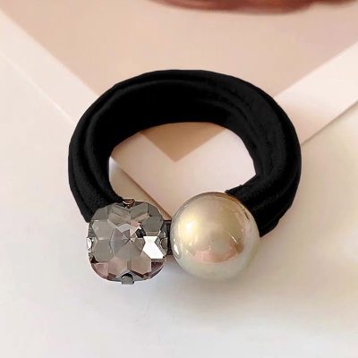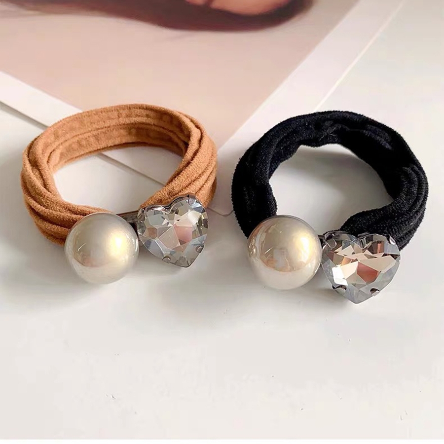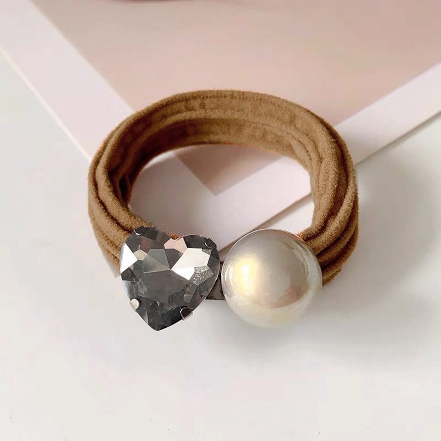 優しく温かみを感じるツヤツヤパールとビジューの組み合わせがカワイイヘアゴム。女性らしくシンプルなデザイン。