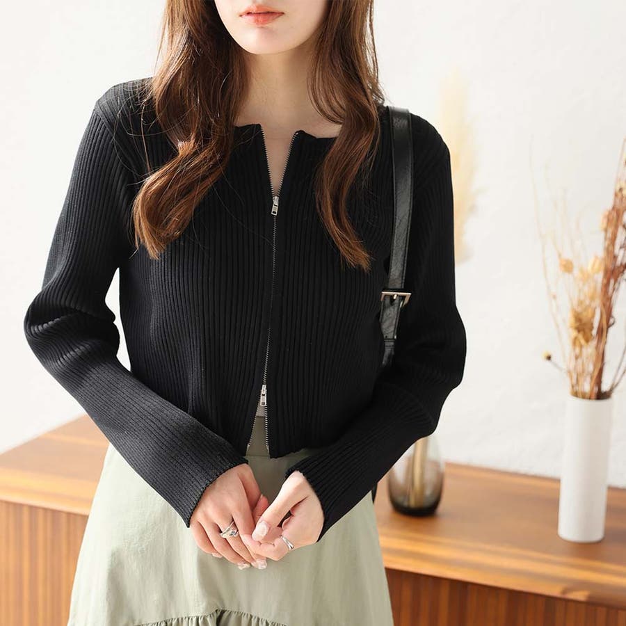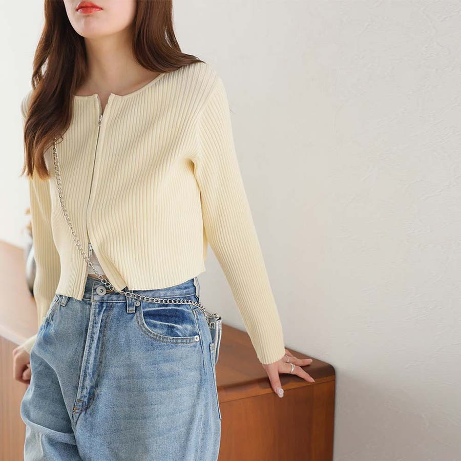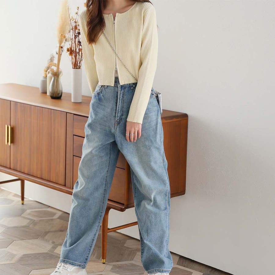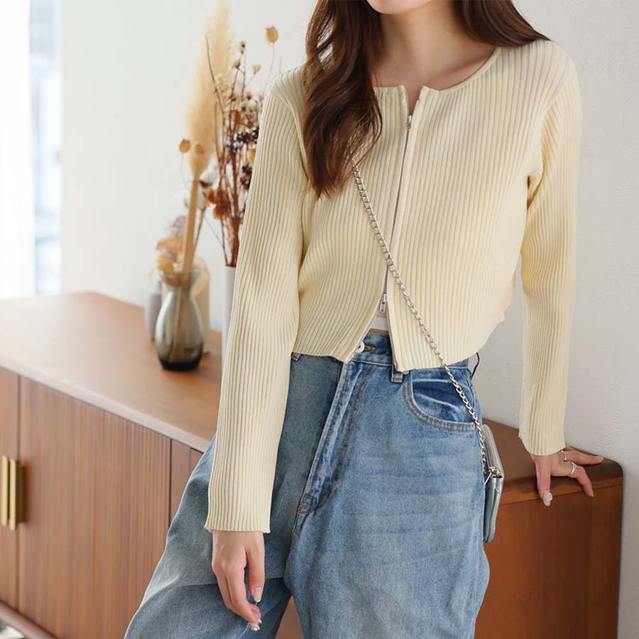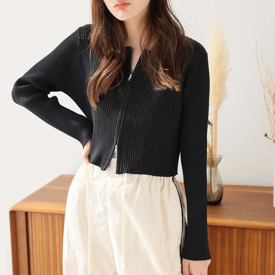 ショート丈なのでハイウエストのパンツやスカートとの相性がベスト。