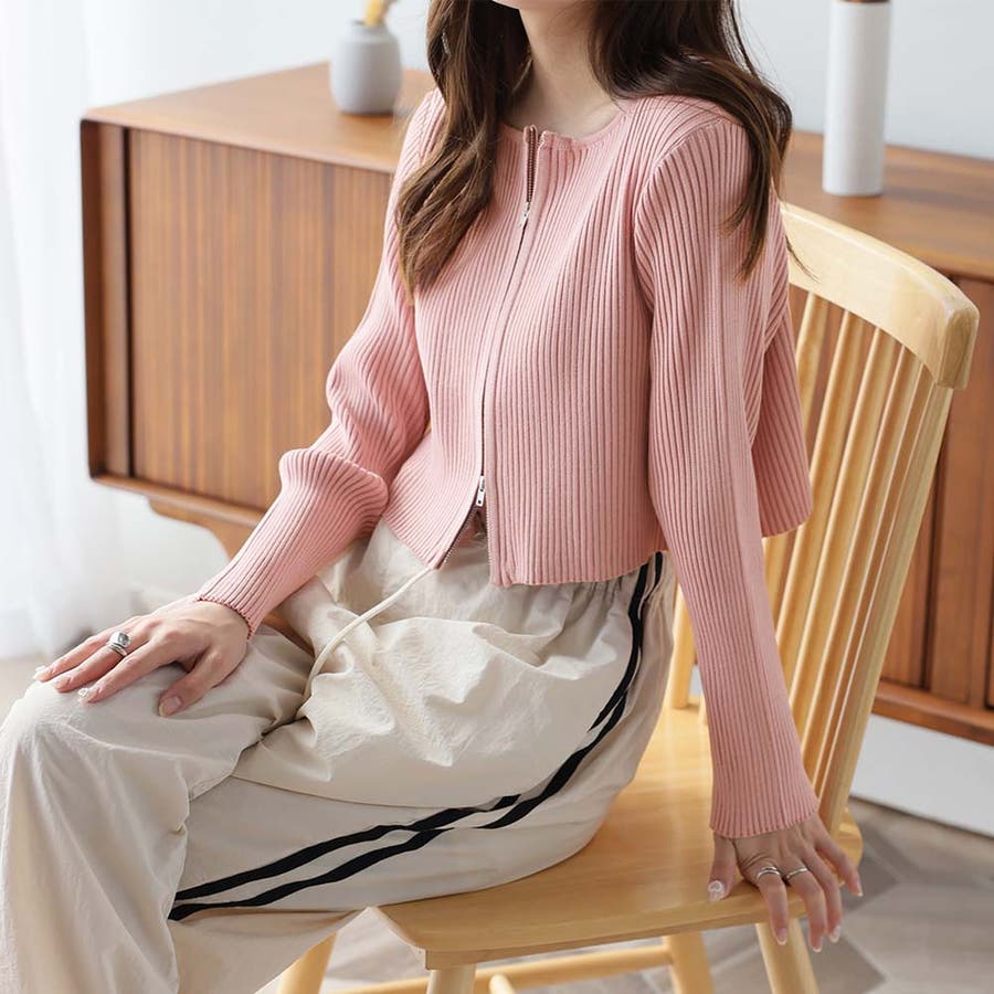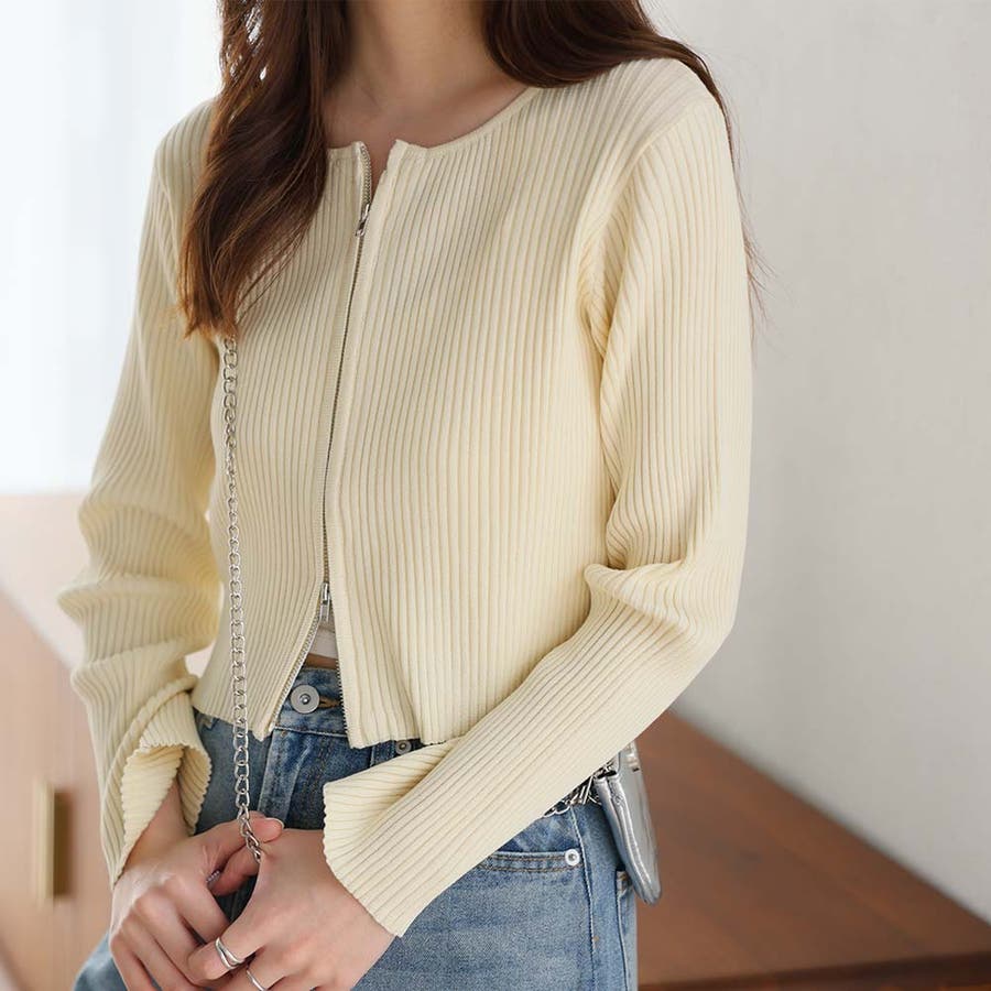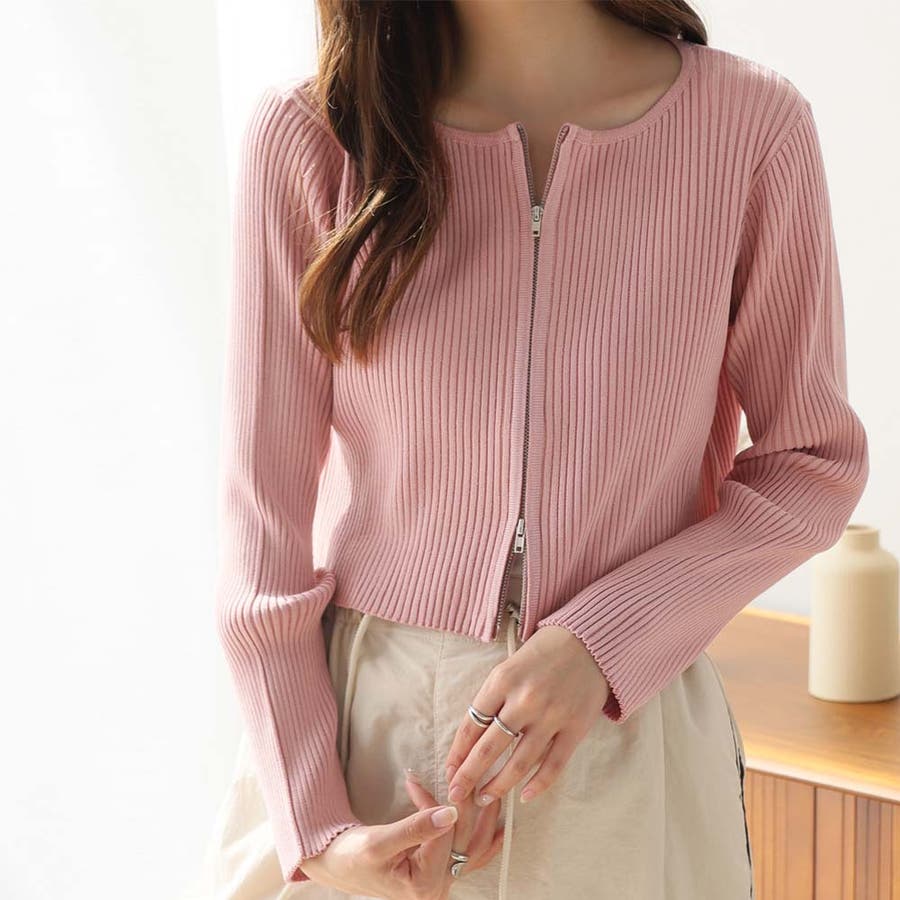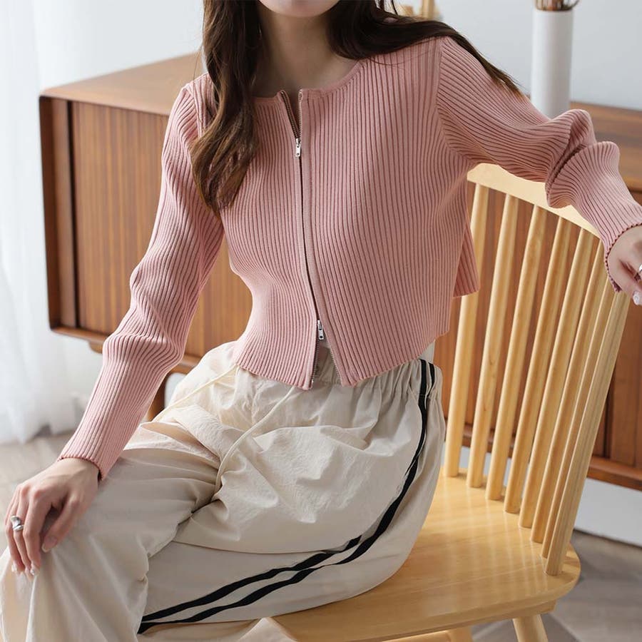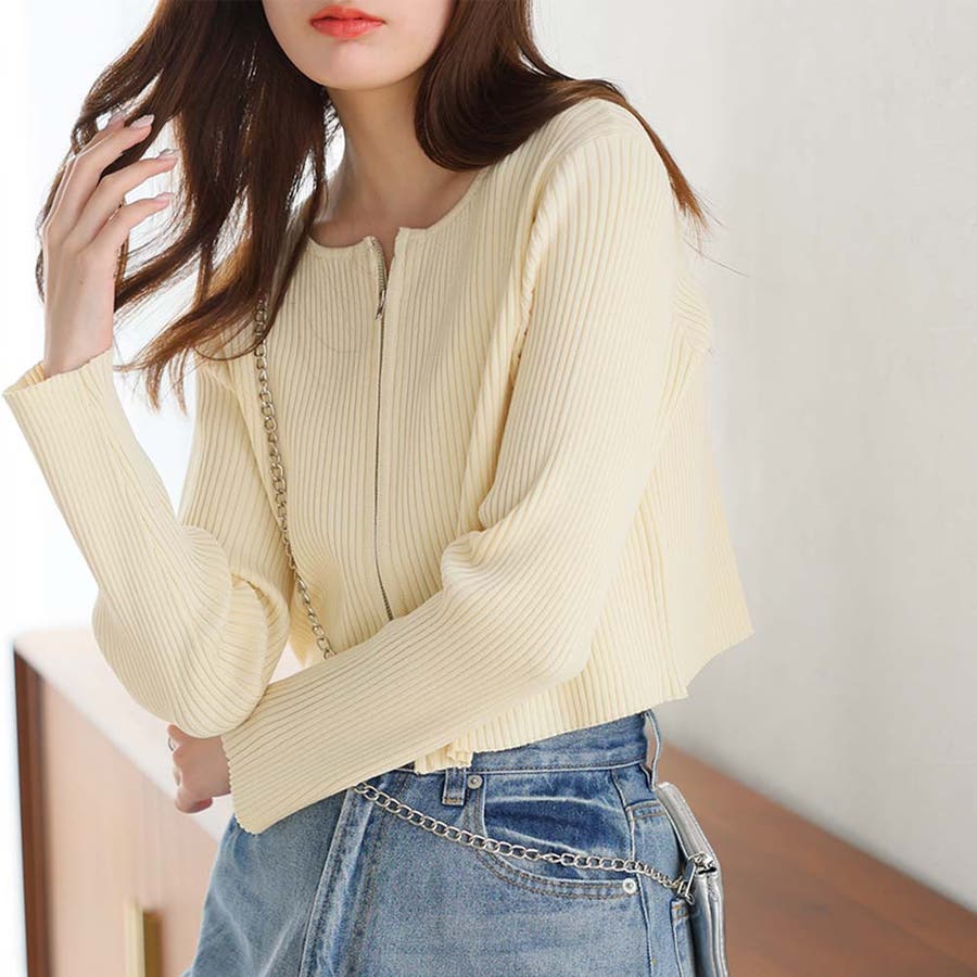 ショート丈なのでハイウエストのパンツやスカートとの相性がベスト。