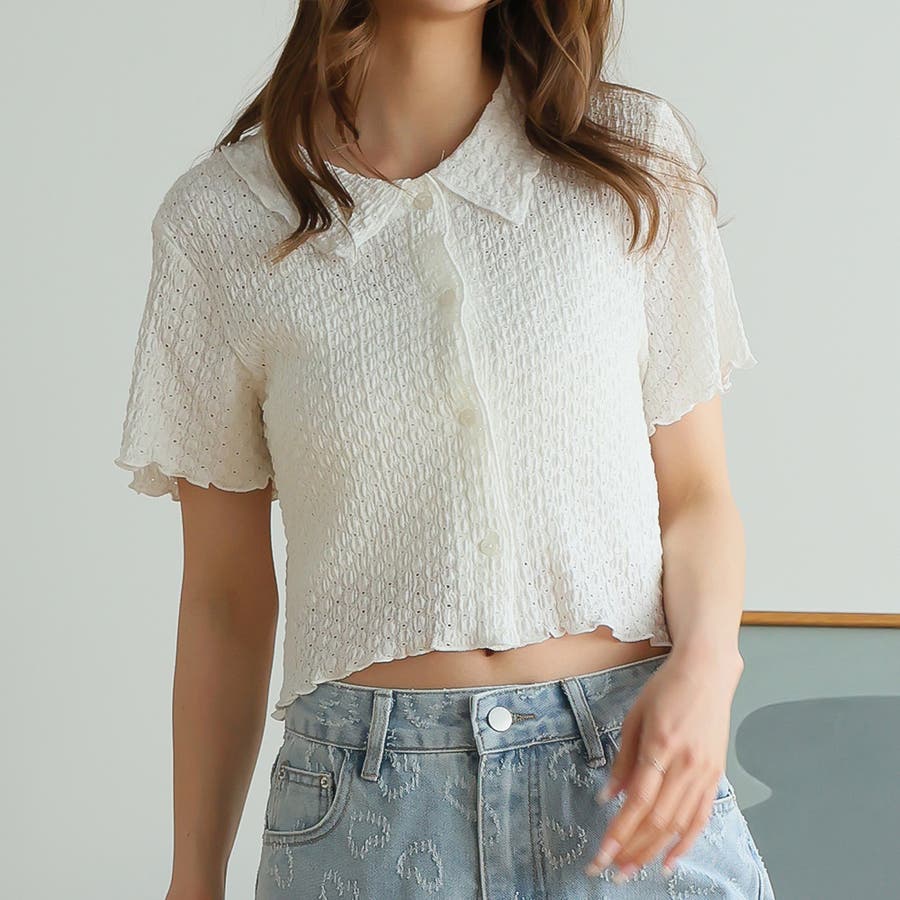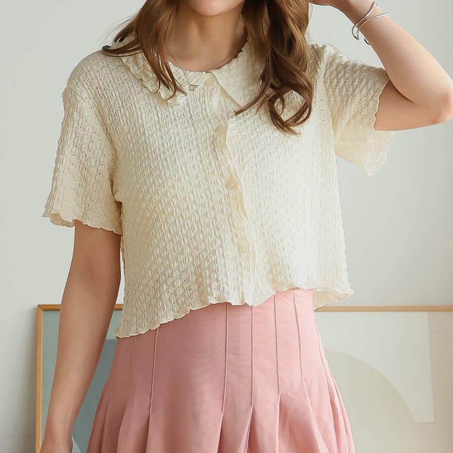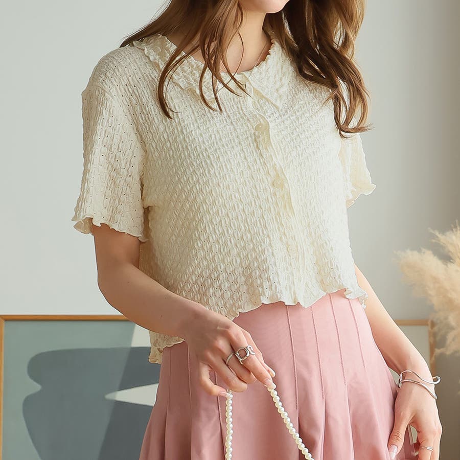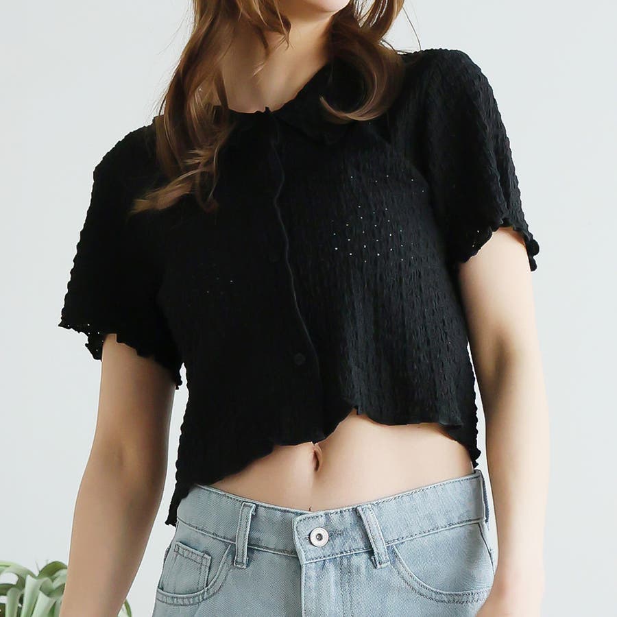 ポコポコワッシャー半袖メローシャツカーデ