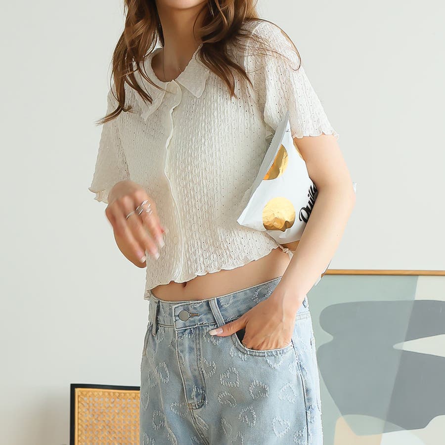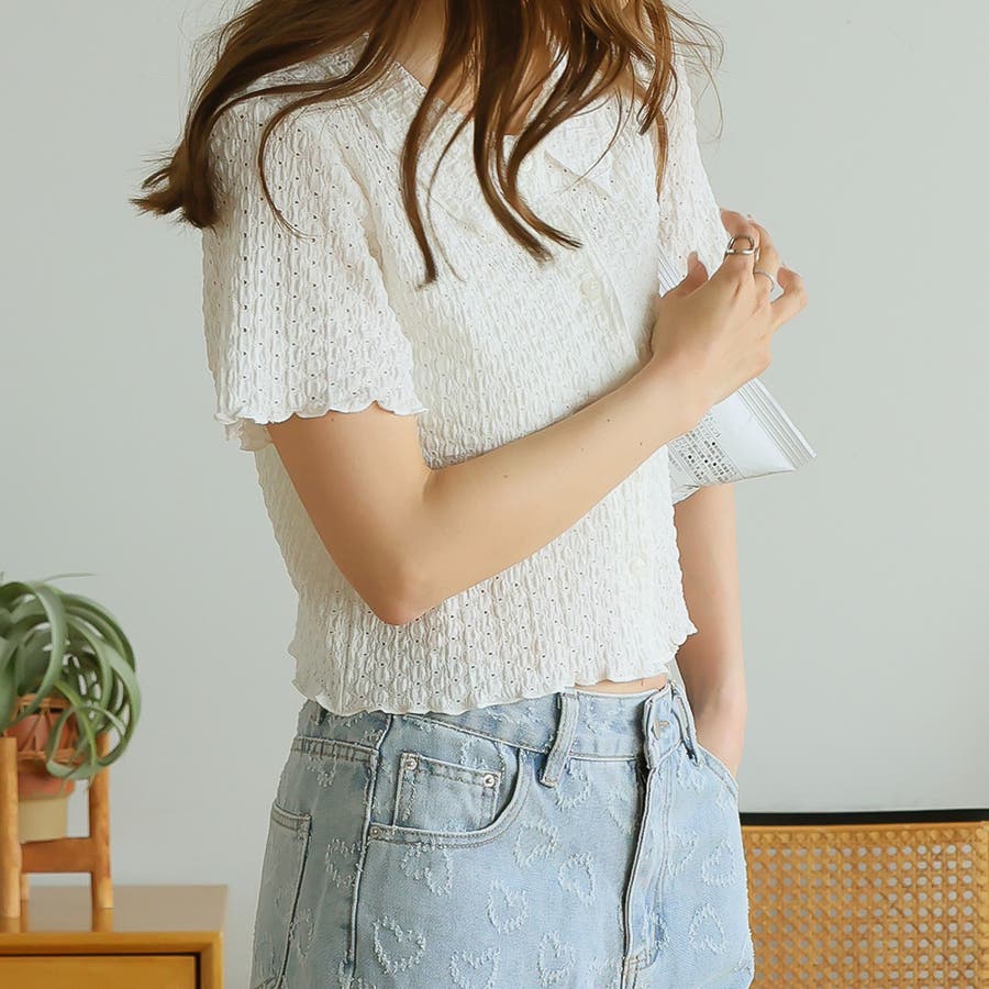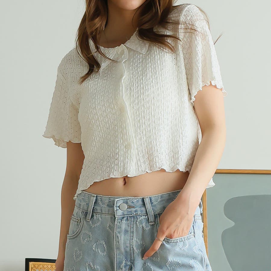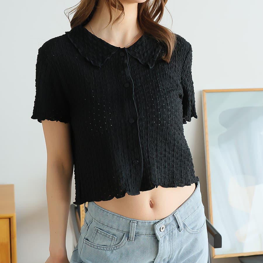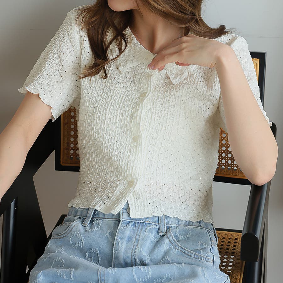 ポコポコワッシャー半袖メローシャツカーデ