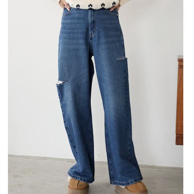ゆるっとしたルーズシルエットがこなれ感を演出するストレートデニムパンツ。