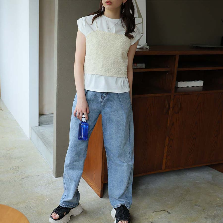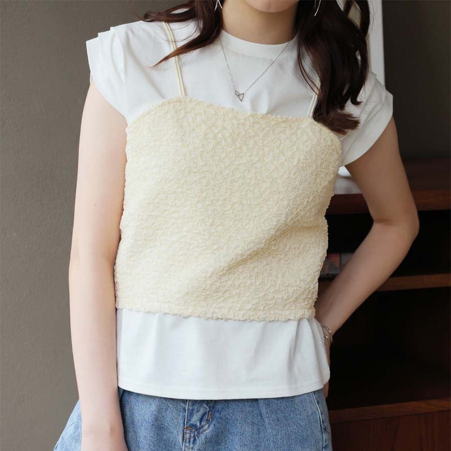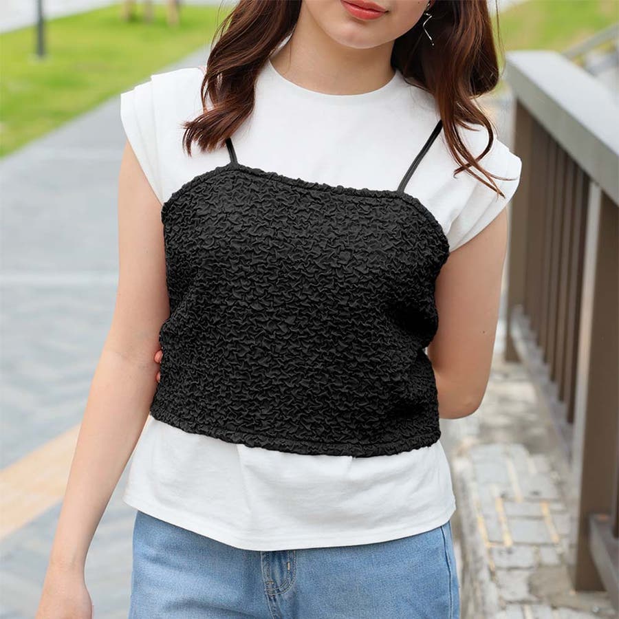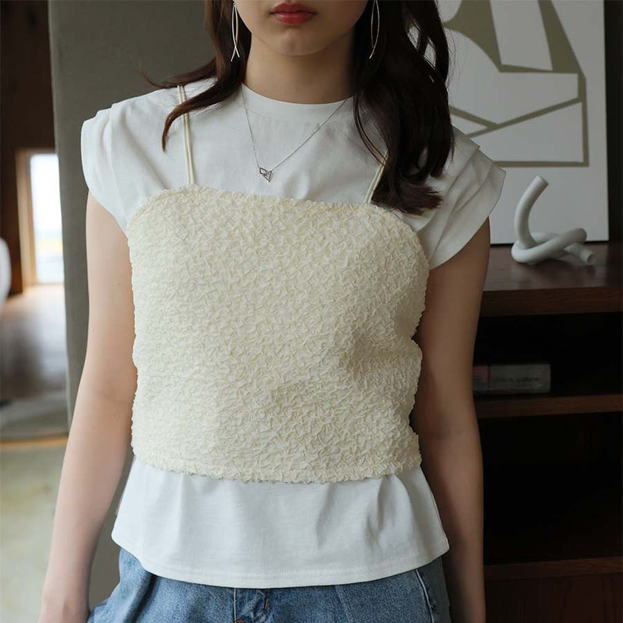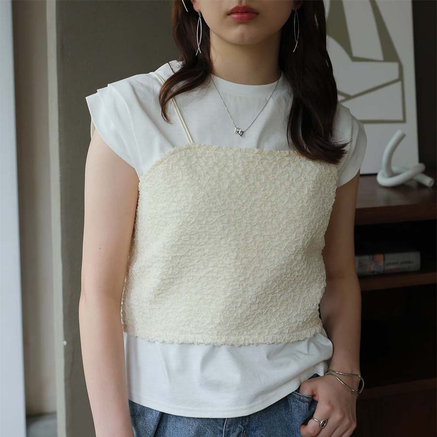 ビスチェキャミ+袖タックデザインTシャツ