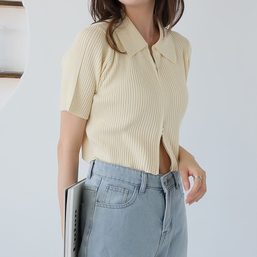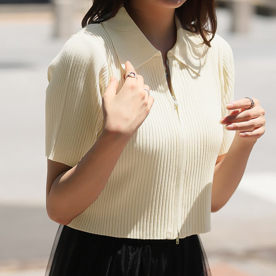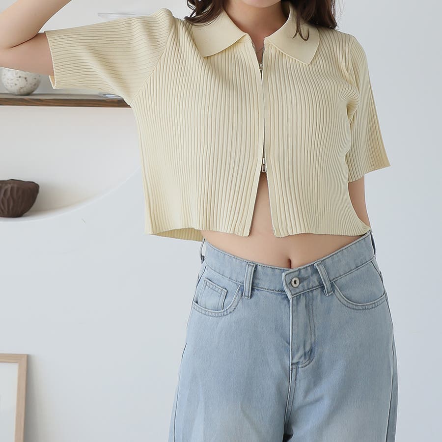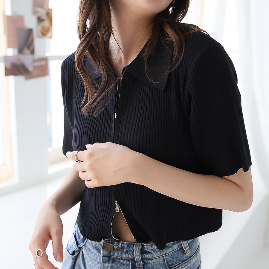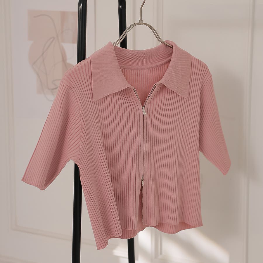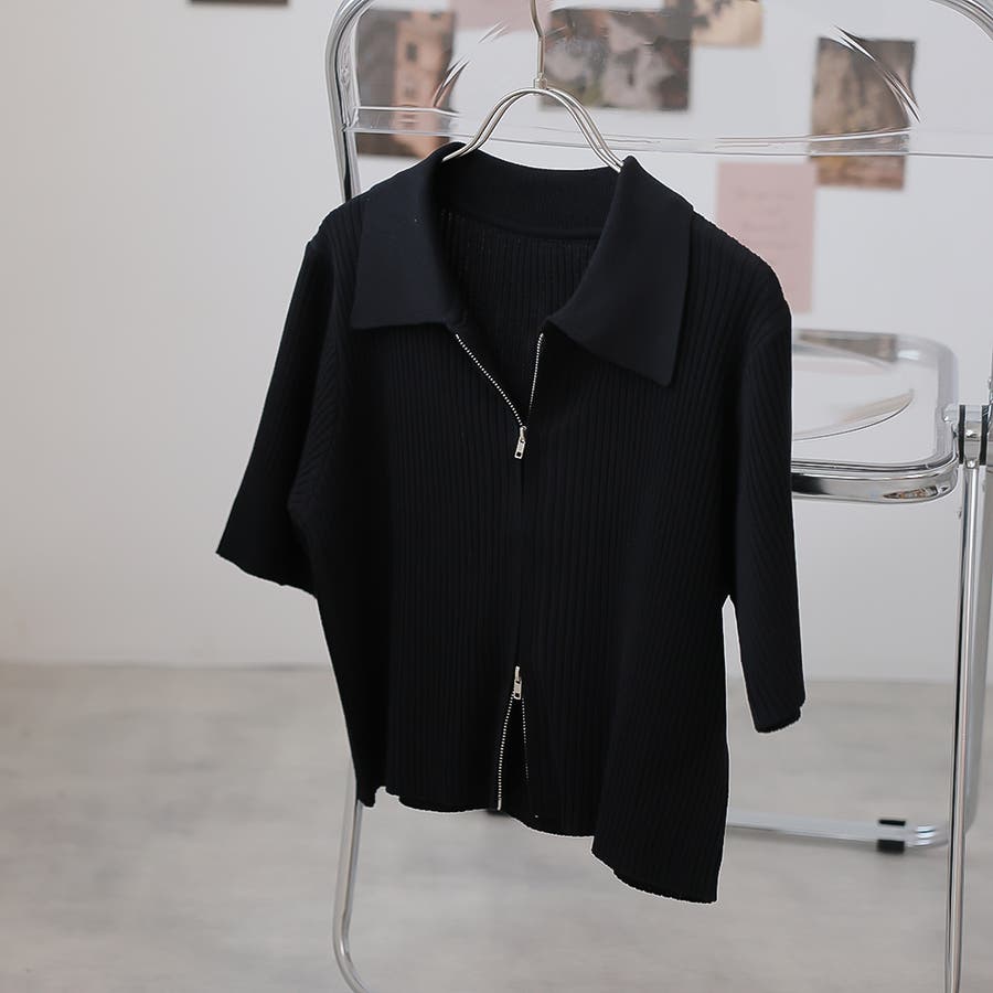 Wジップ半袖ニットカーディガン