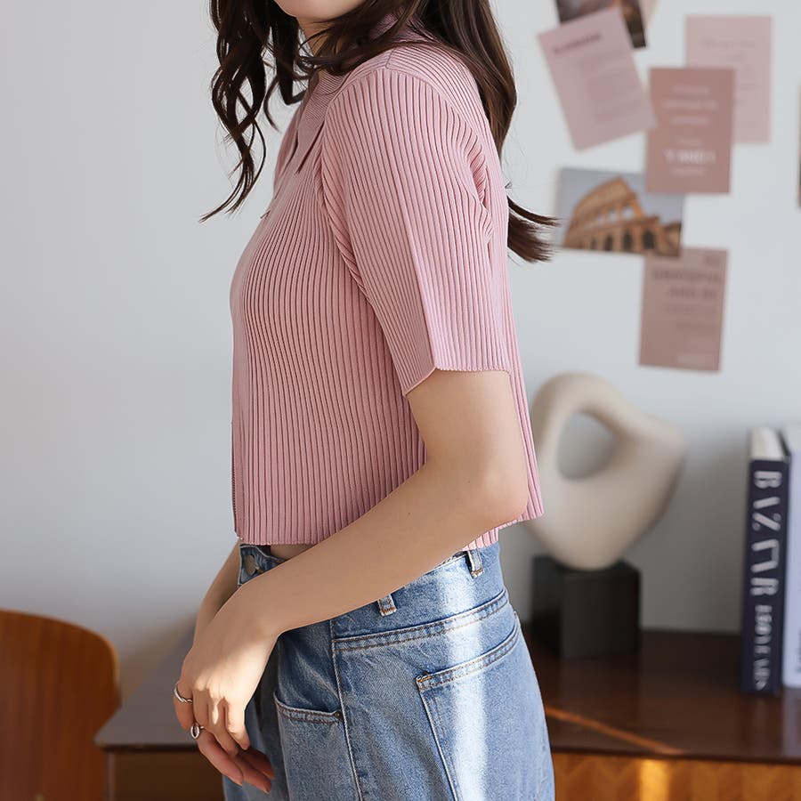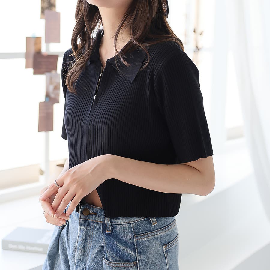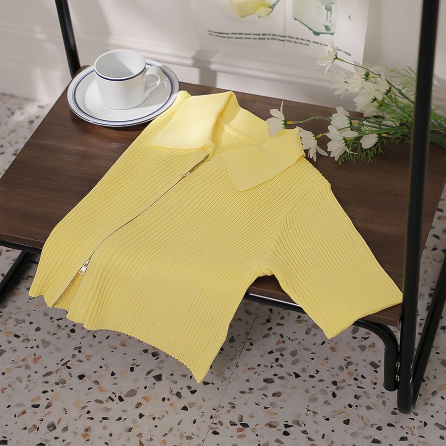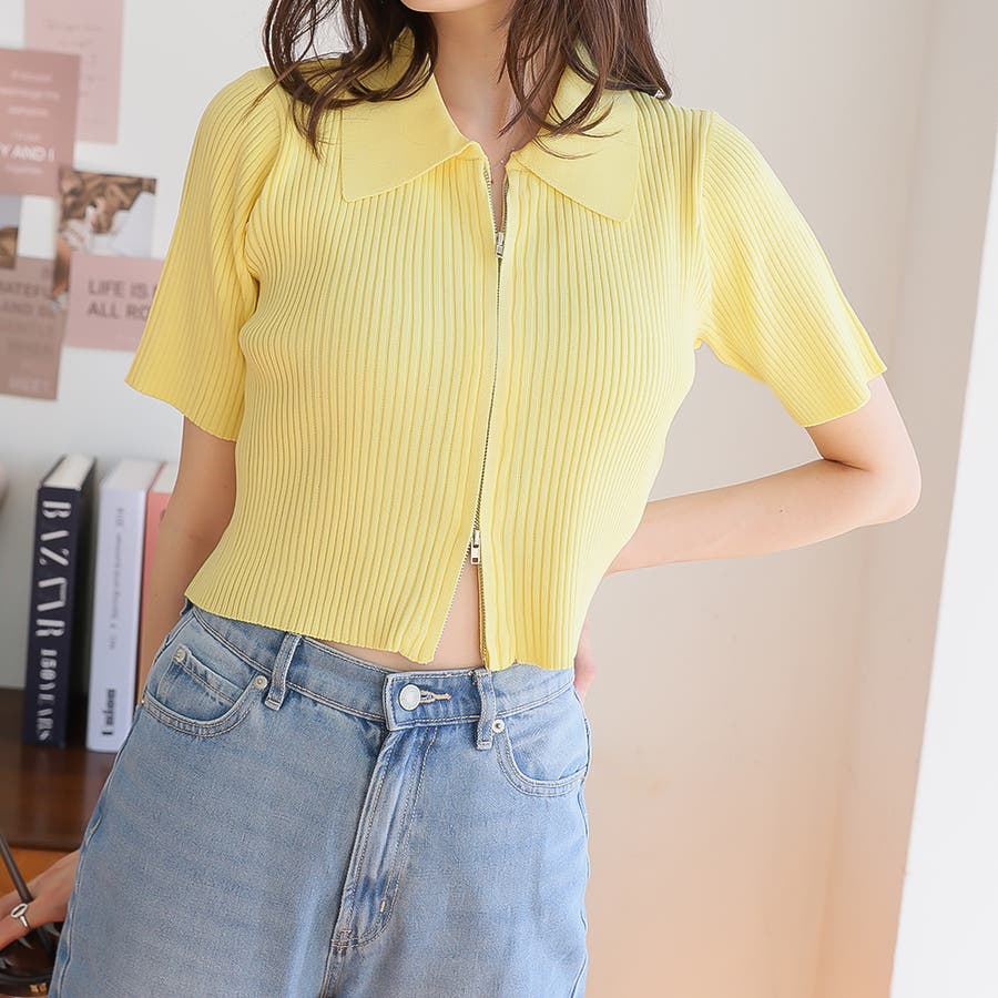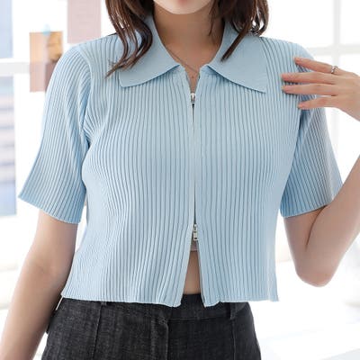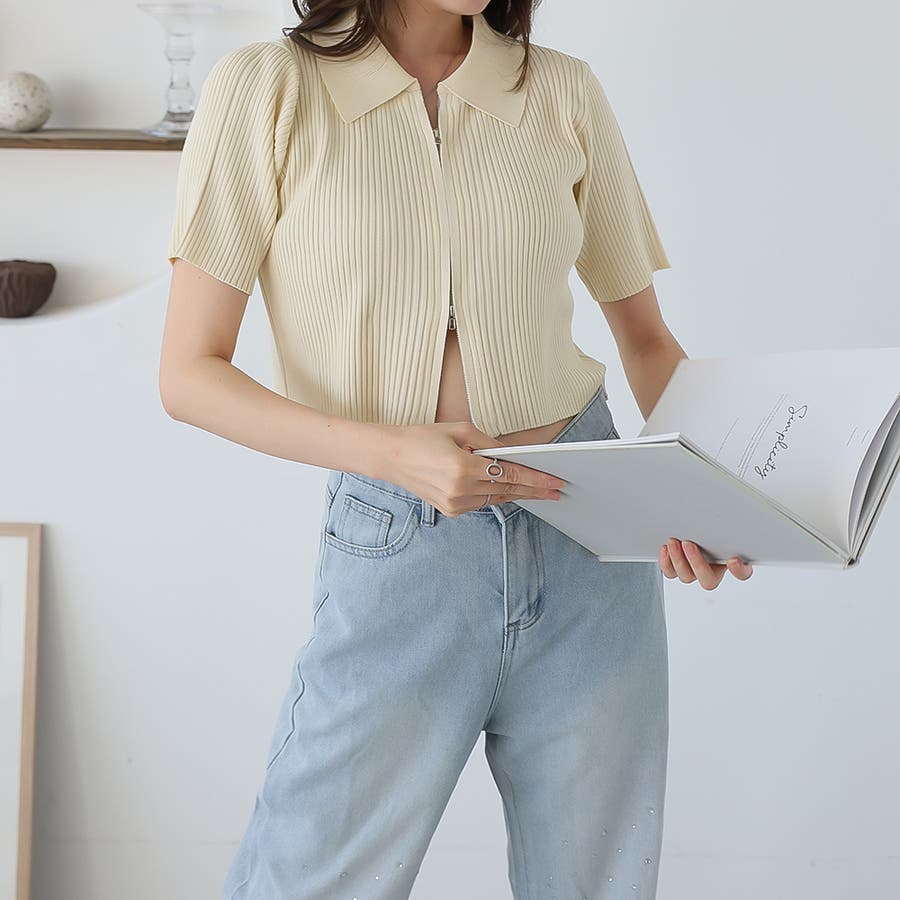Wジップ半袖ニットカーディガン