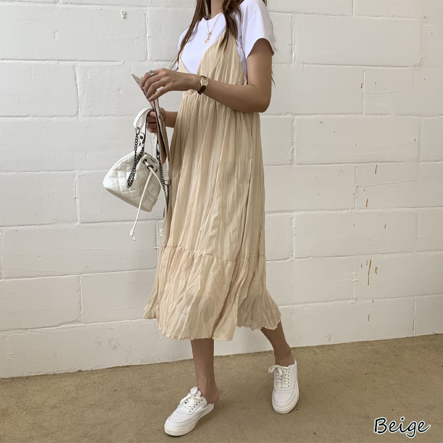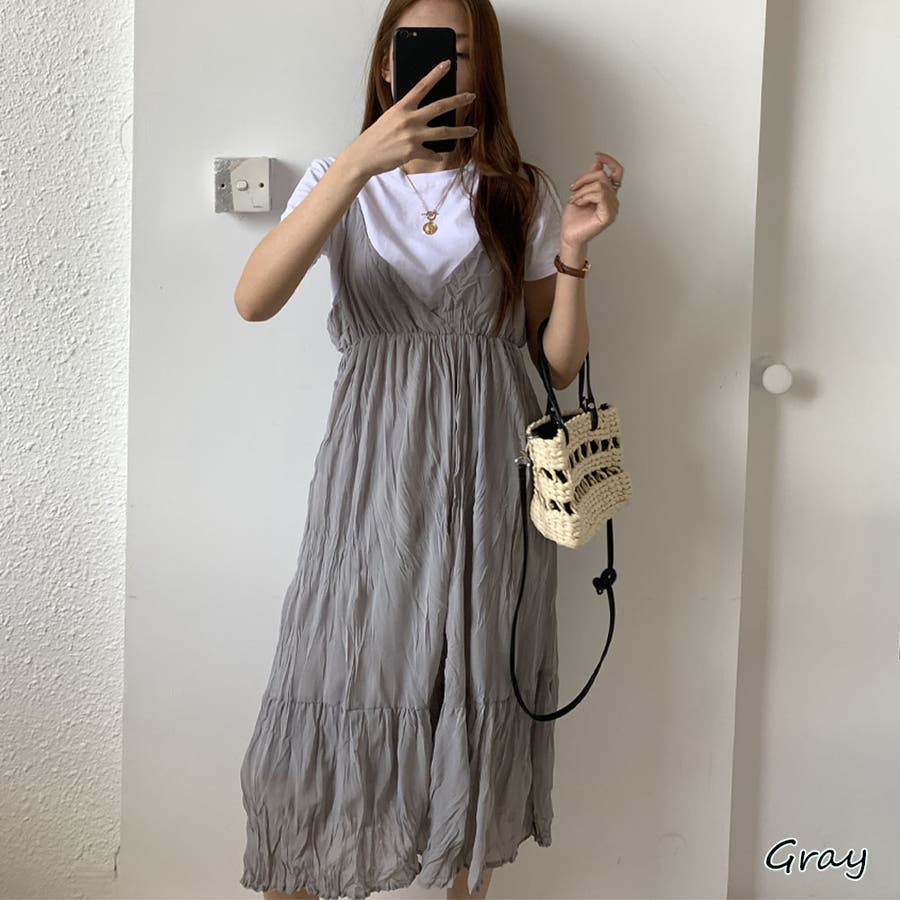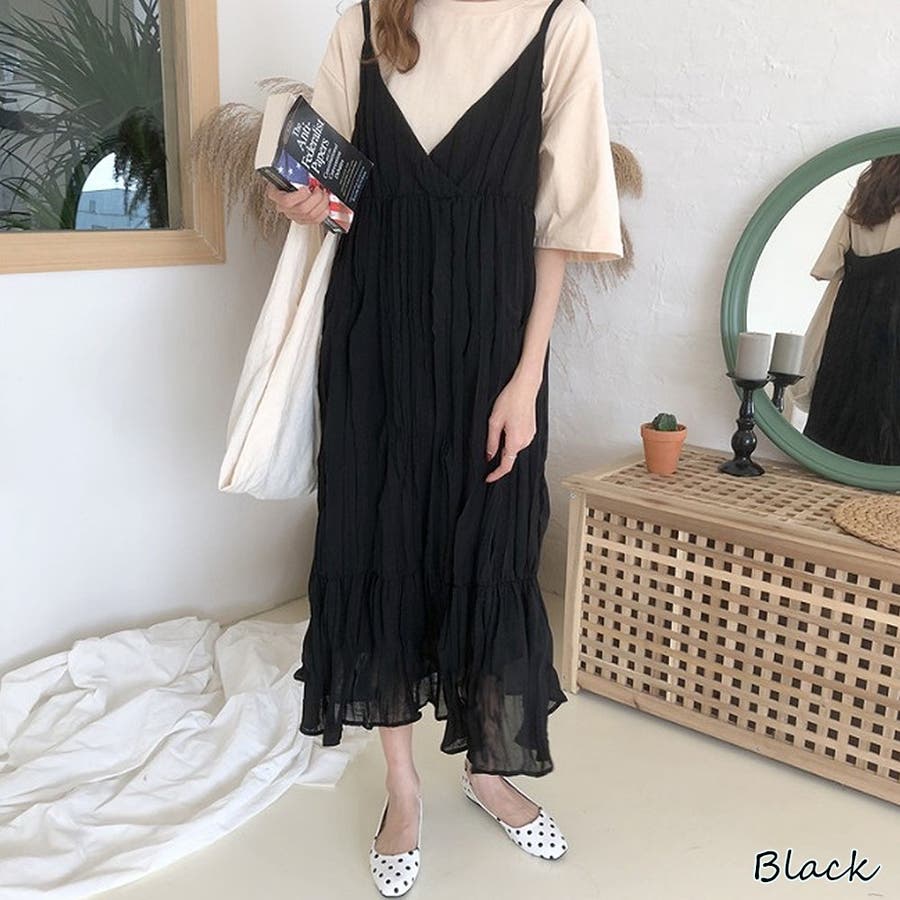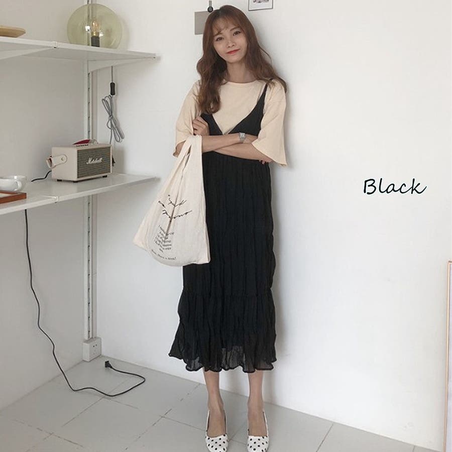 クリンクルキャミワンピース【韓国ファッション】