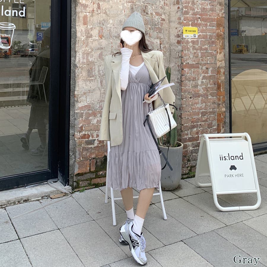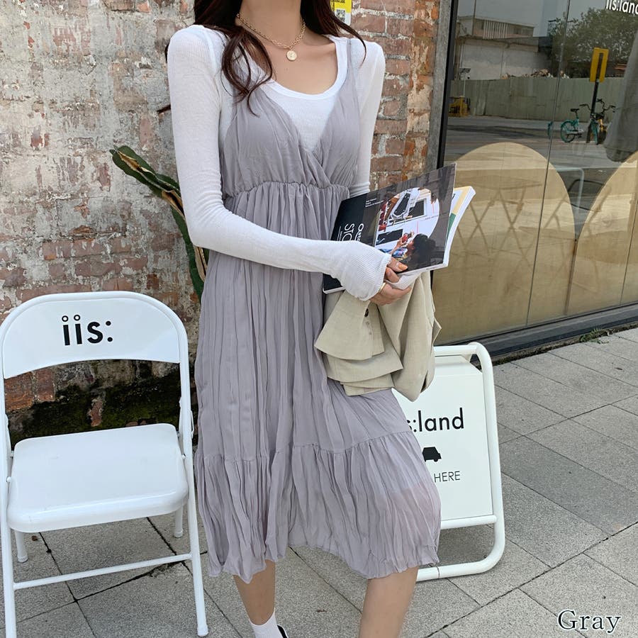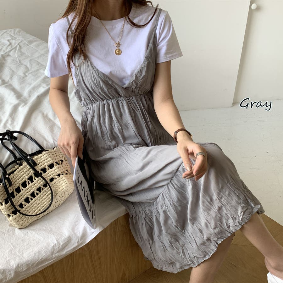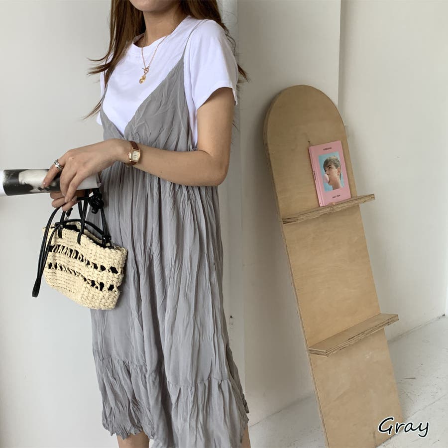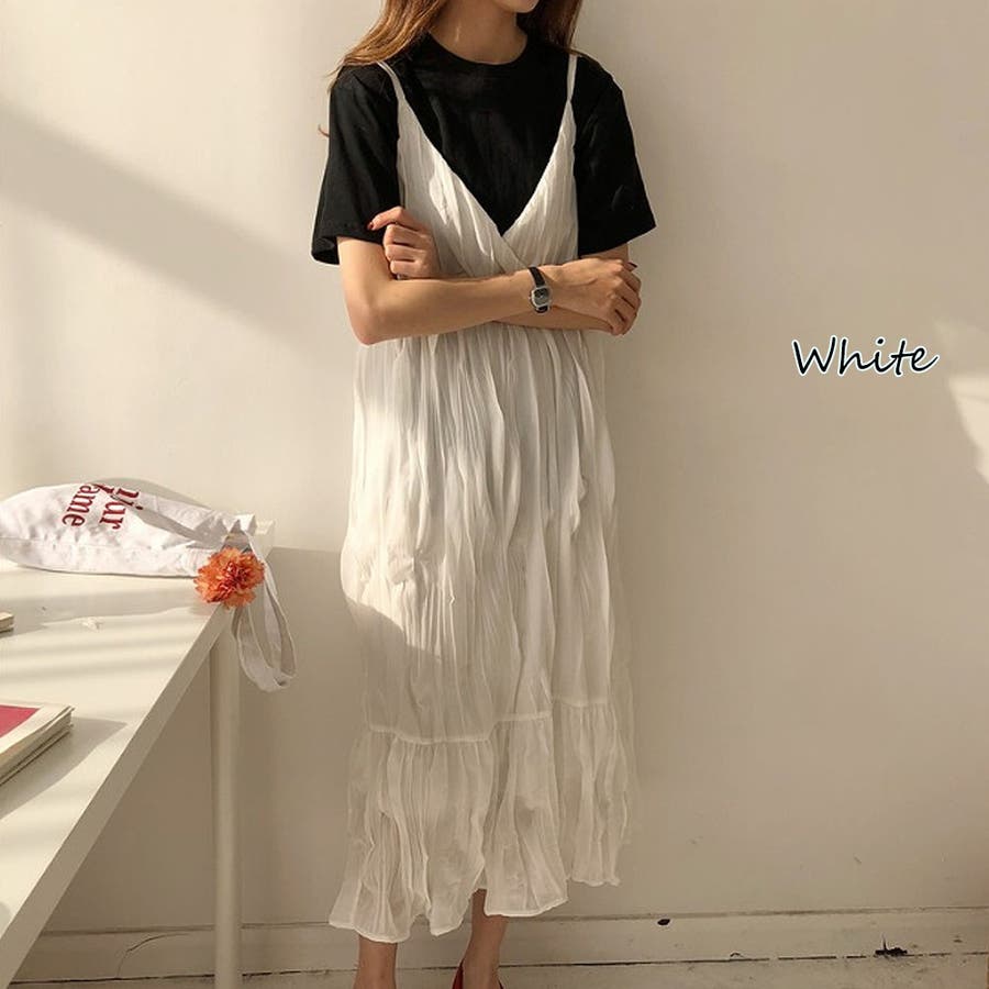 クリンクルキャミワンピース【韓国ファッション】