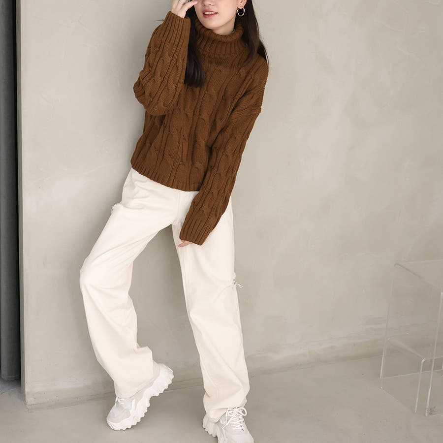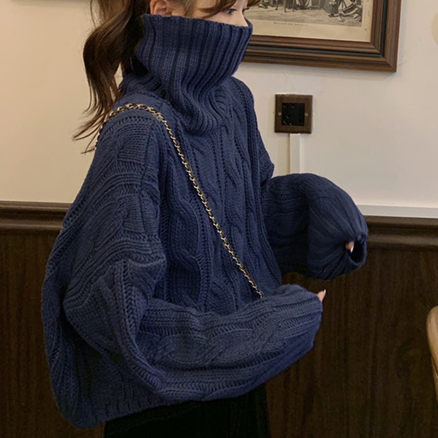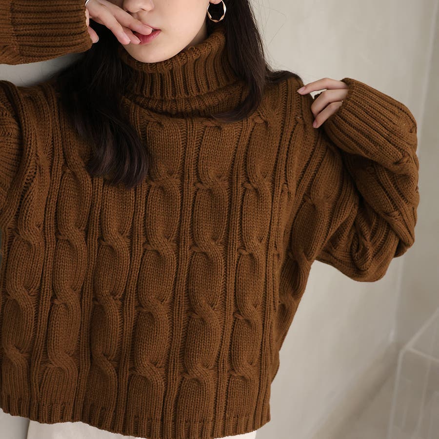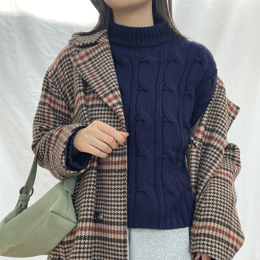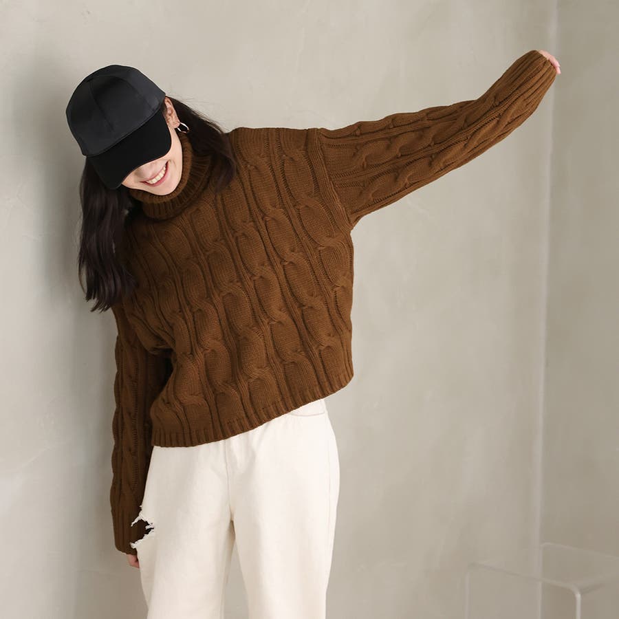 首元を暖かく包み込むタートルネックは、首元に窮屈さを感じさせない絶妙な丈感。
