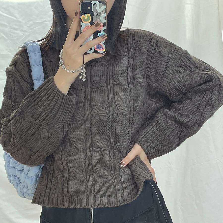 ローゲージで編まれたざっくりとした風合いとドロップショルダーデザインが大人のヌケ感を演出。
