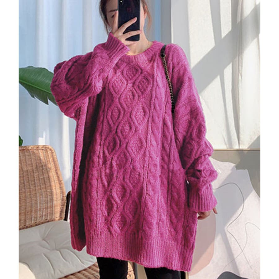 インパクトのあるケーブルデザインが目を惹くオーバーサイズのニット。
