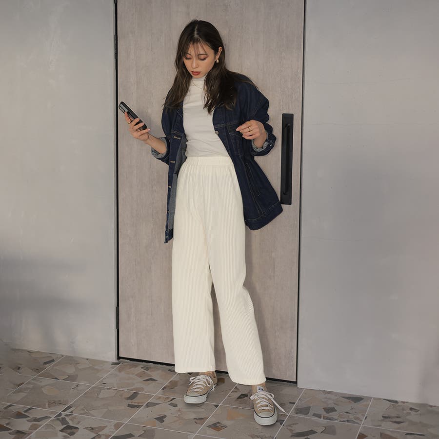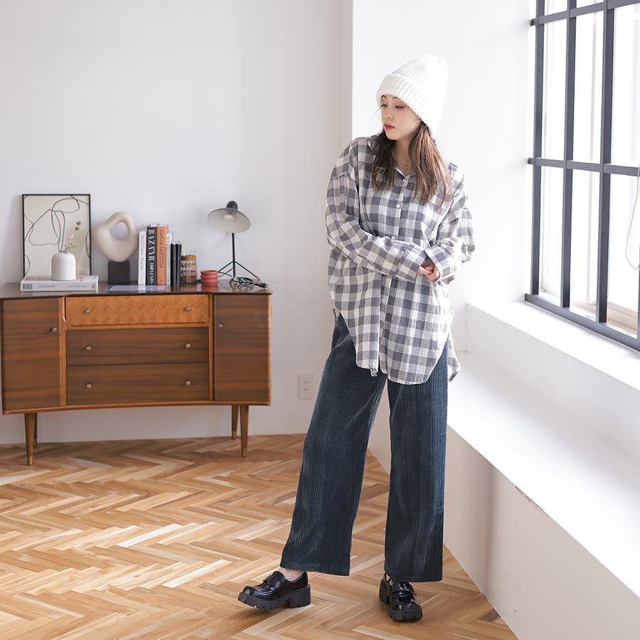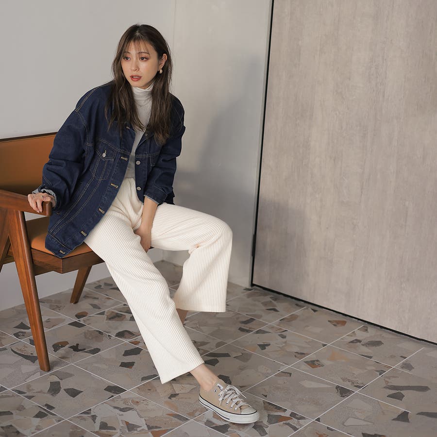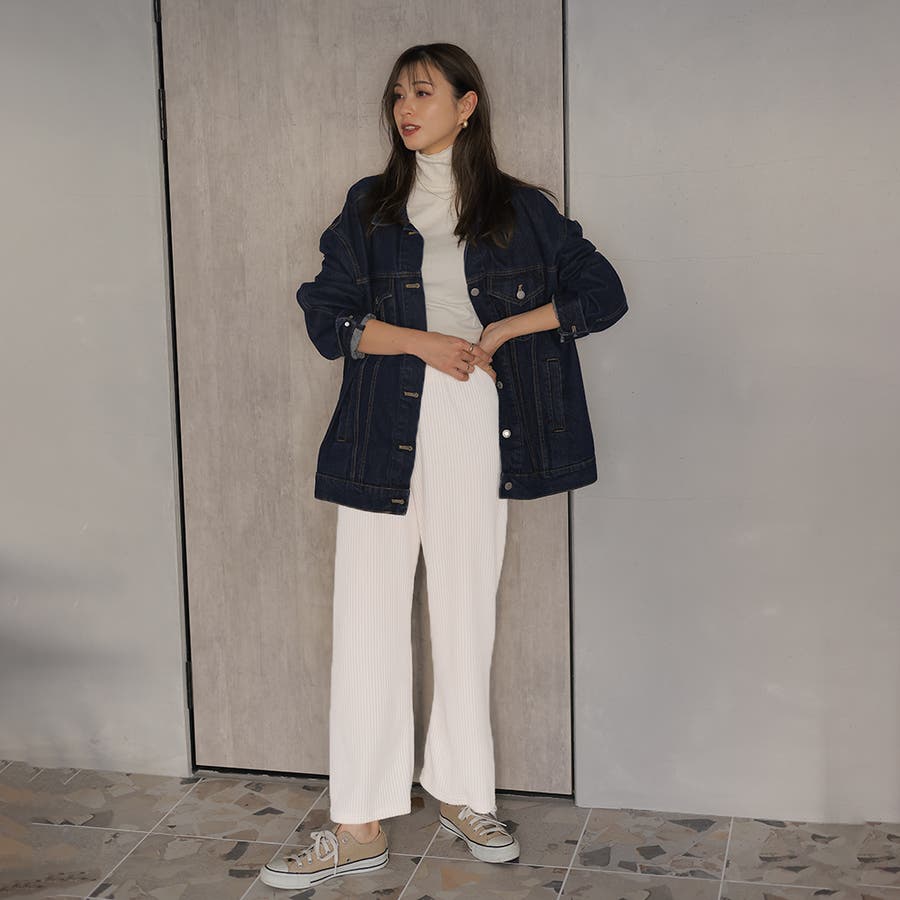 ビッグシルエットのシャツやニットを合わせて、リラックス感あるコーディネートを楽しめます。