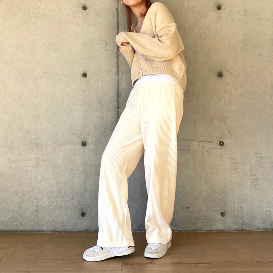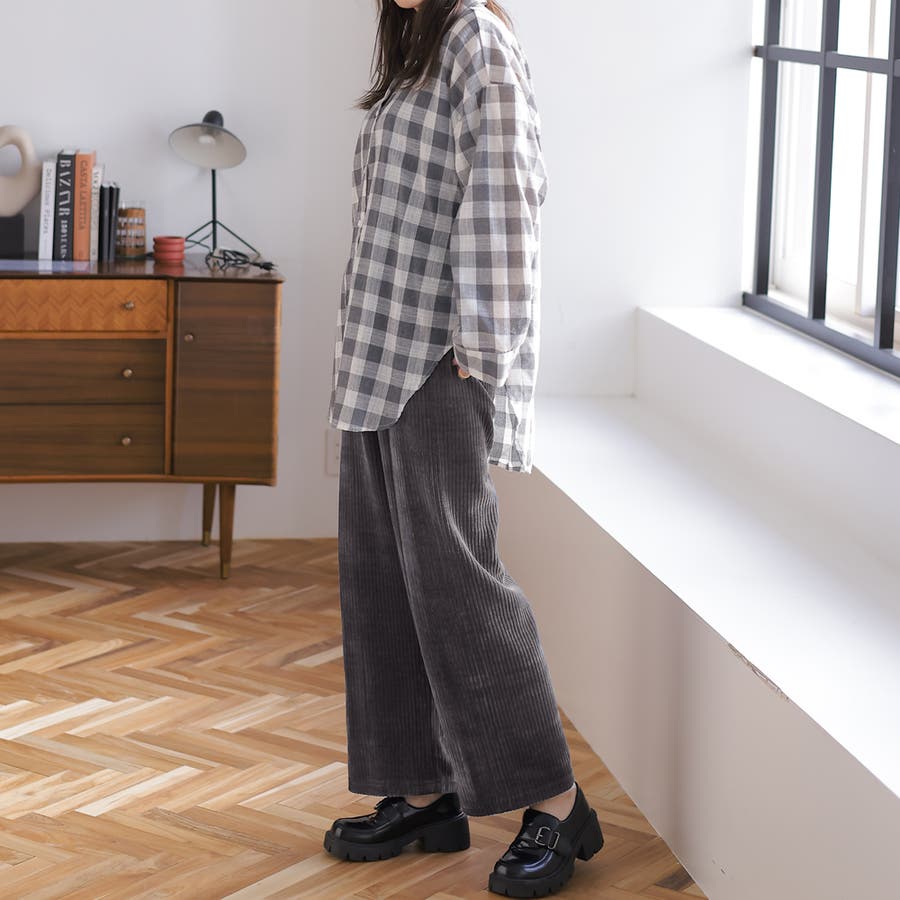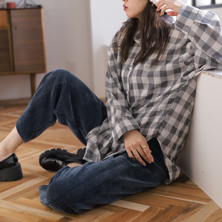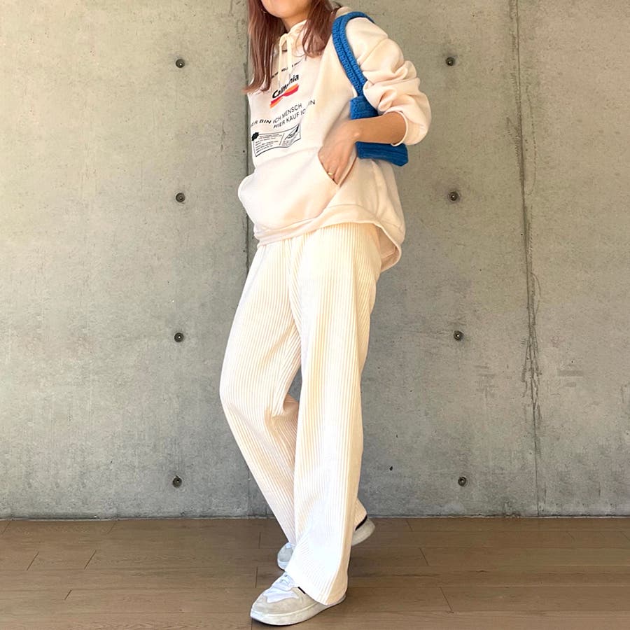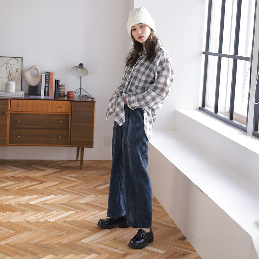 ビッグシルエットのシャツやニットを合わせて、リラックス感あるコーディネートを楽しめます。