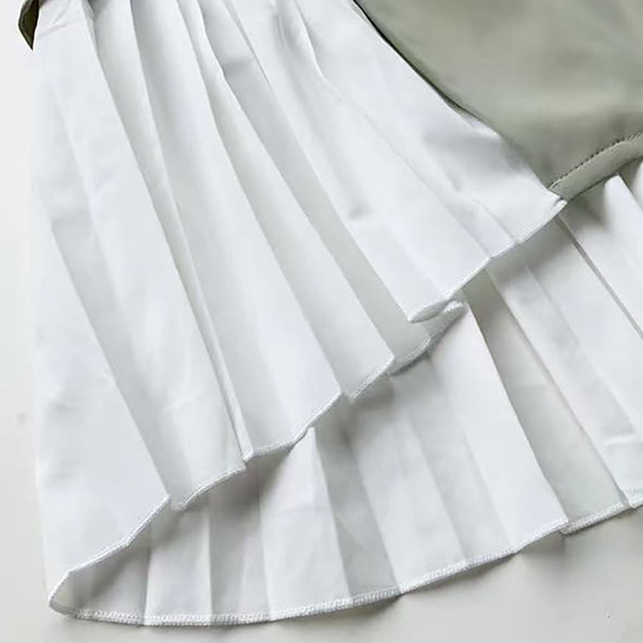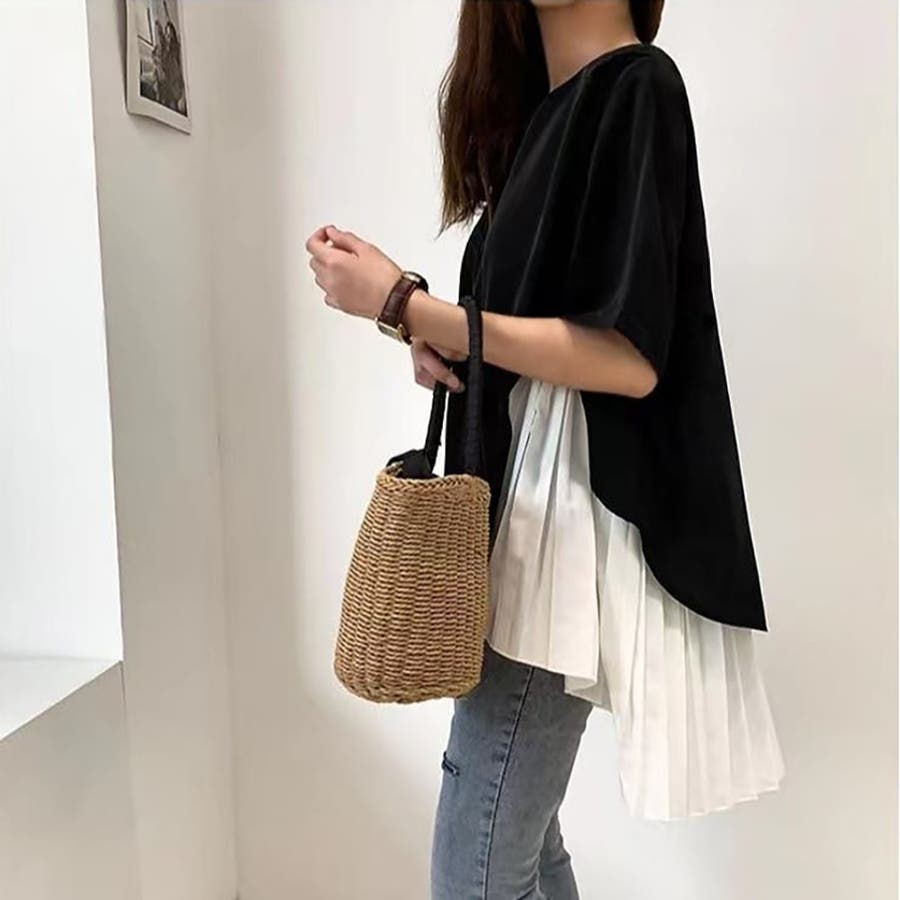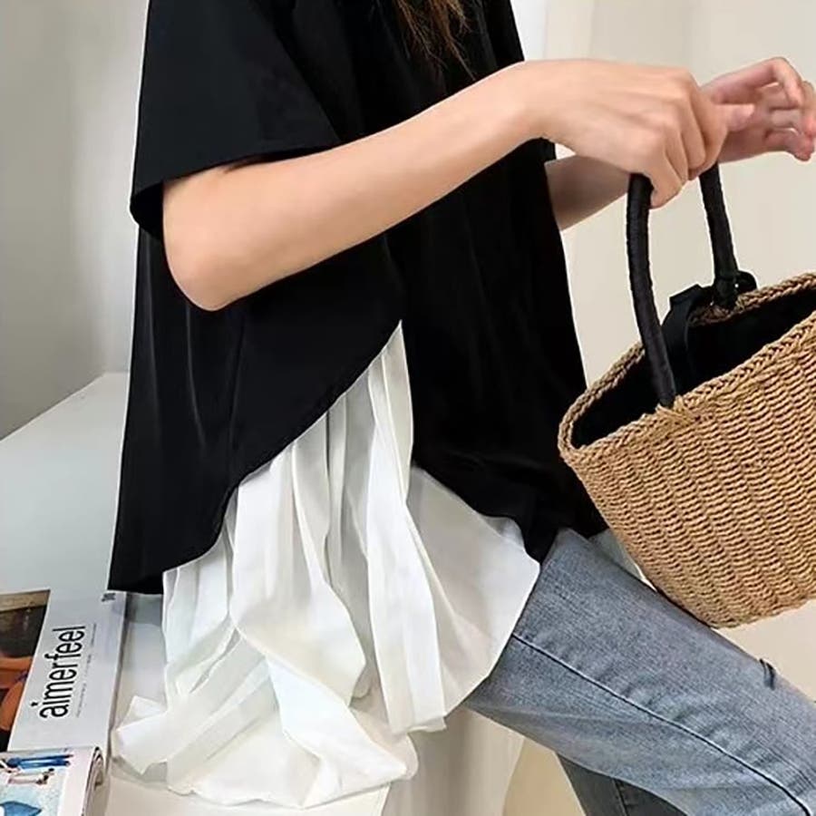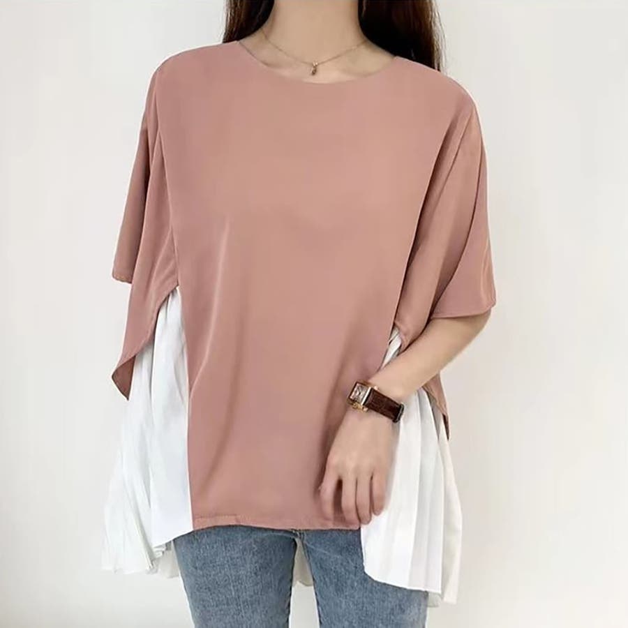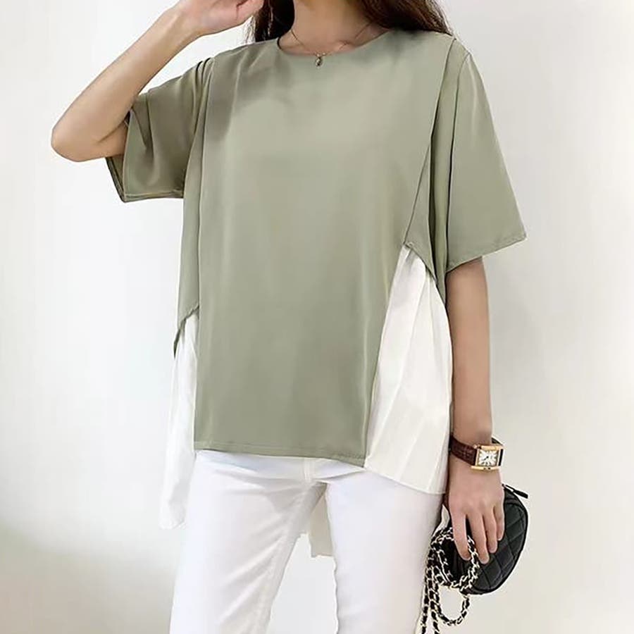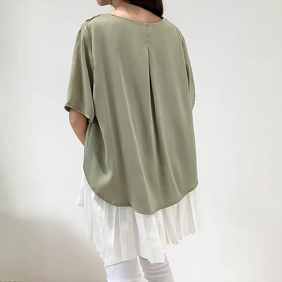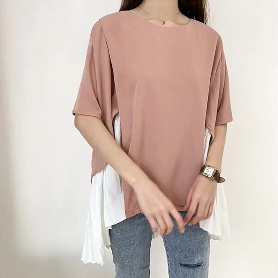 イレギュラーヘムプリーツシフォンドッキング半袖トップス【韓国ファッション】