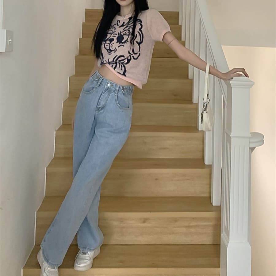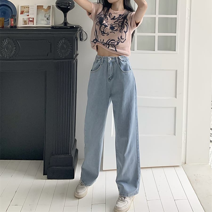 韓国ファッション 春 夏 秋 冬 春服 夏服 秋冬 冬服 大人 オフィスカジュアル ストリート大きいサイズ ハイウエスト おしゃれ 体型カバー ゆったり ワイドパンツ ストレートデニムパンツ