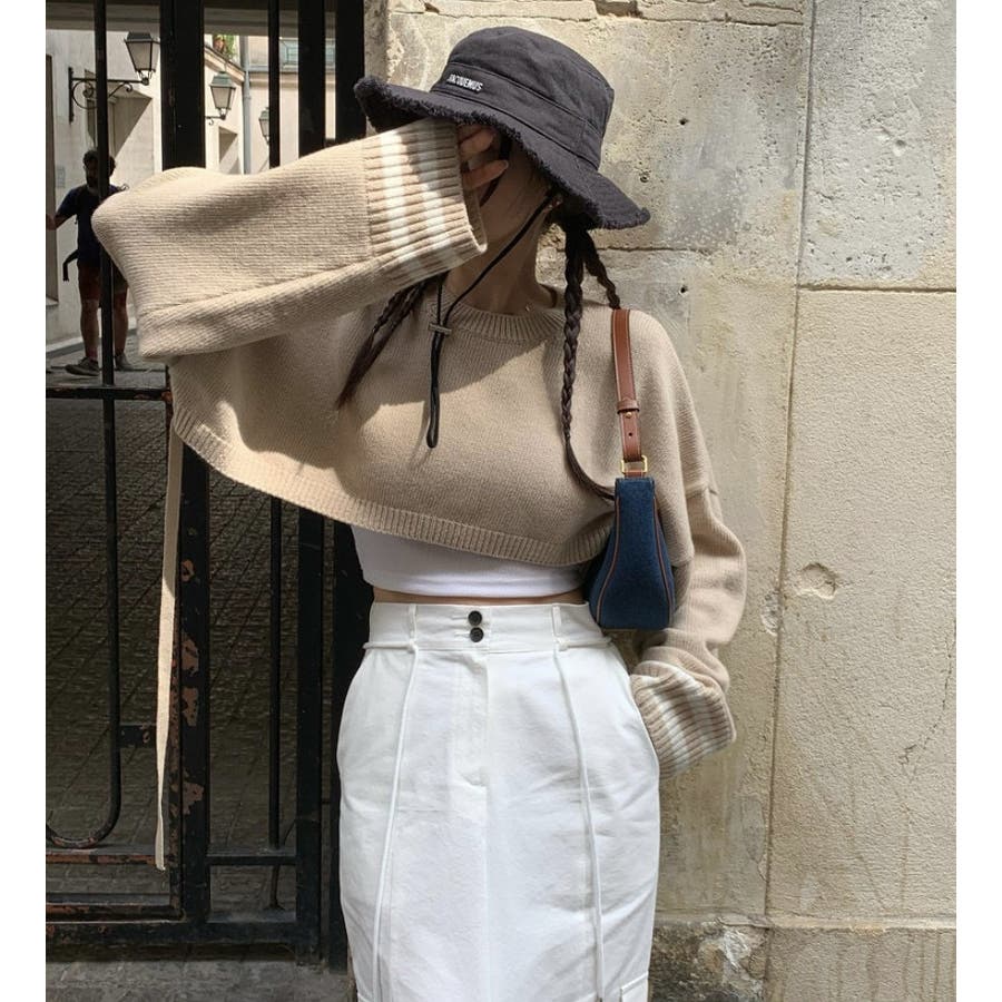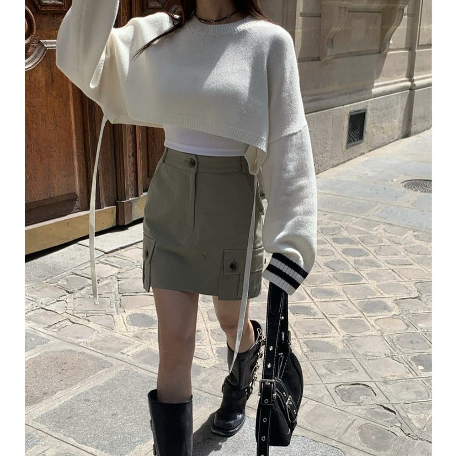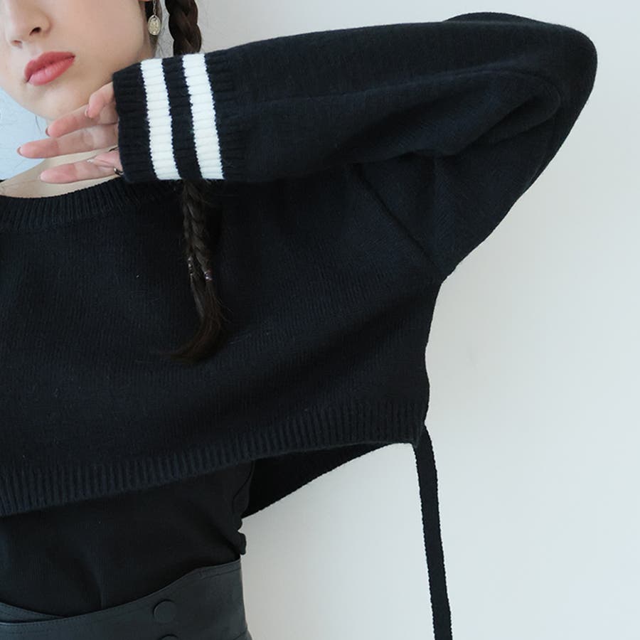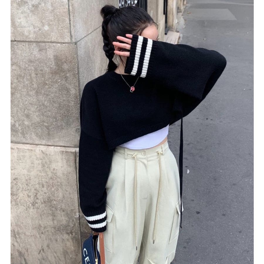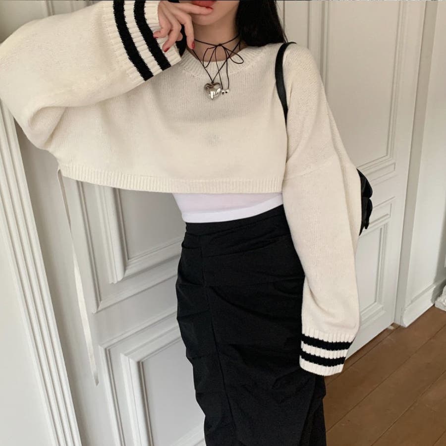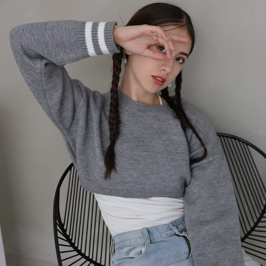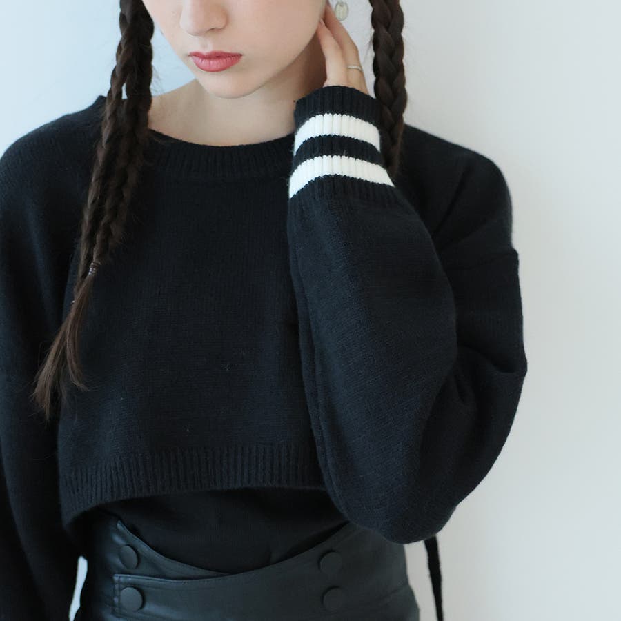 袖のラインデザインがお洒落なクロップドニット。