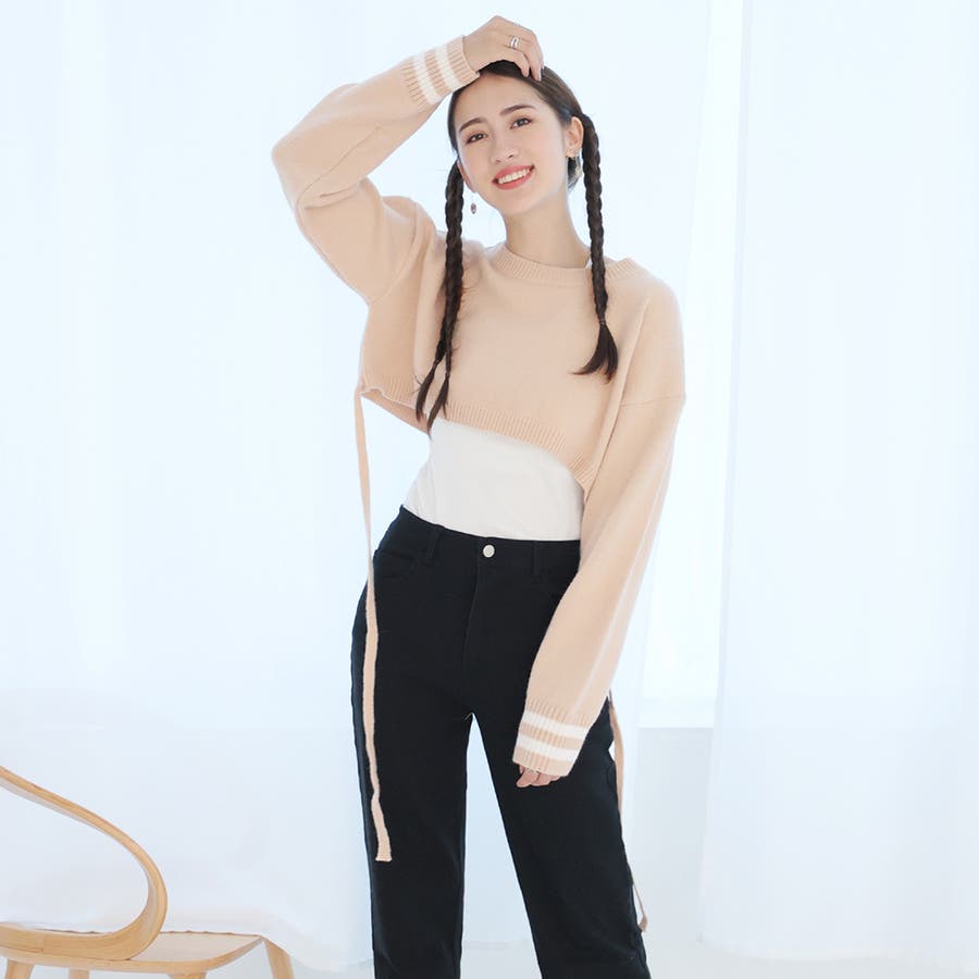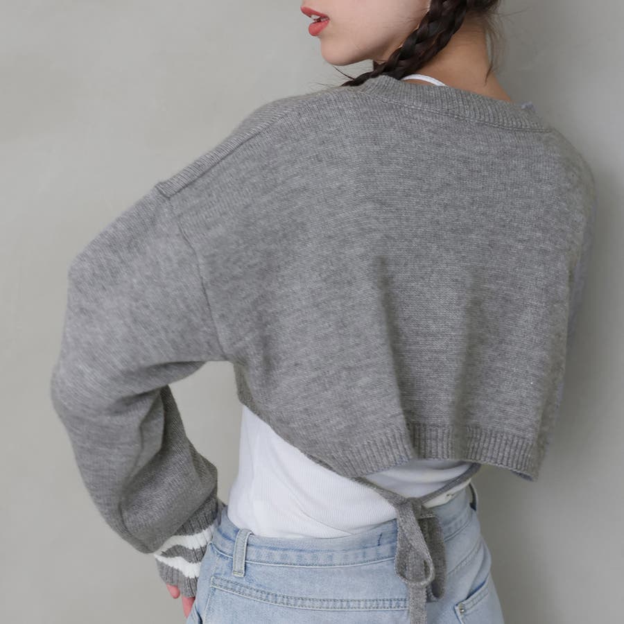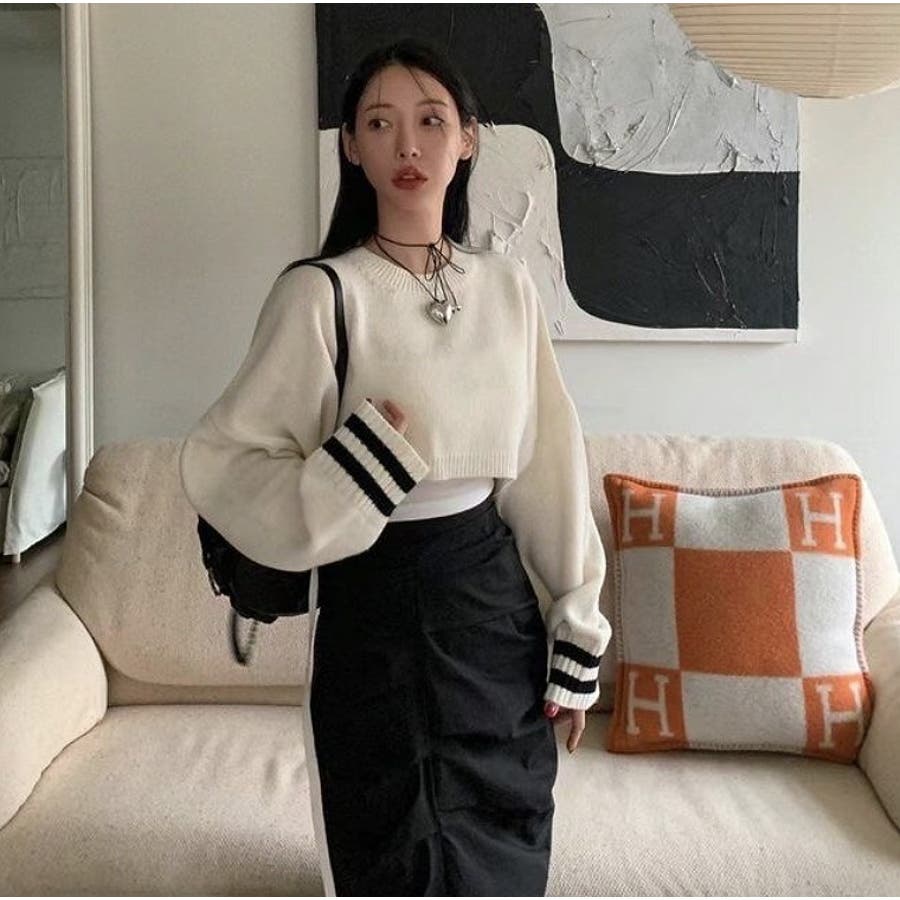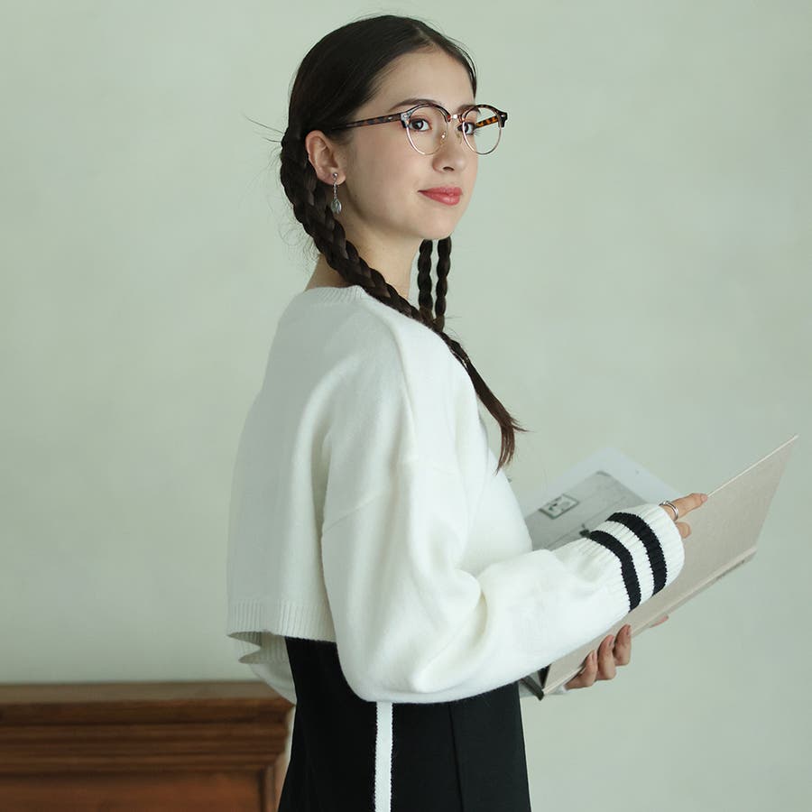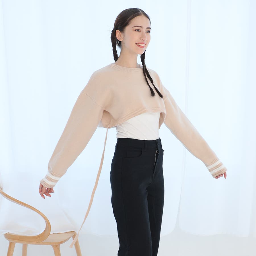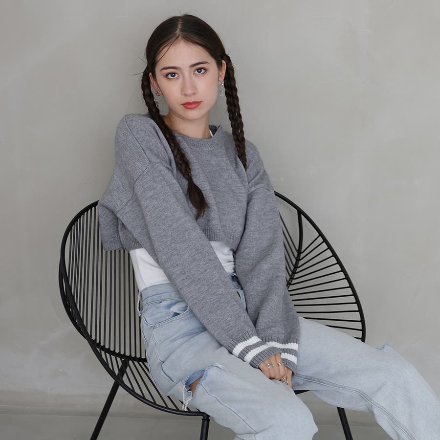 袖のラインデザインがお洒落なクロップドニット。