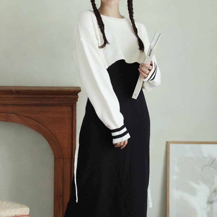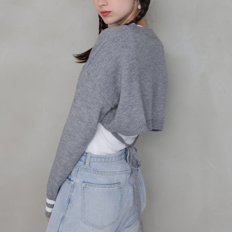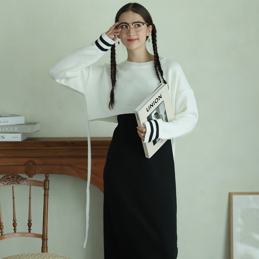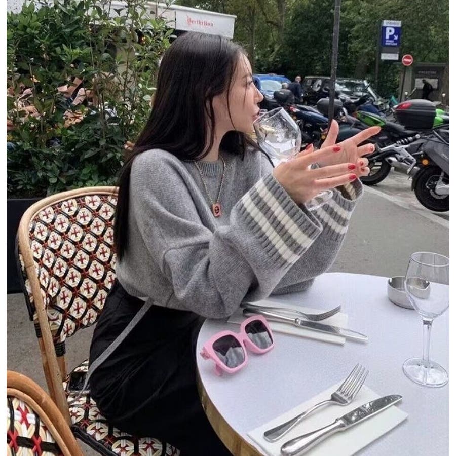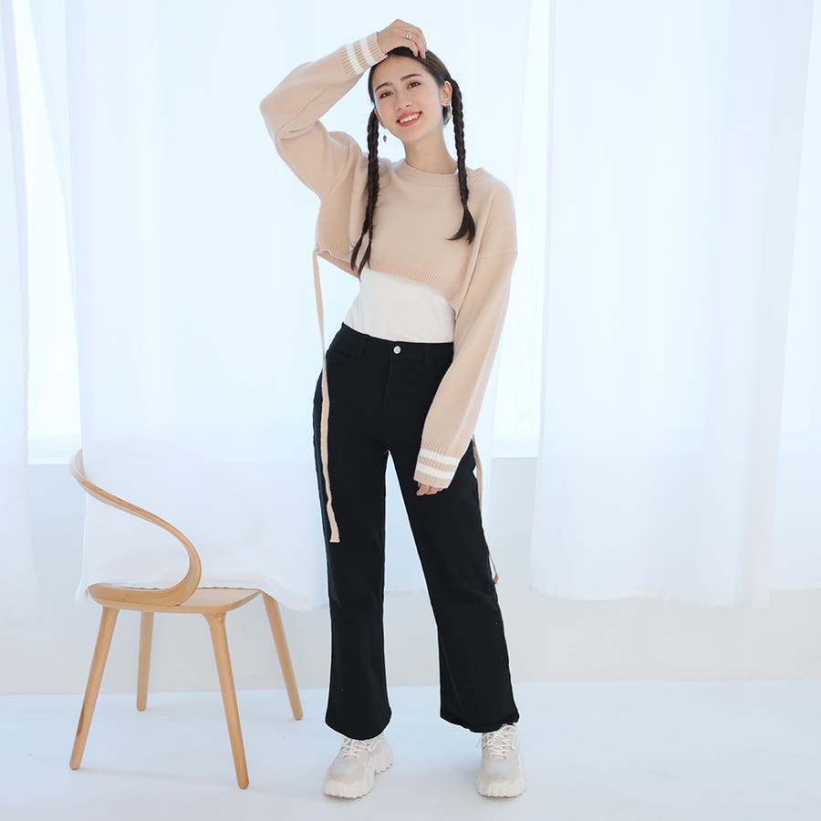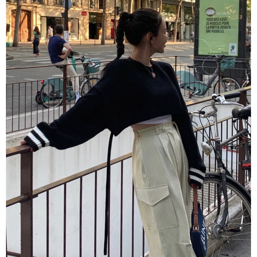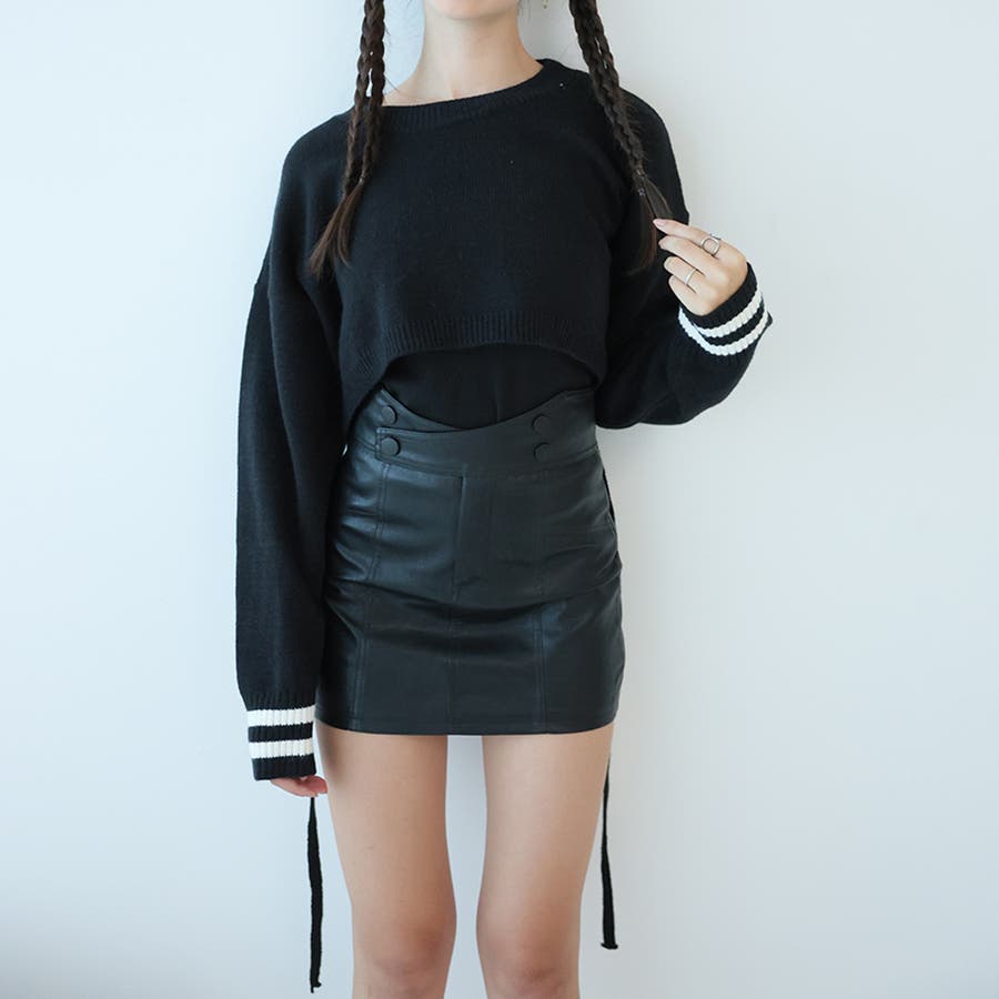 袖のラインデザインがお洒落なクロップドニット。