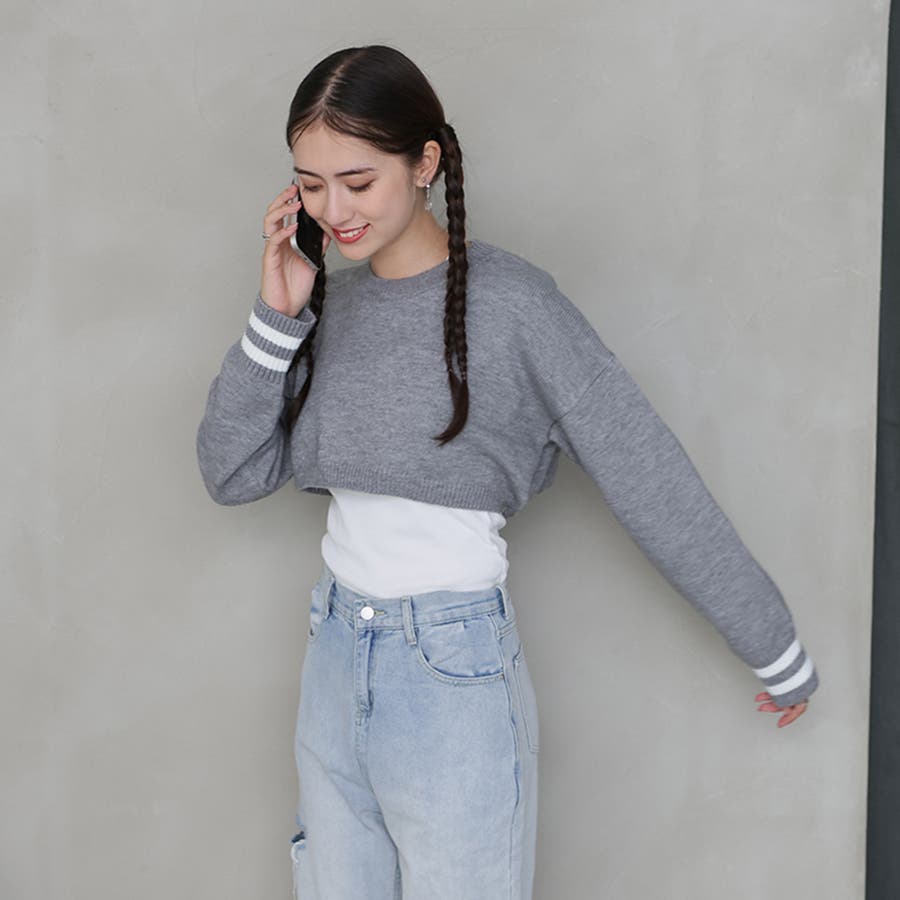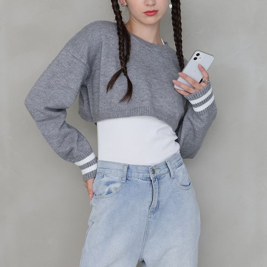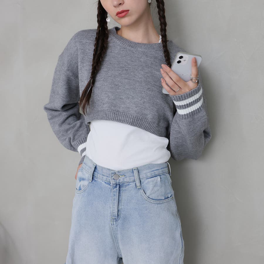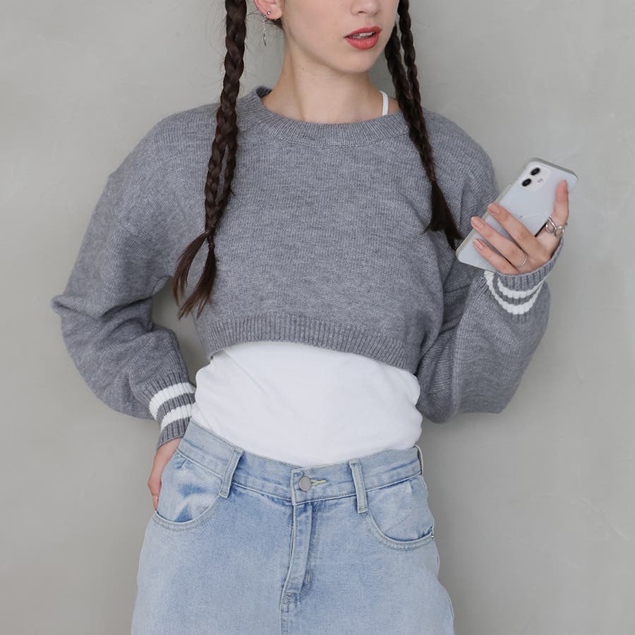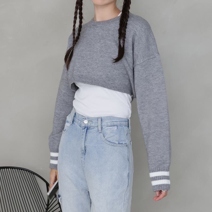 ライン入りショート丈ニット