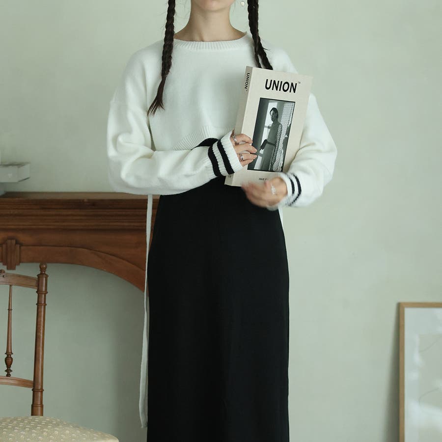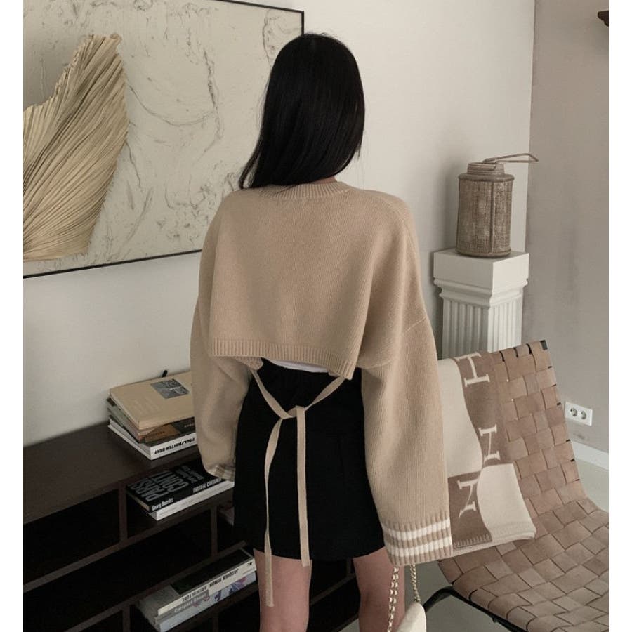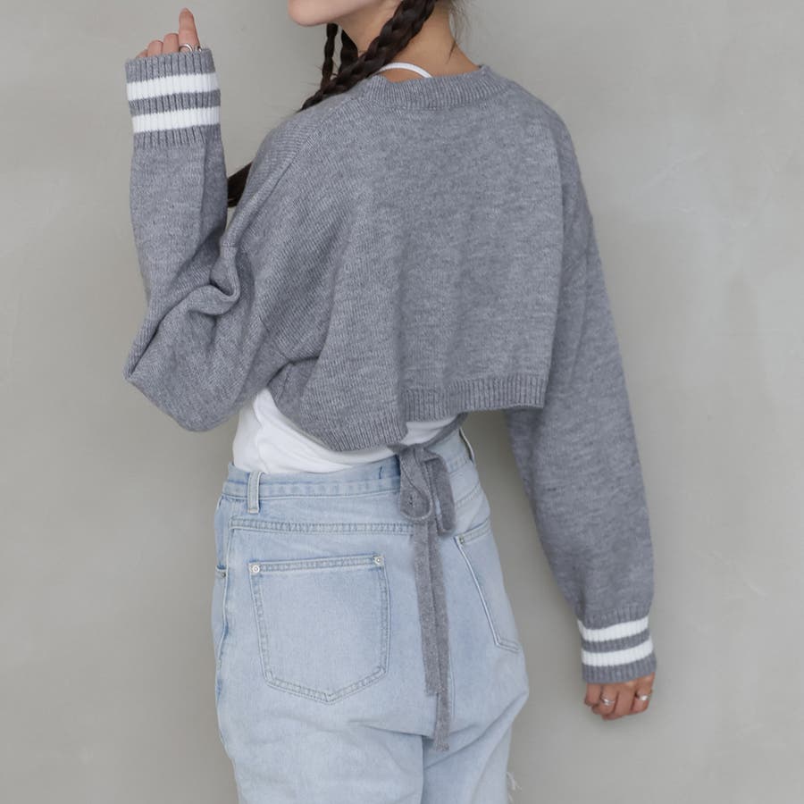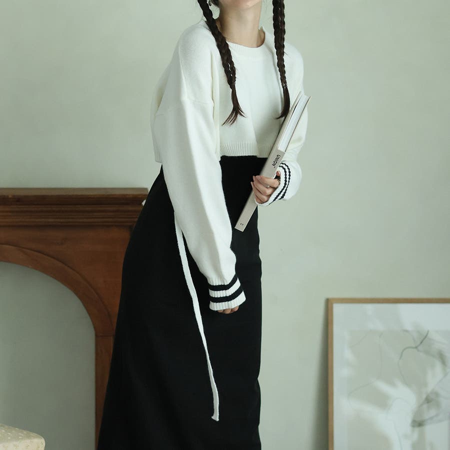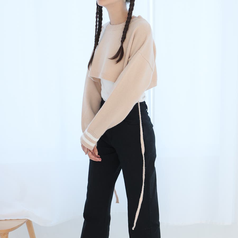 ライン入りショート丈ニット