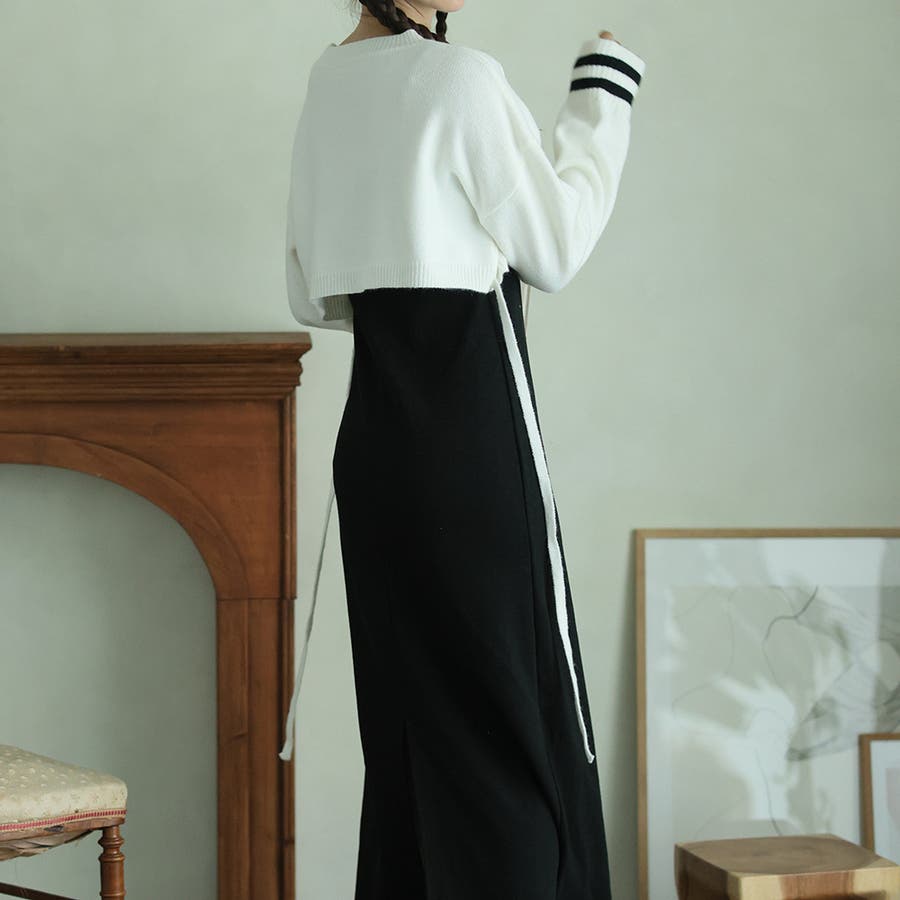 《バックスタイルまで抜かりなくライン入りニット》