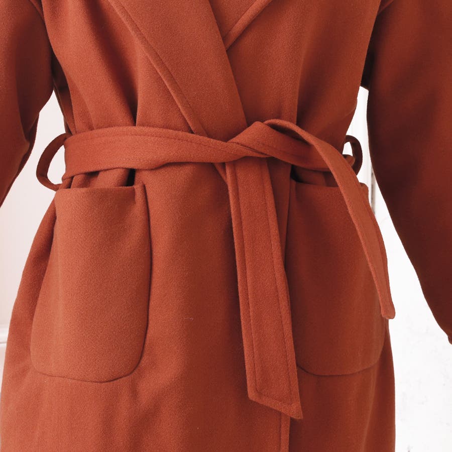 まずコートの長さは皆さんが言ってるとおりロングではなかったです。あと生地はほんとに硬いし手触りも悪いかな?モデルさんの写真のような柔らかい感じは一切ないし硬いので着ると重いし太って見えます(笑)失敗しました…