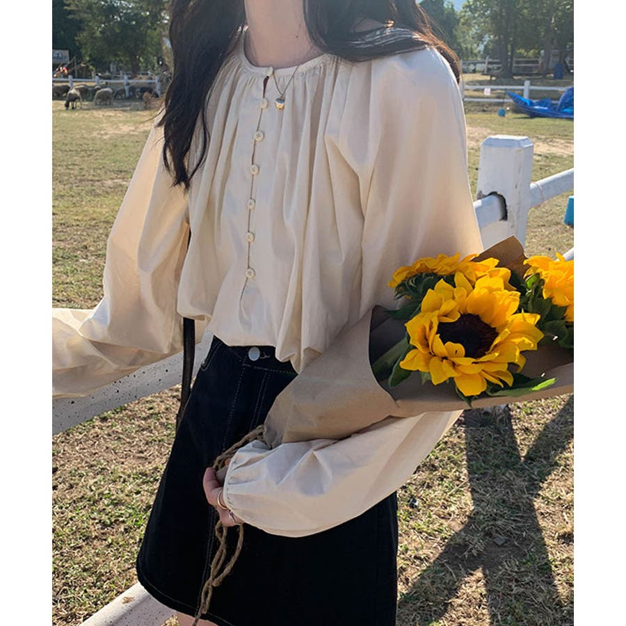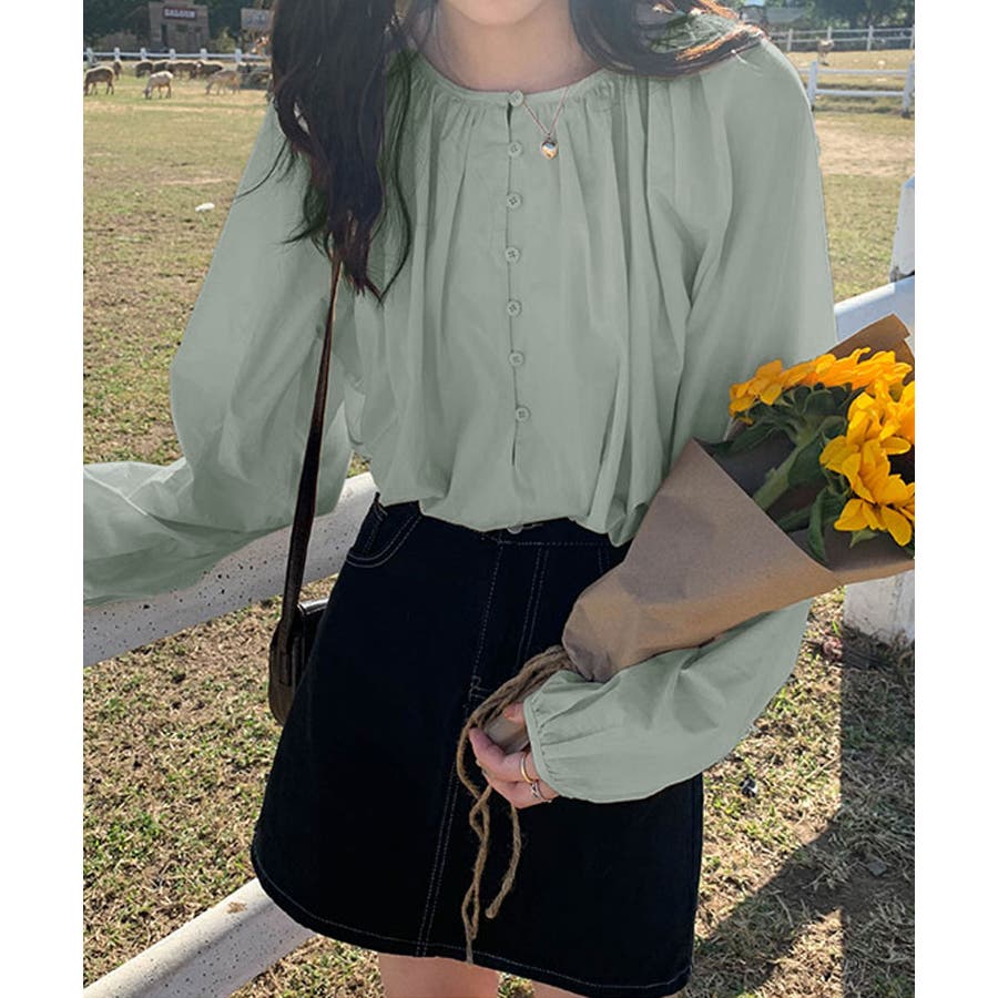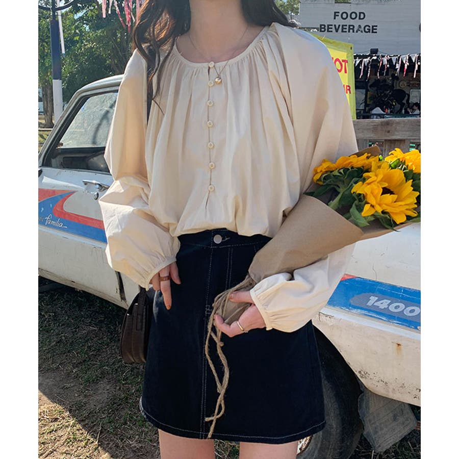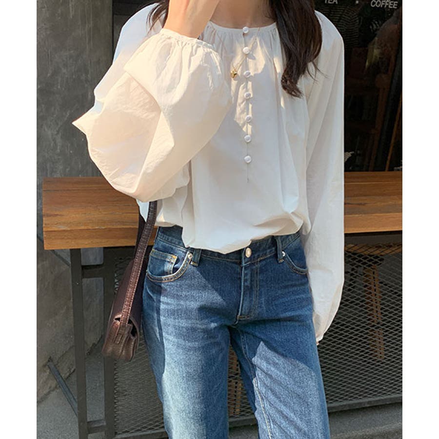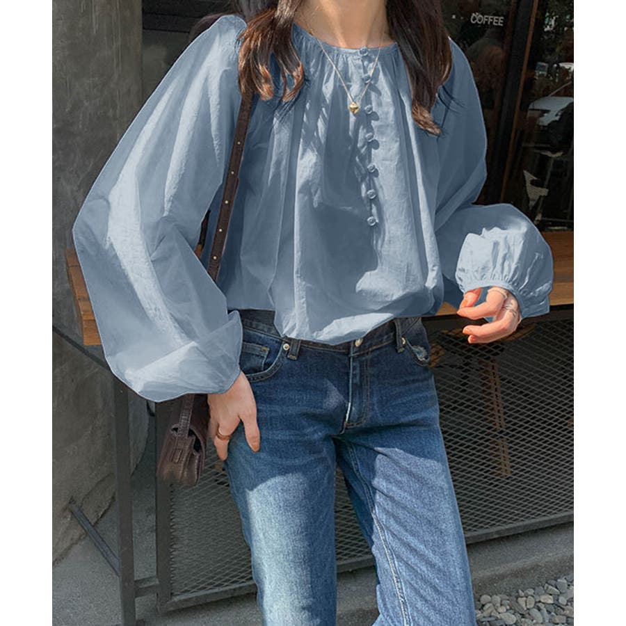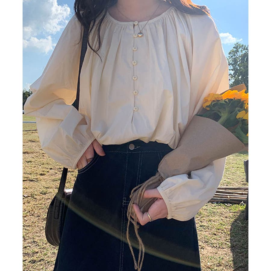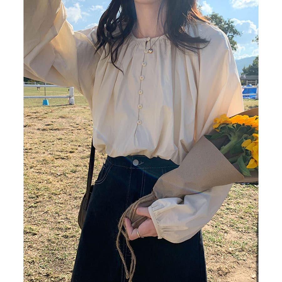 ボタンがポイントでナチュラルな雰囲気のブラウスです。
