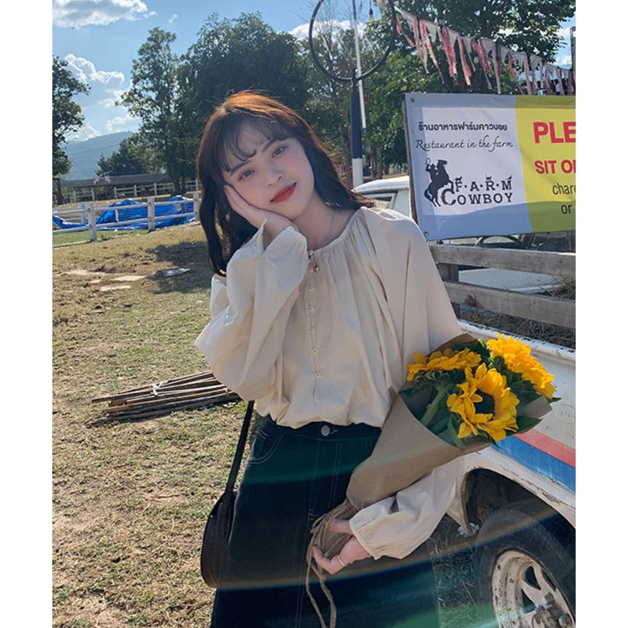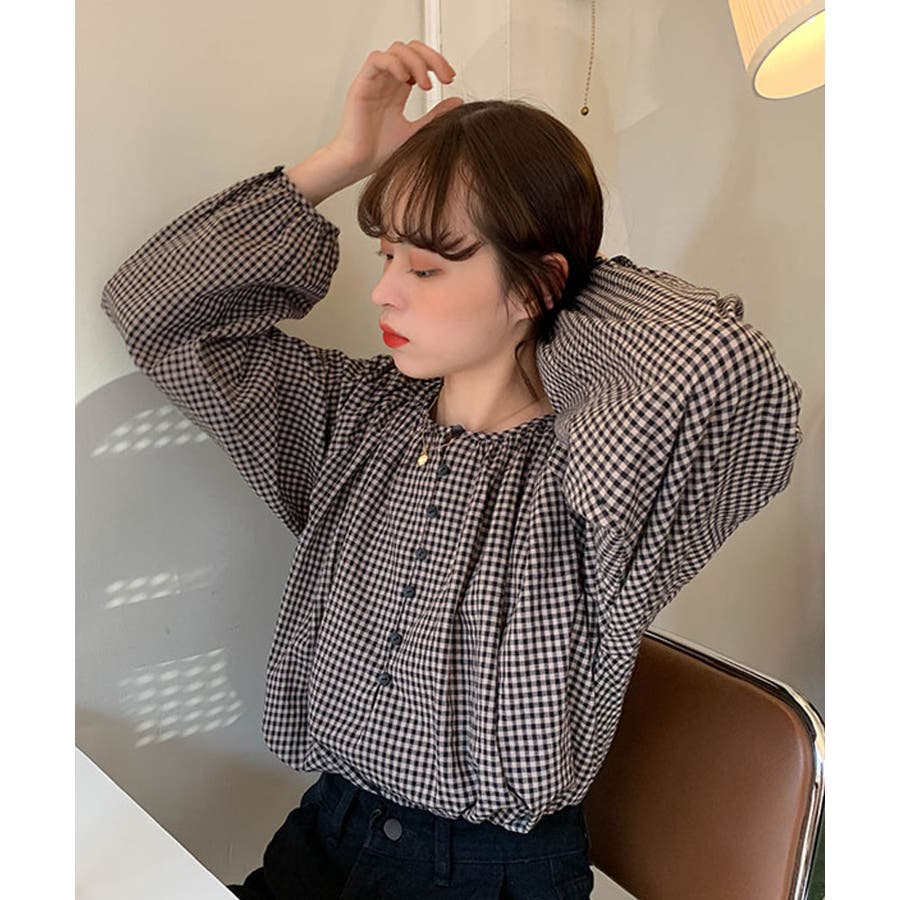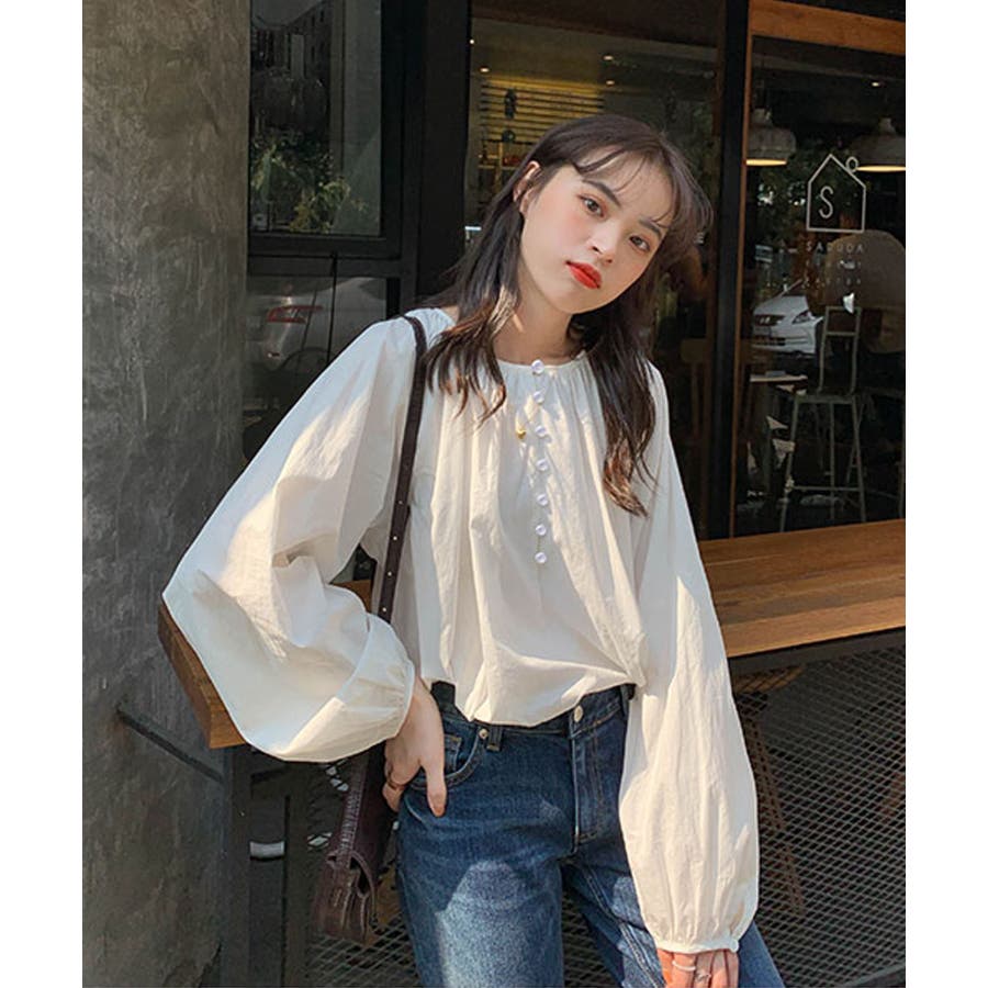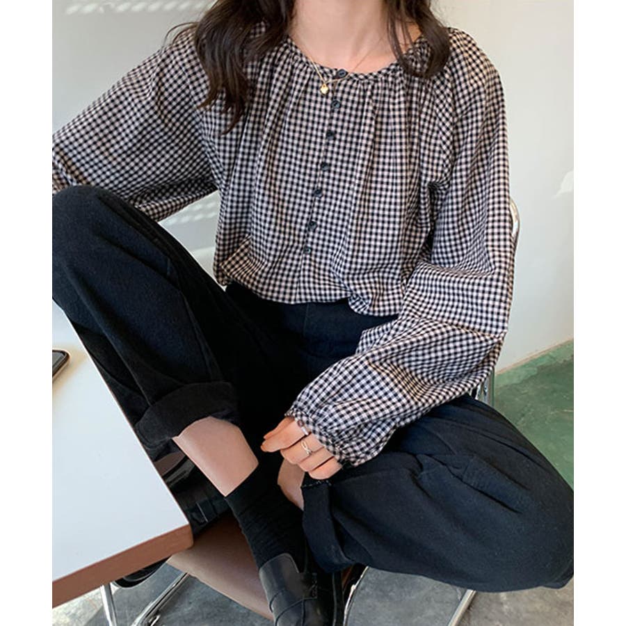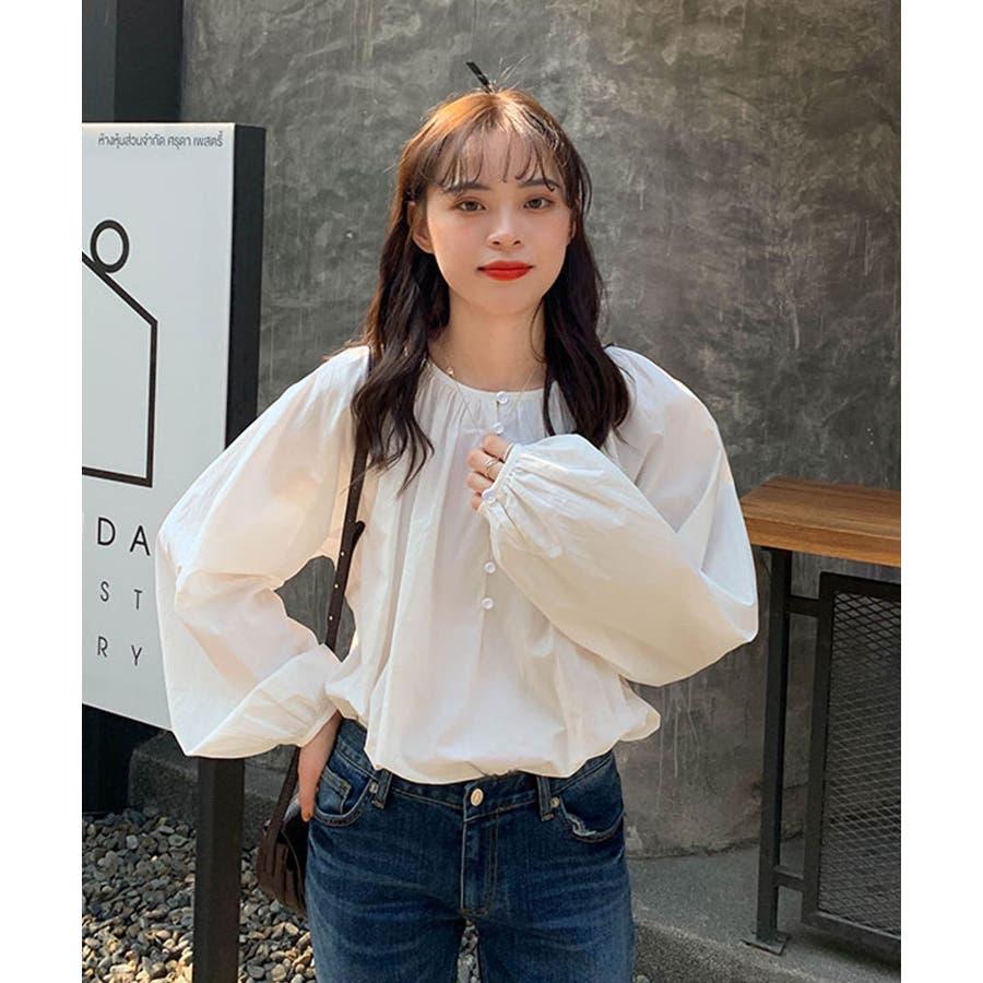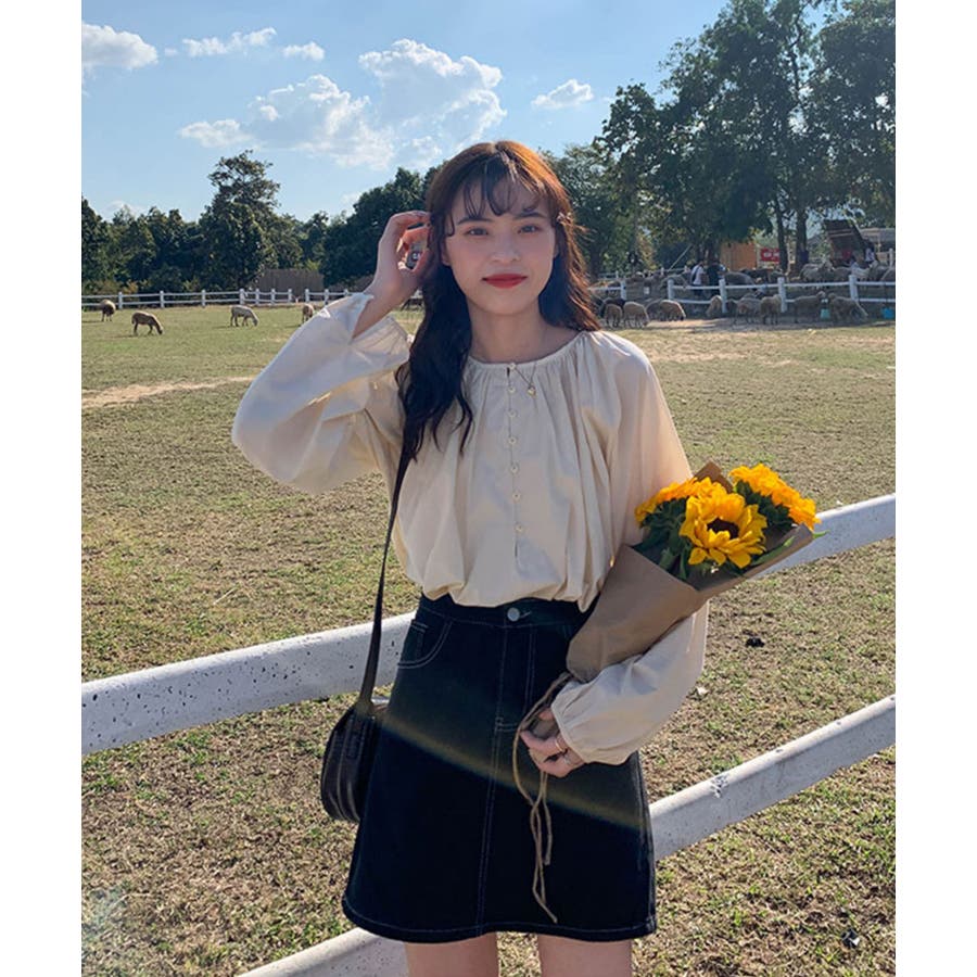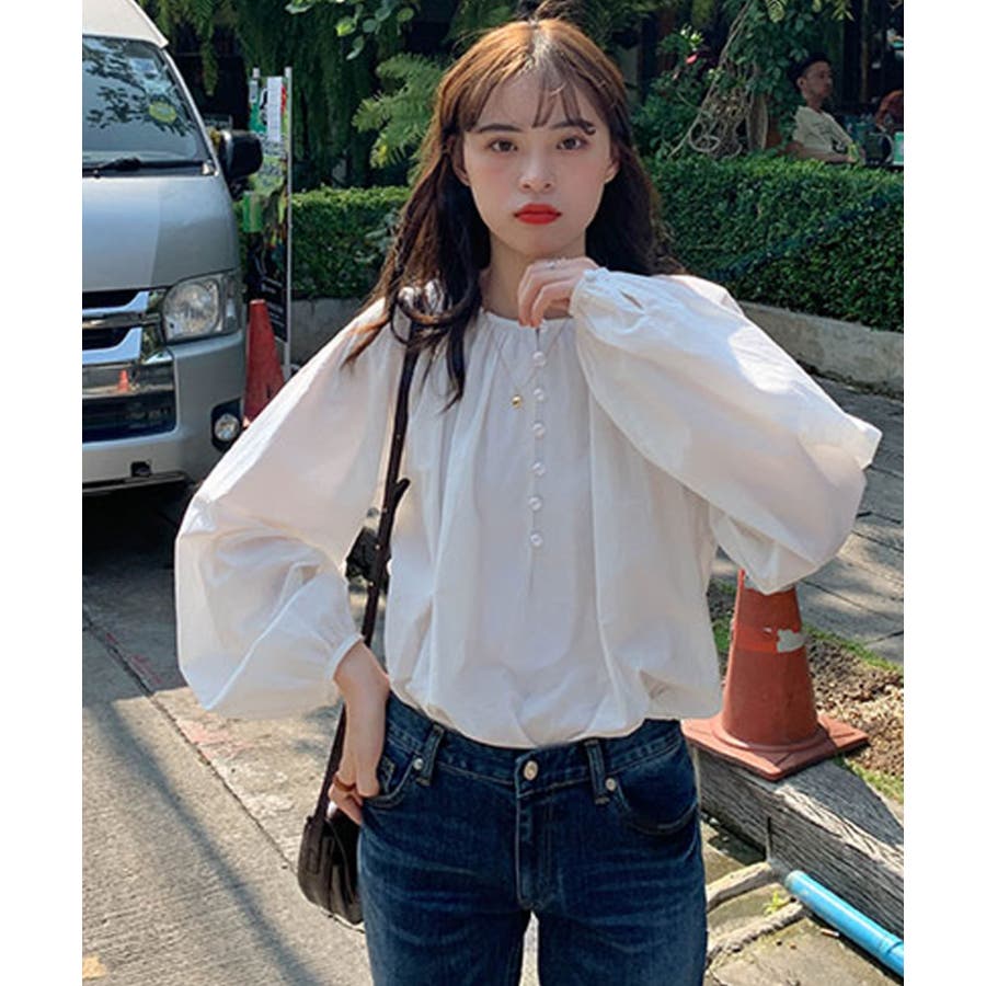 ボタンがポイントでナチュラルな雰囲気のブラウスです。