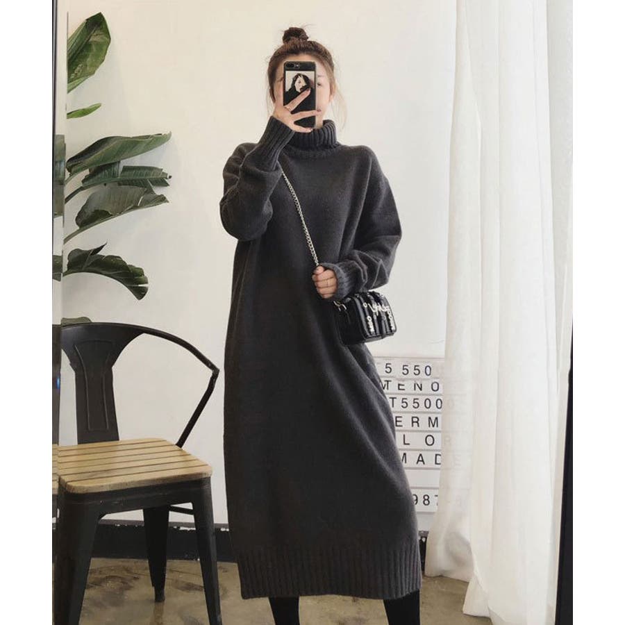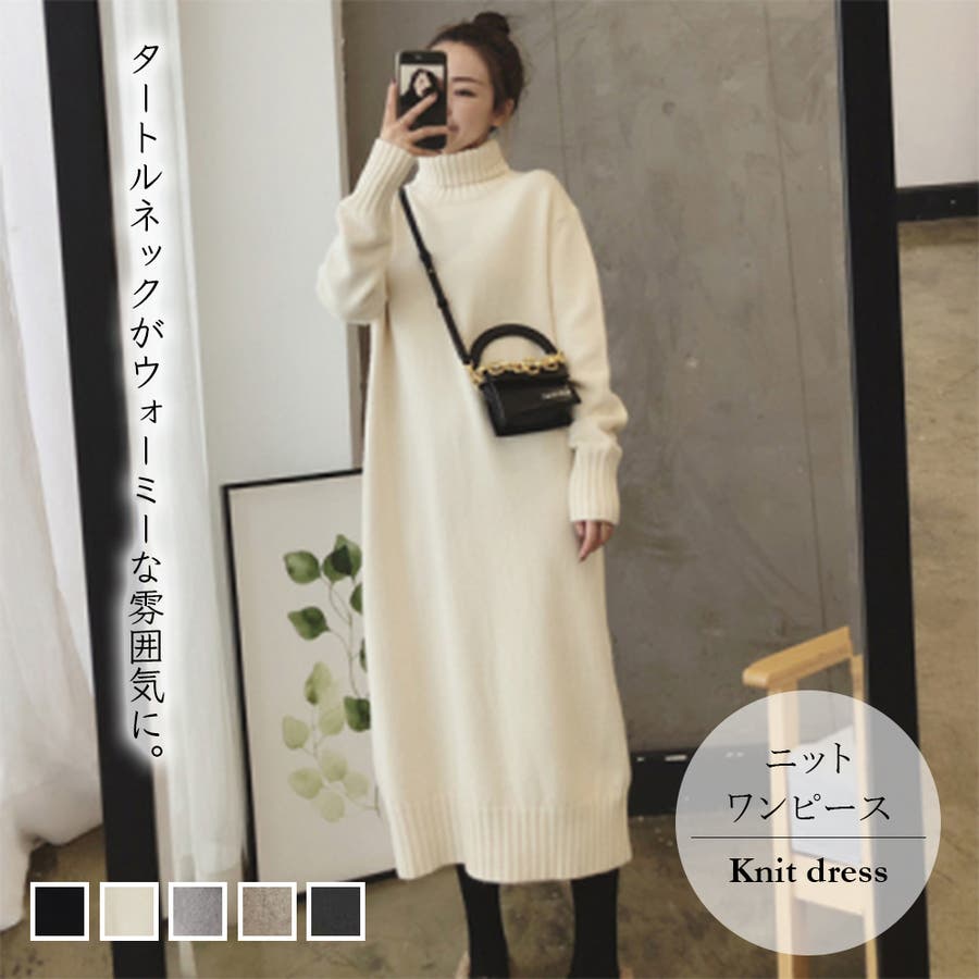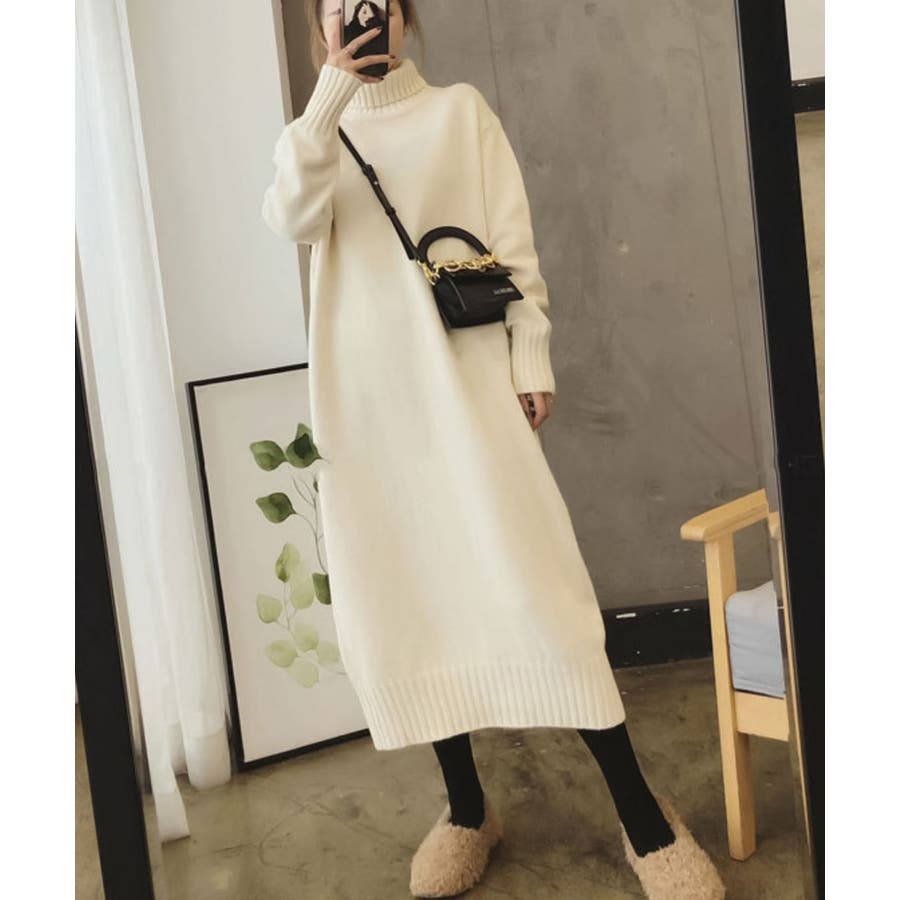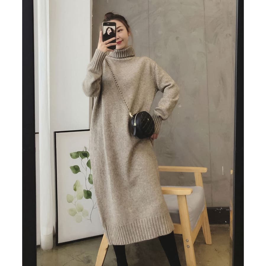 タートルネックがウォーミーな雰囲気のニットワンピース