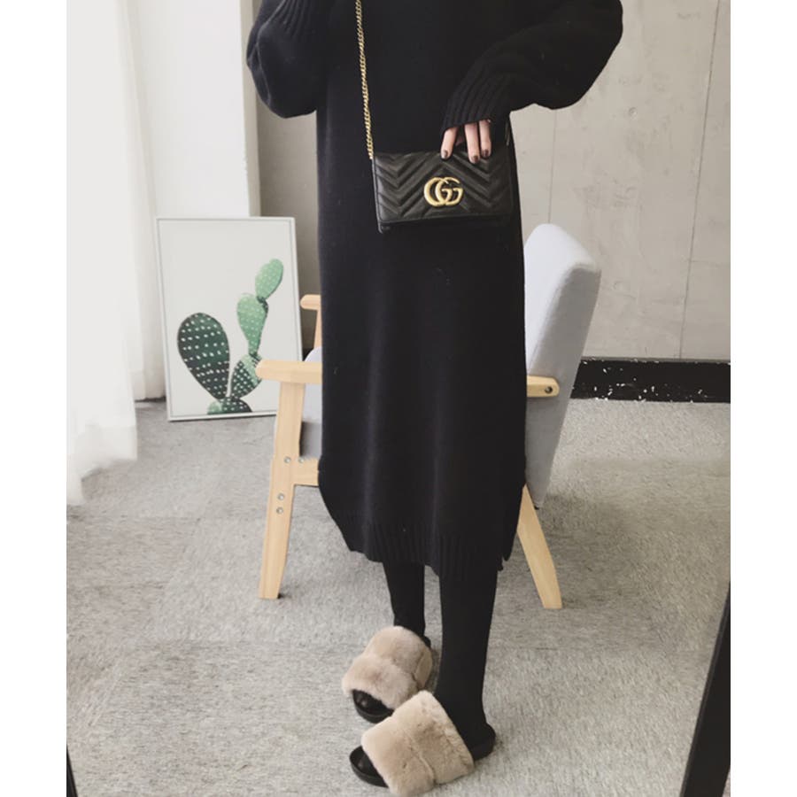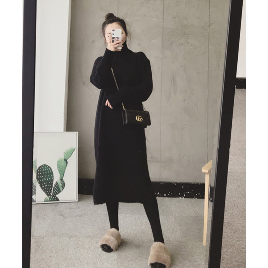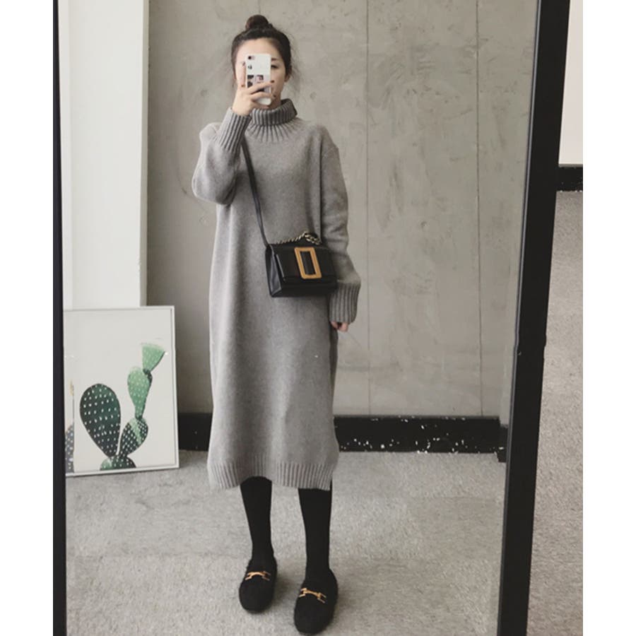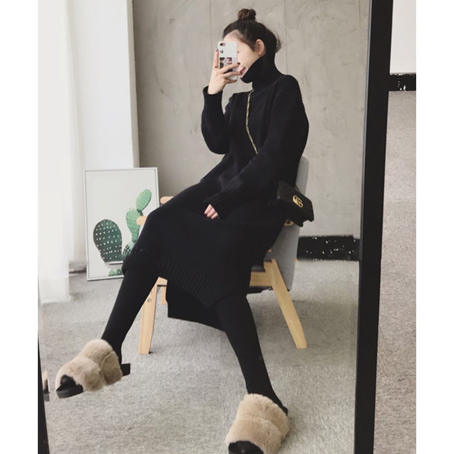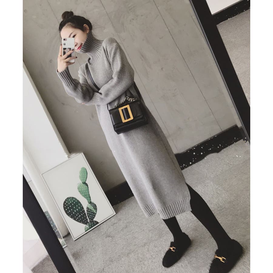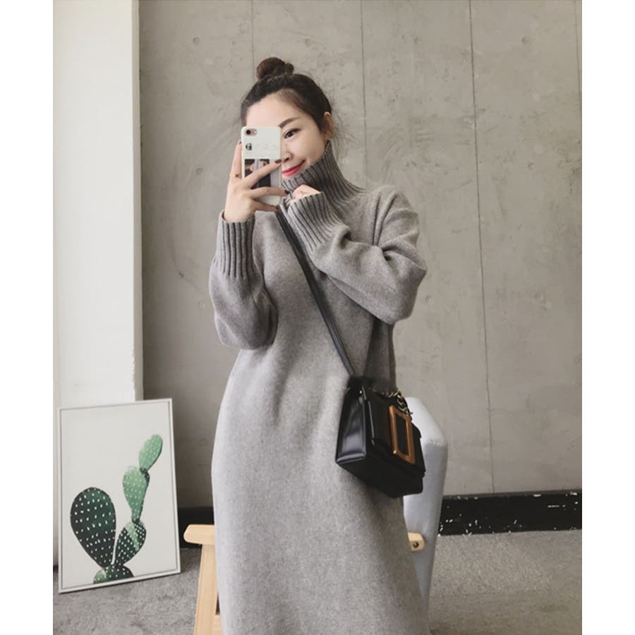 ハイネックニットワンピース【韓国ファッション】