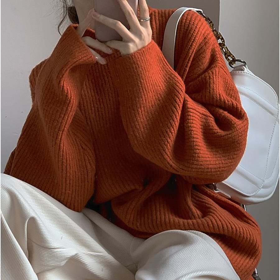 オレンジブラウンで派手すぎず着やすいです。さん (20代 / 女性 / 身長155~160cm / 体重40~44kg)購入アイテム:カラー オレンジサイズ Fいつものトップスサイズ:Mサイズ感:ぴったり - サイズ小さめ