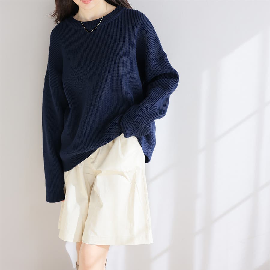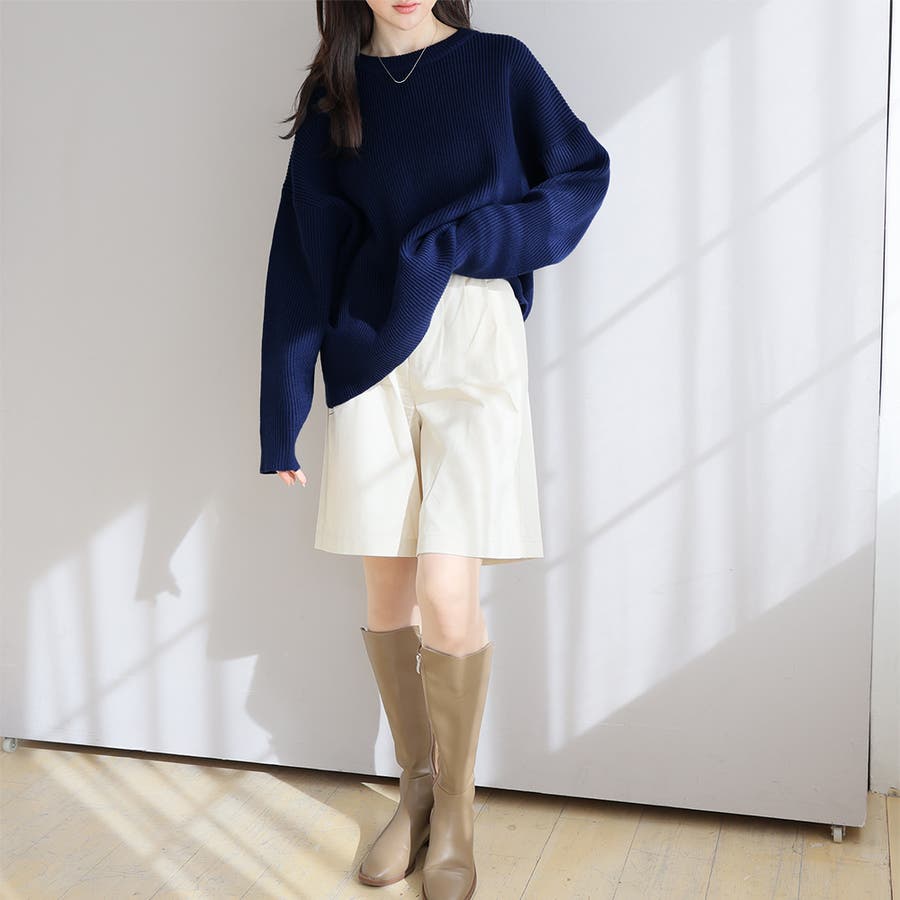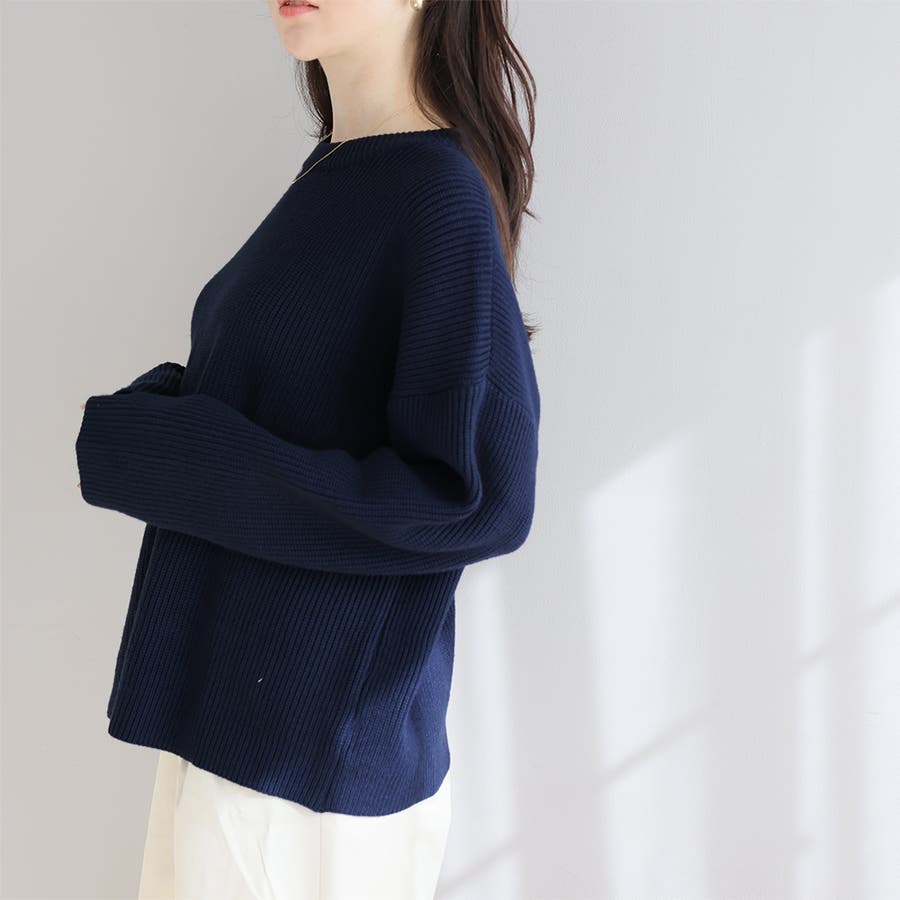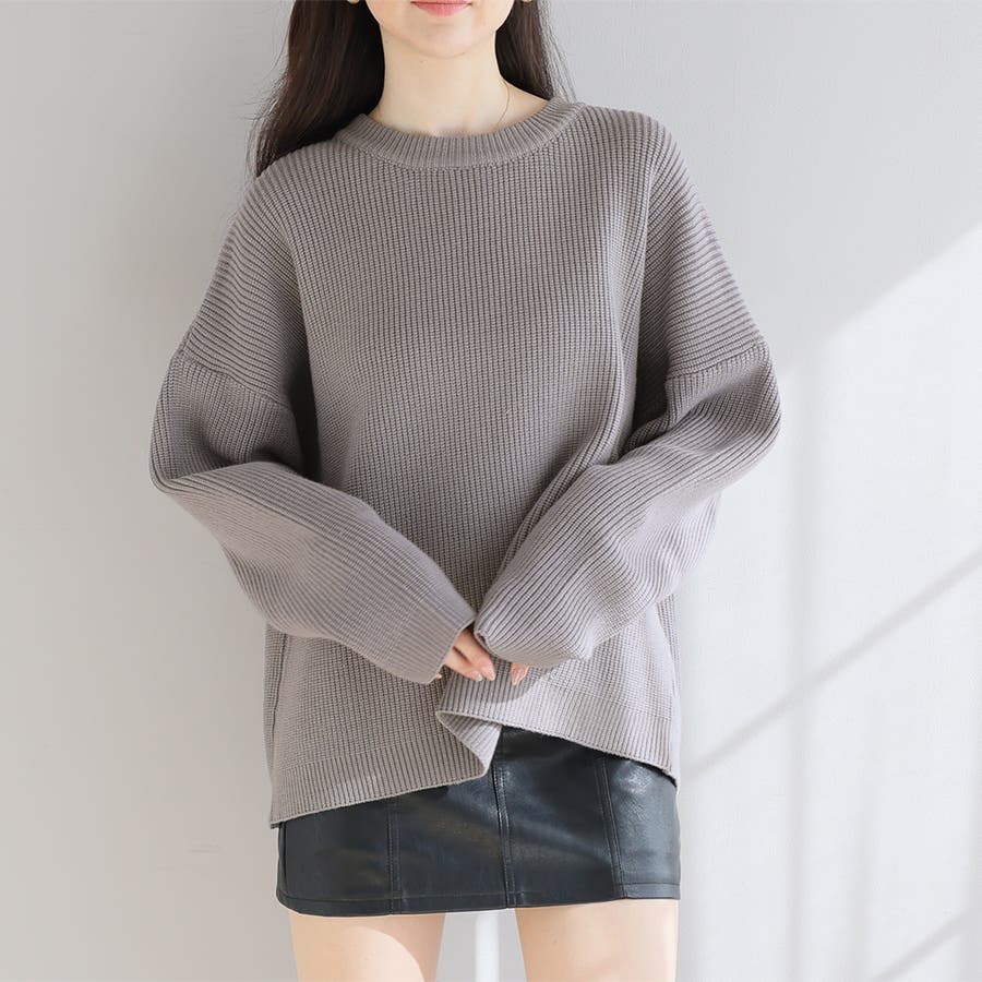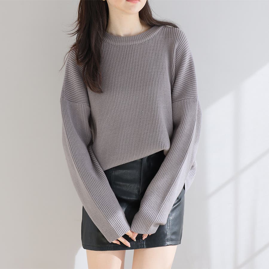 詰まりすぎないネック部分やドロップショルダーで丸みのあるフォルムの可愛さを引き立たせました。
