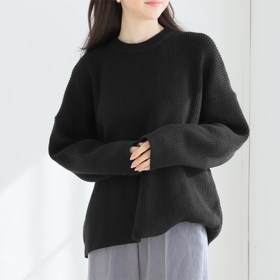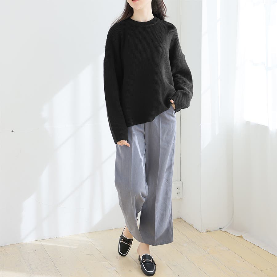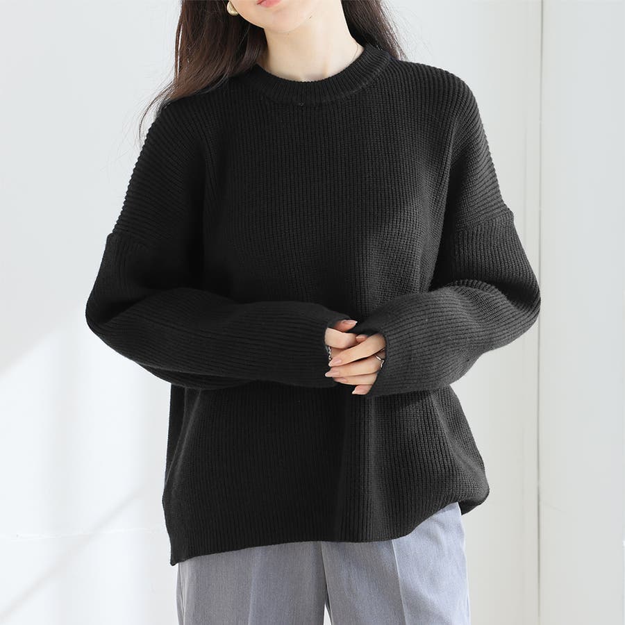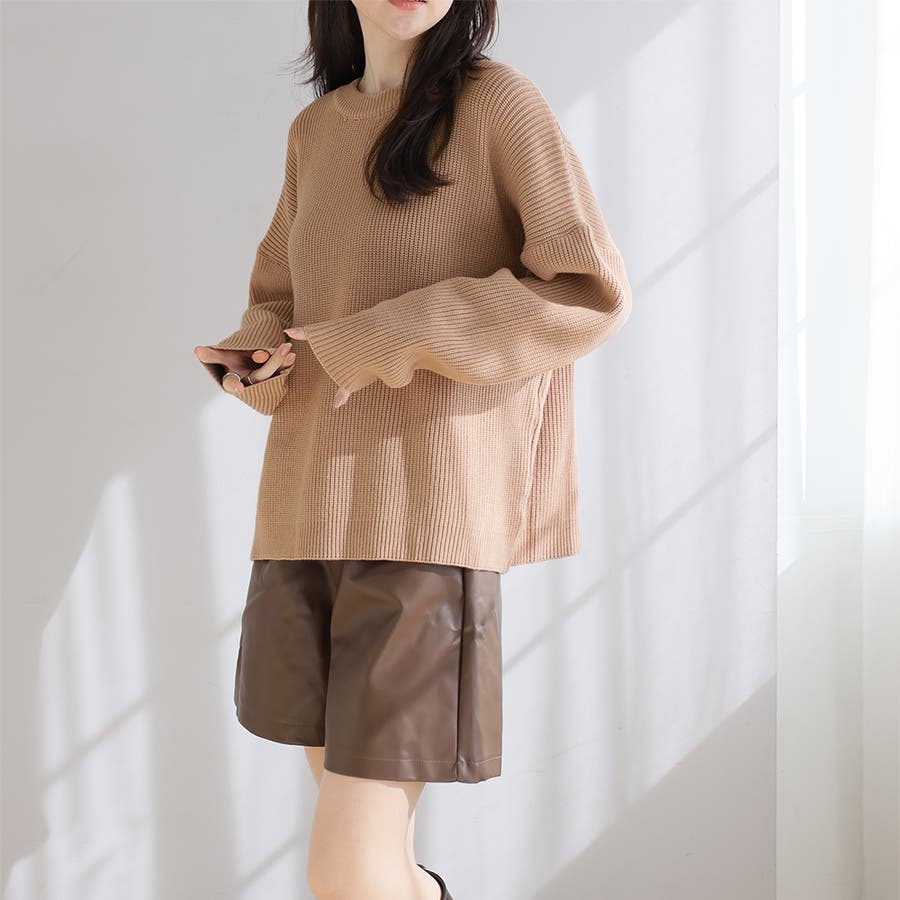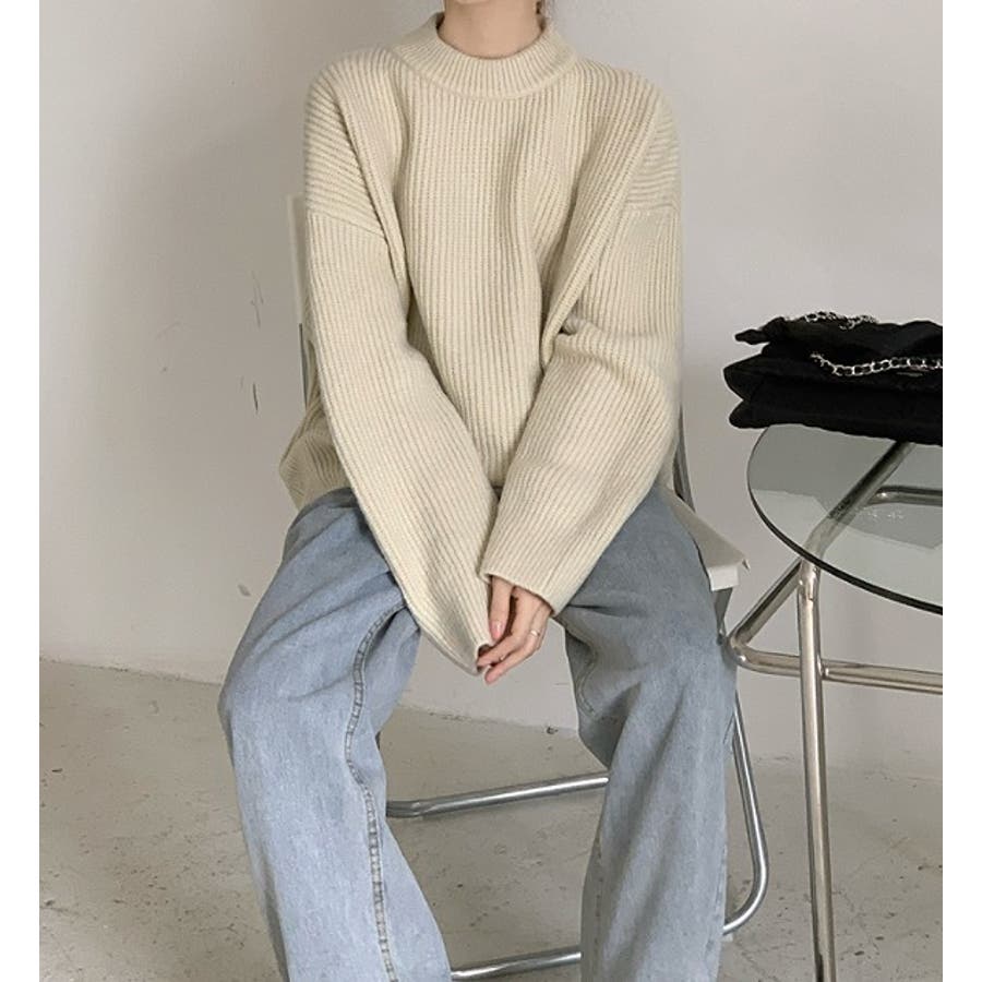 詰まりすぎないネック部分やドロップショルダーで丸みのあるフォルムの可愛さを引き立たせました。