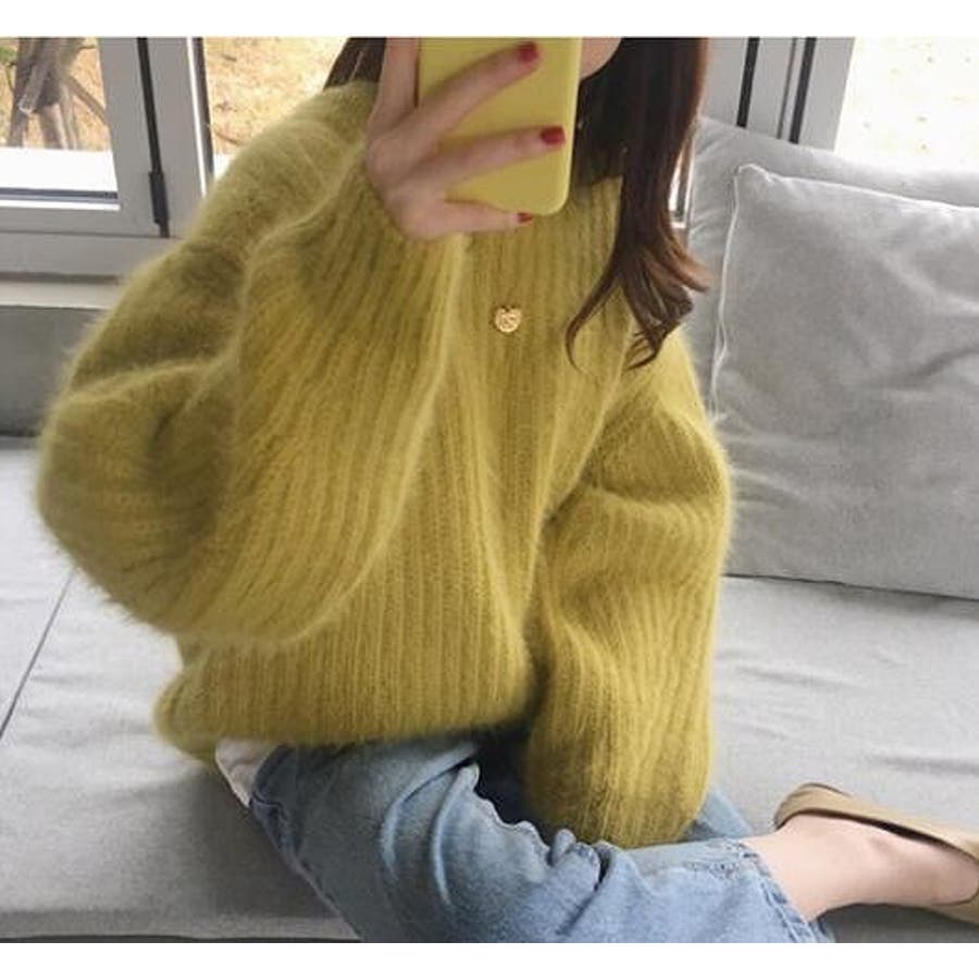 ふわふわとした柔らかな手触りに癒される、フェミニンなシャギーニット。