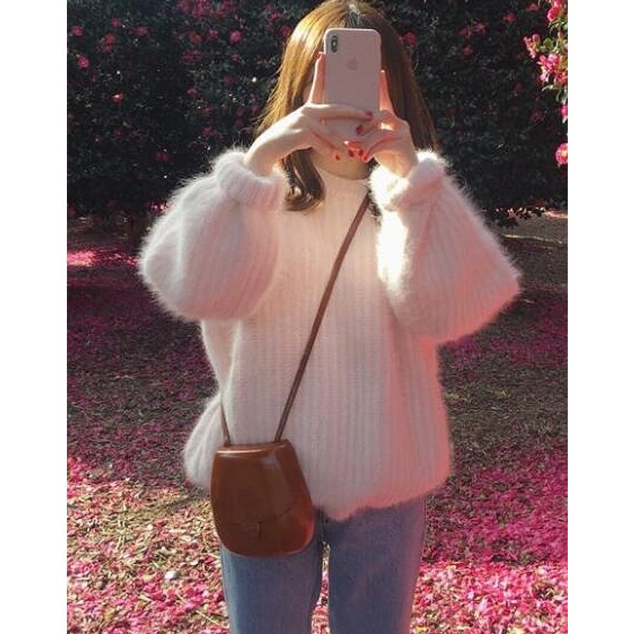 毛足の長いシャギーニットのとろみ感がとにかく心地よく、秋冬手放せないアイテム◎