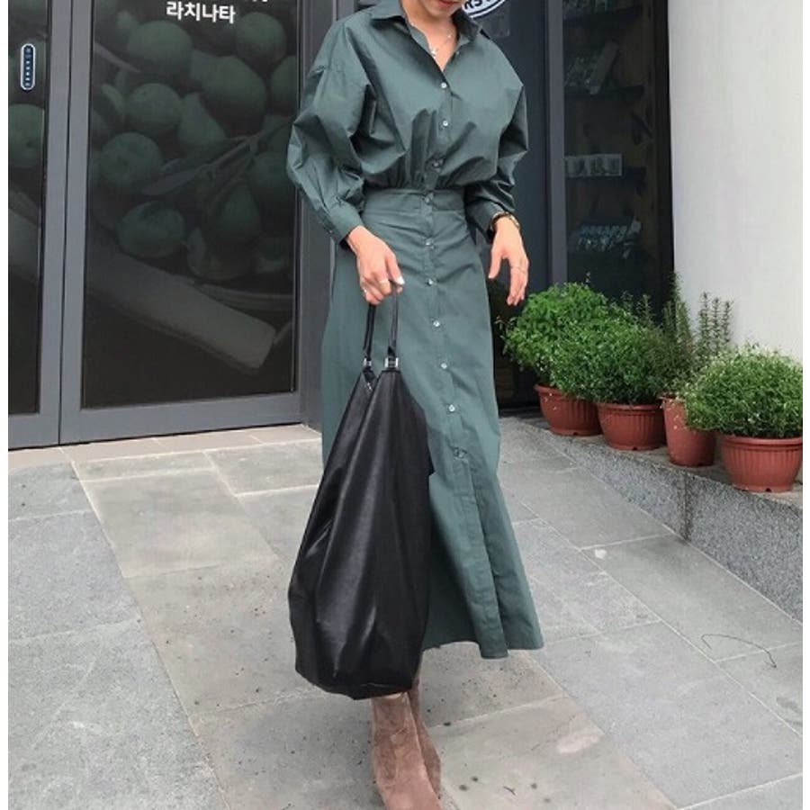 1枚でも着用しやすい丈感。さらりと1枚で着こなすとキレイ目な印象に。