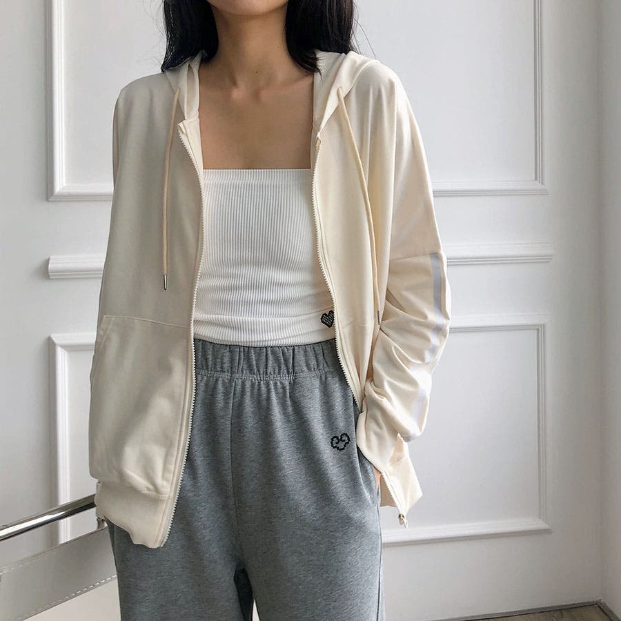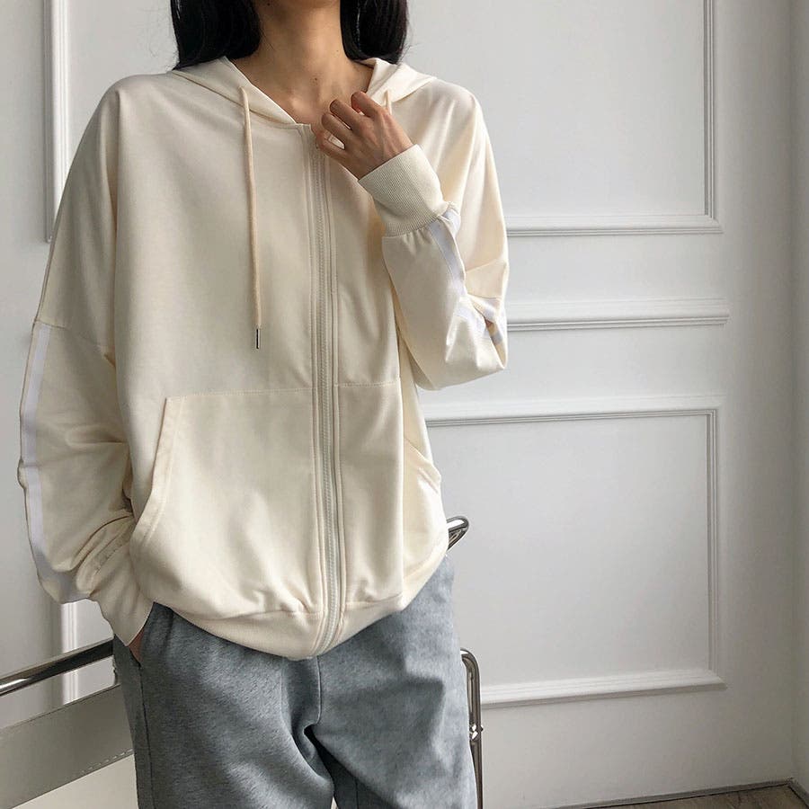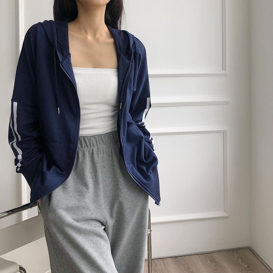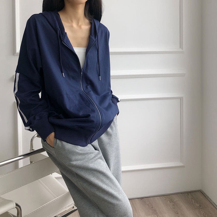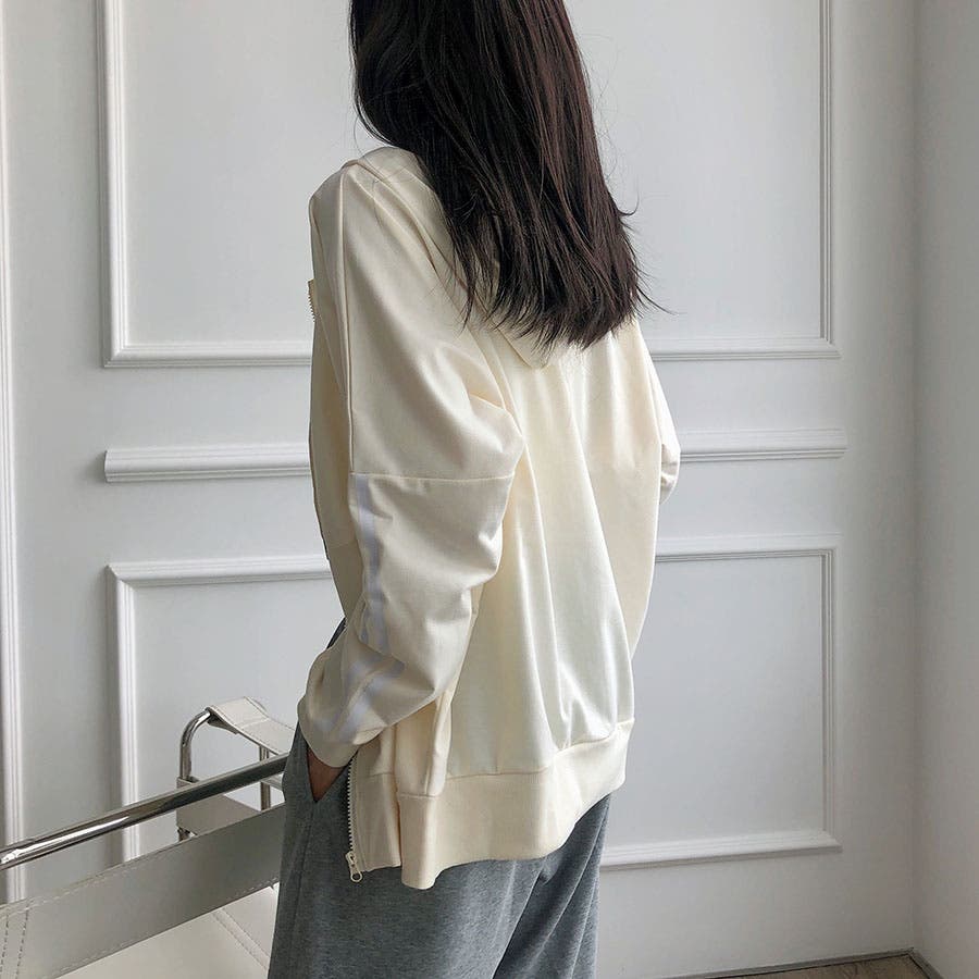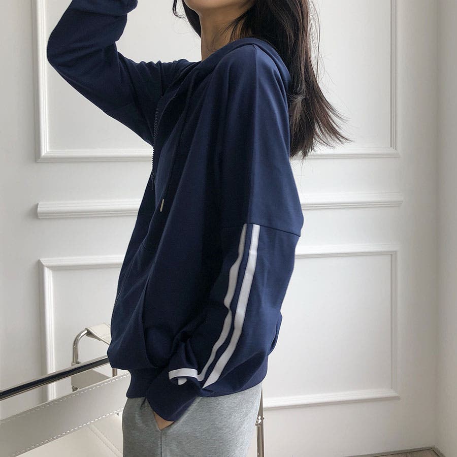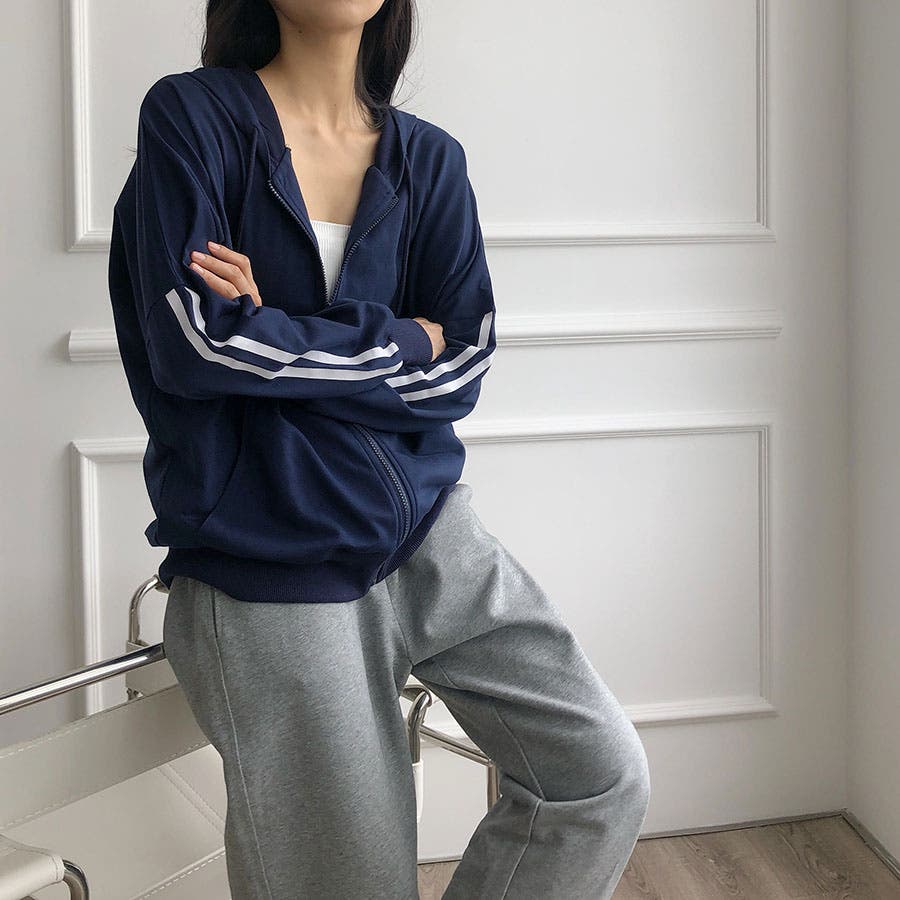 ・袖のラインがスポーティーな印象のコーデに仕上げてくれます。