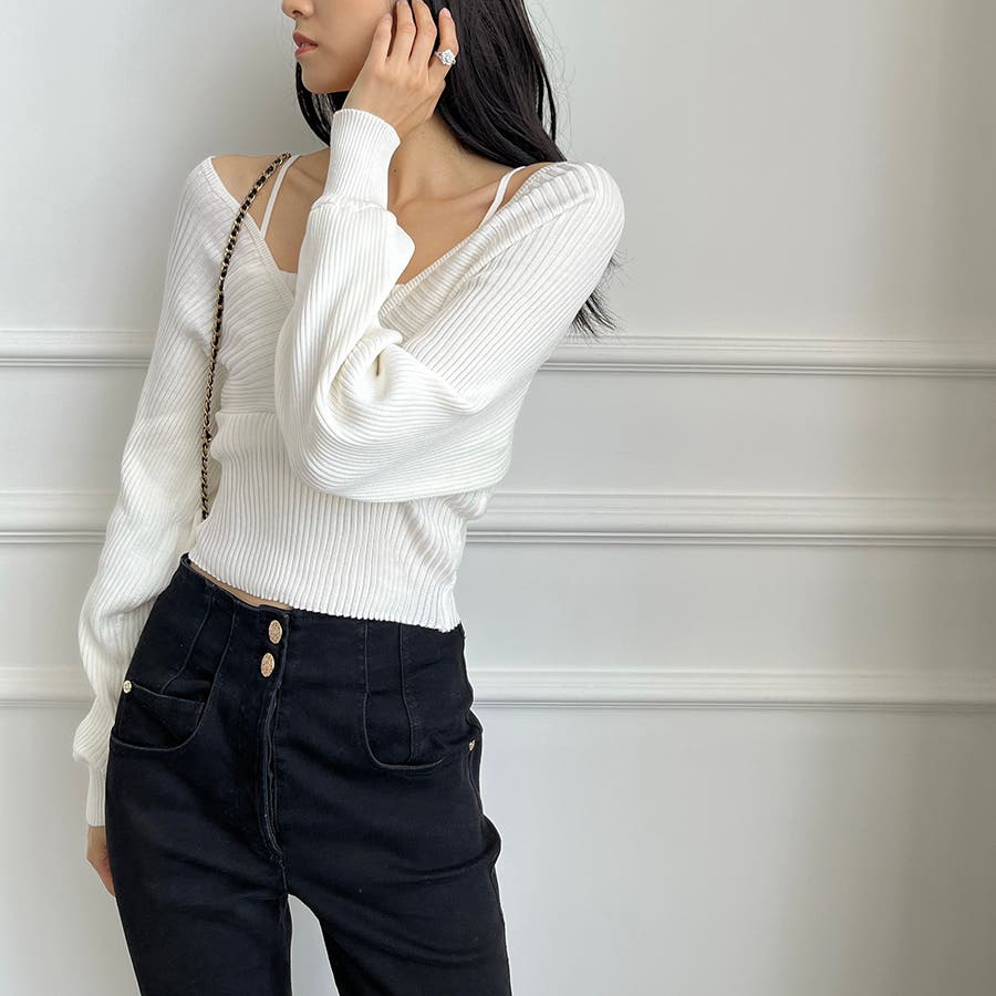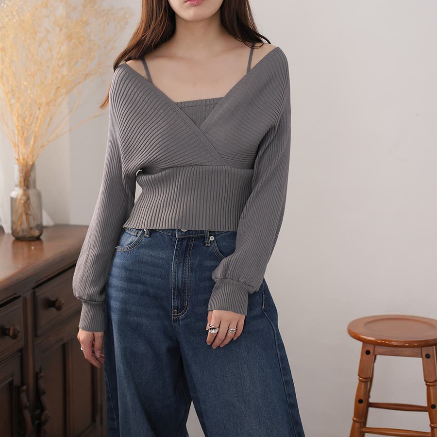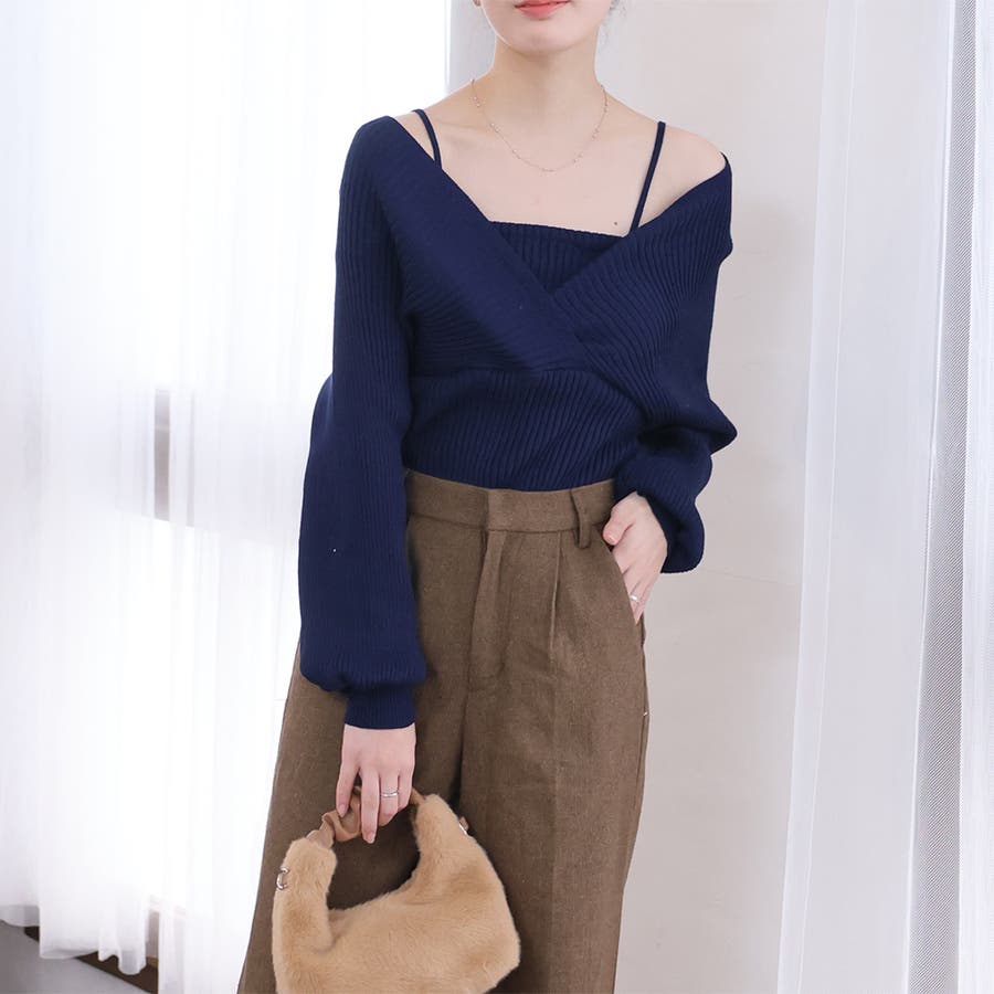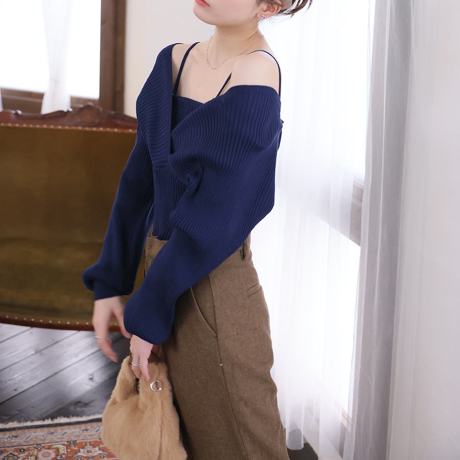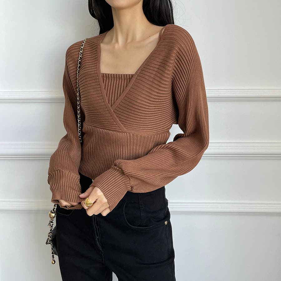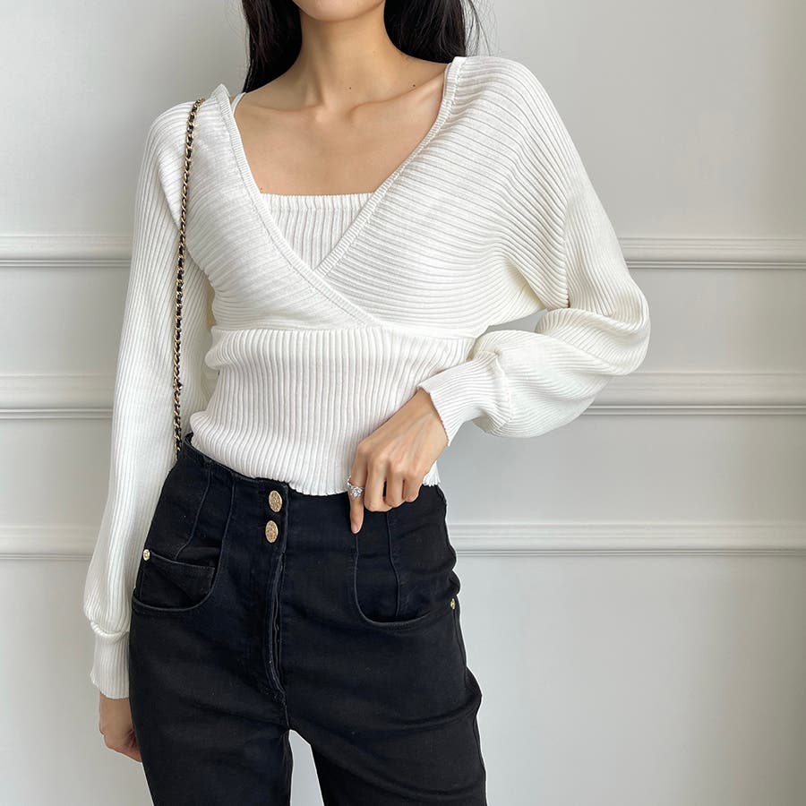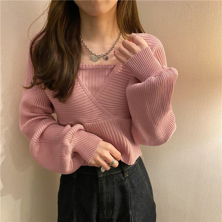 レイヤードして見えるVネックとボリュームを持たせた袖でメリハリのある着こなしが叶います。