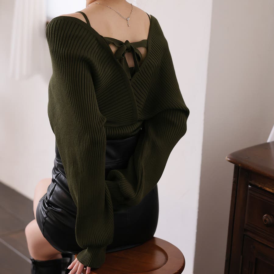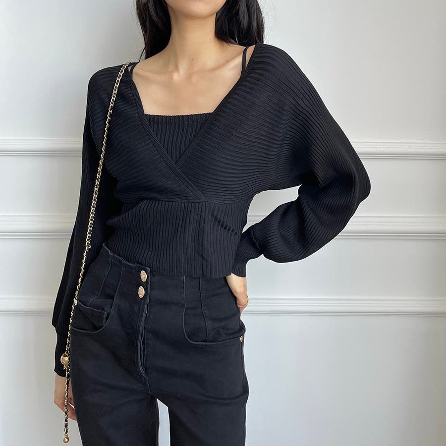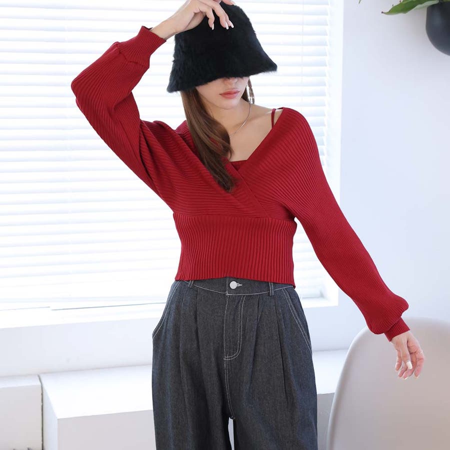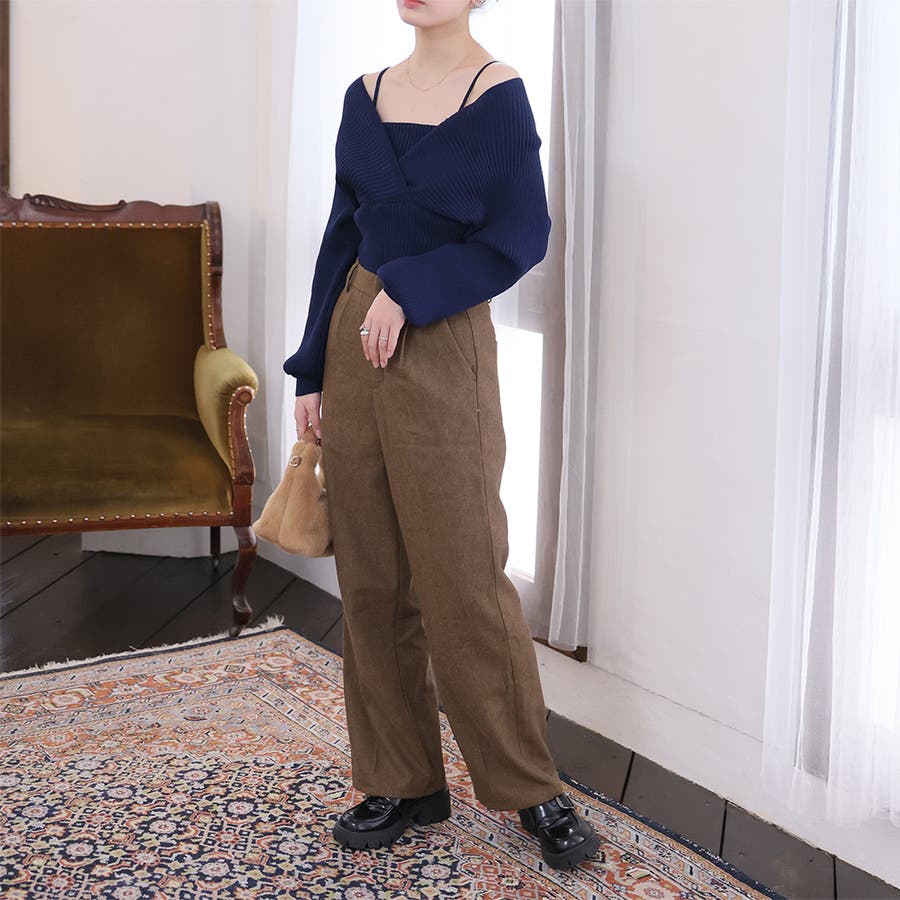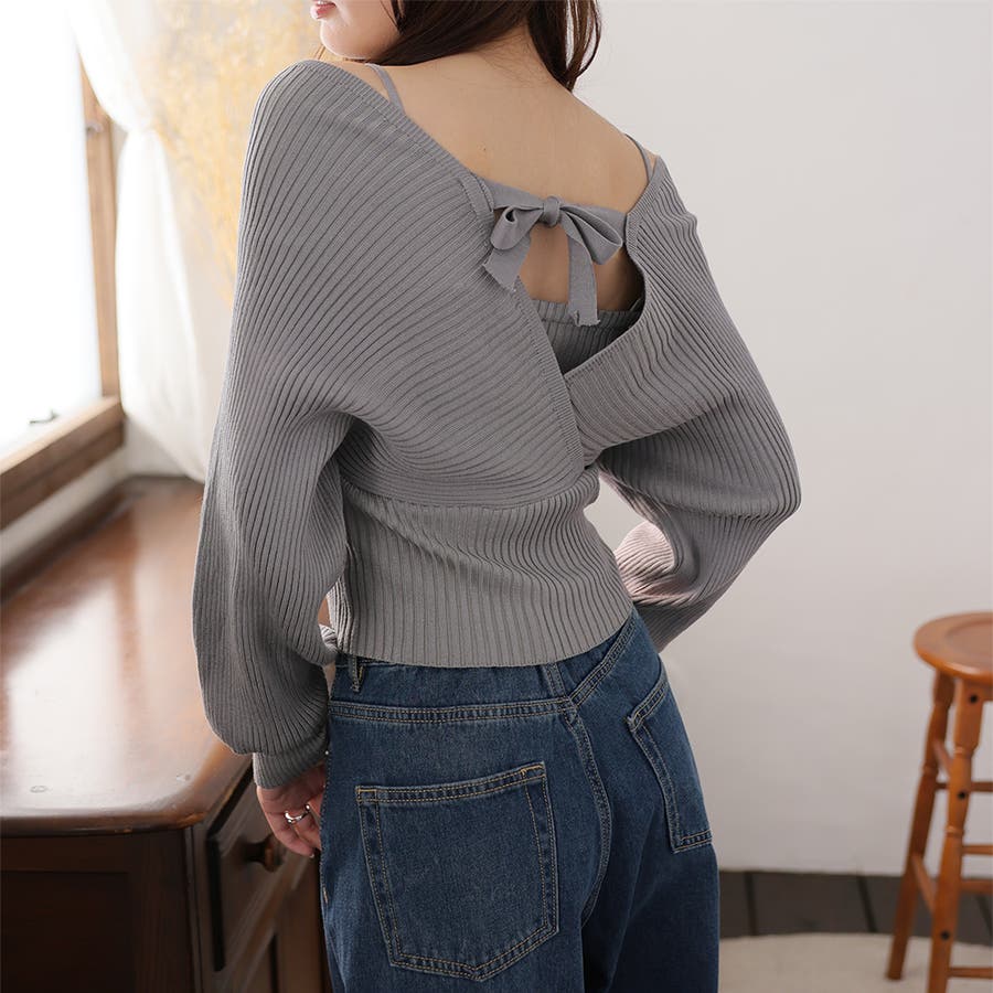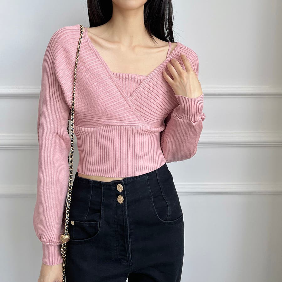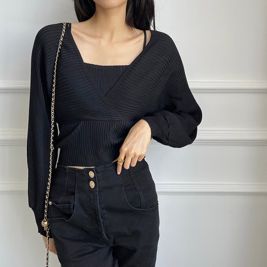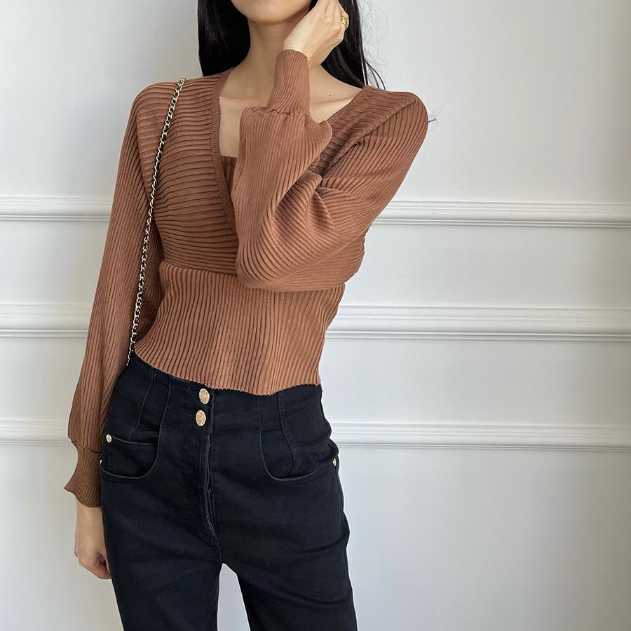 レイヤードして見えるVネックとボリュームを持たせた袖でメリハリのある着こなしが叶います。