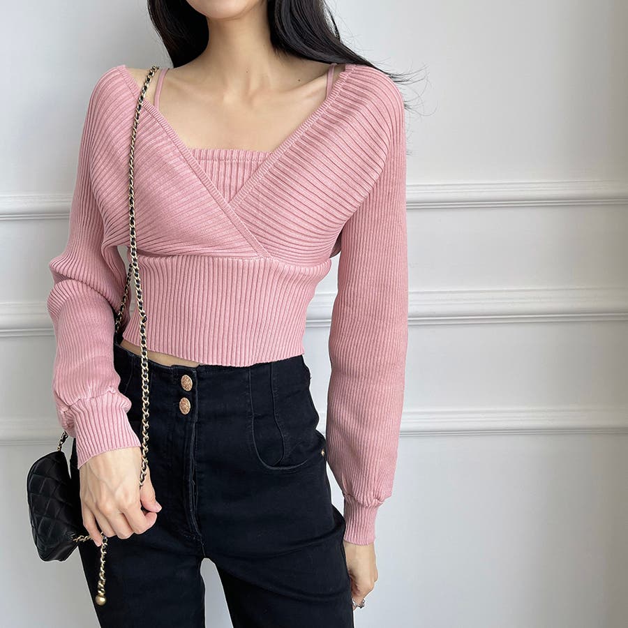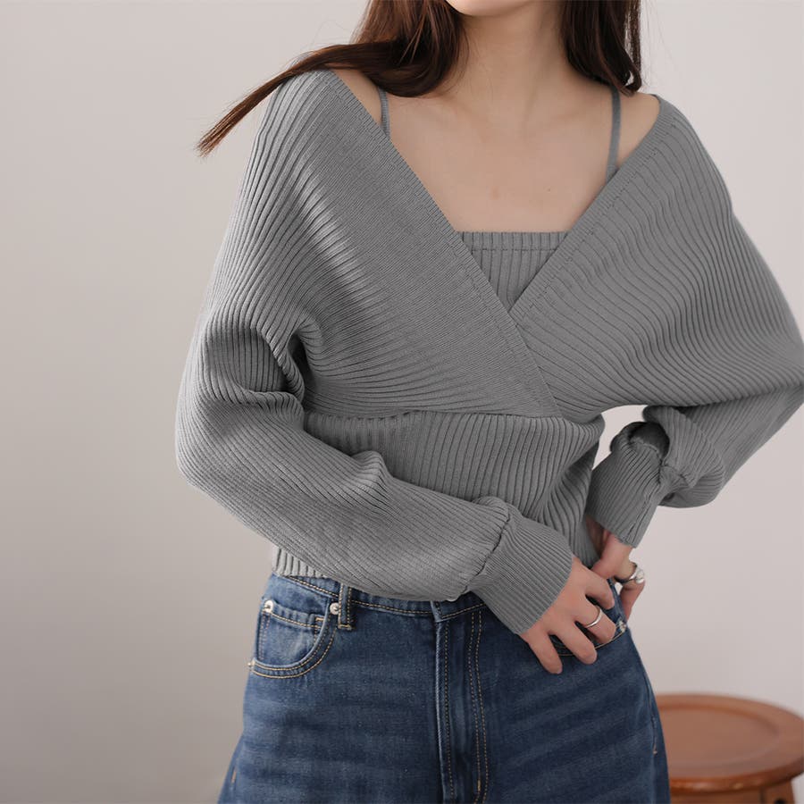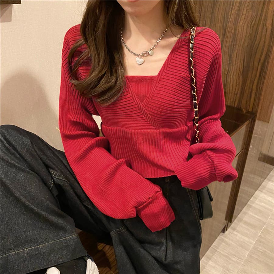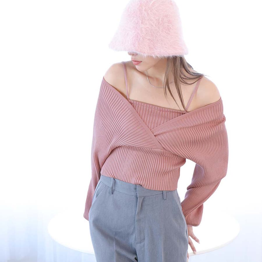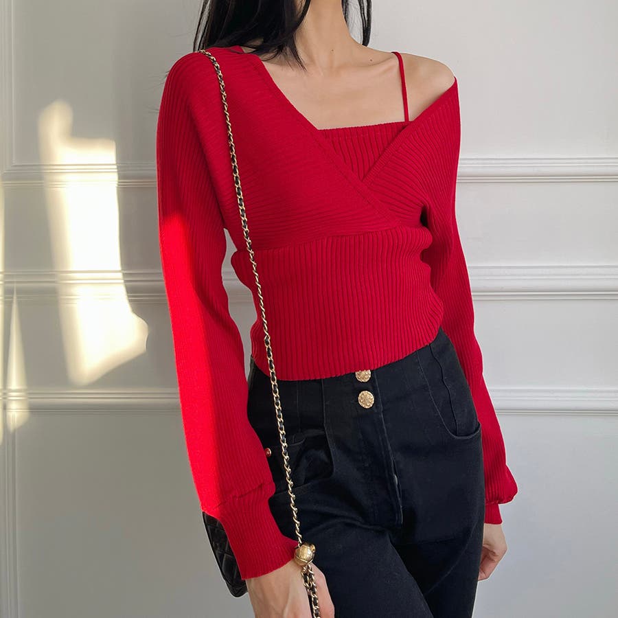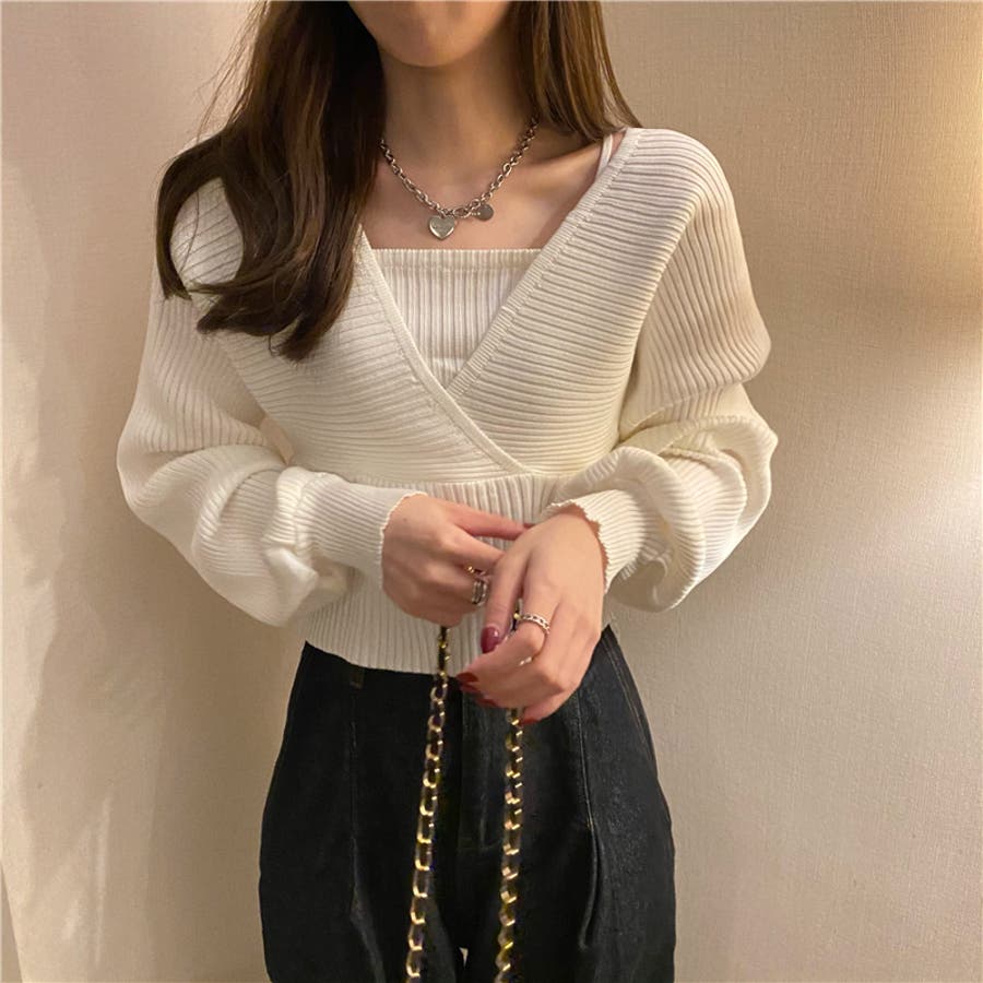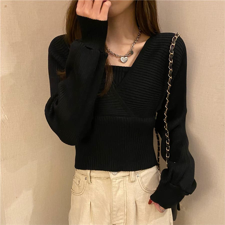 レイヤードして見えるVネックとボリュームを持たせた袖でメリハリのある着こなしが叶います。