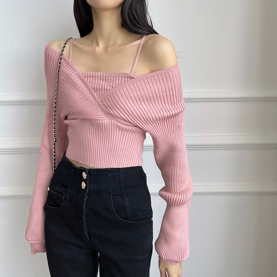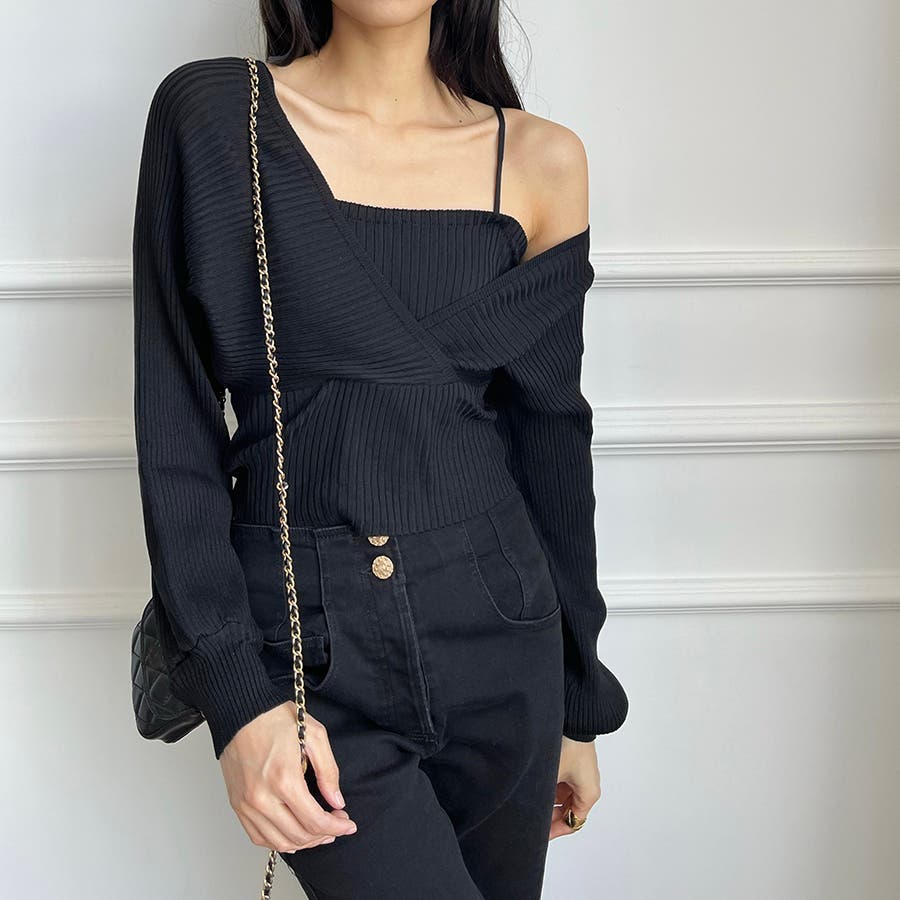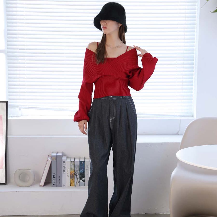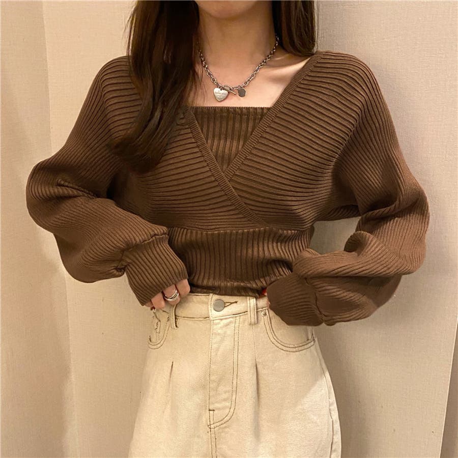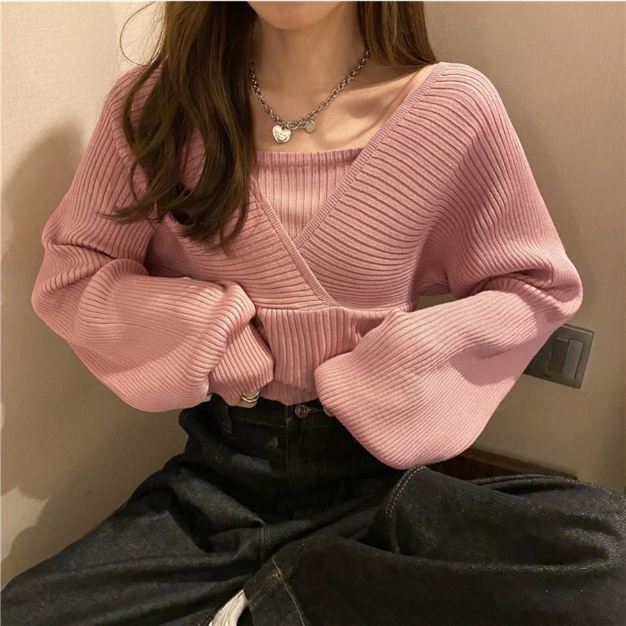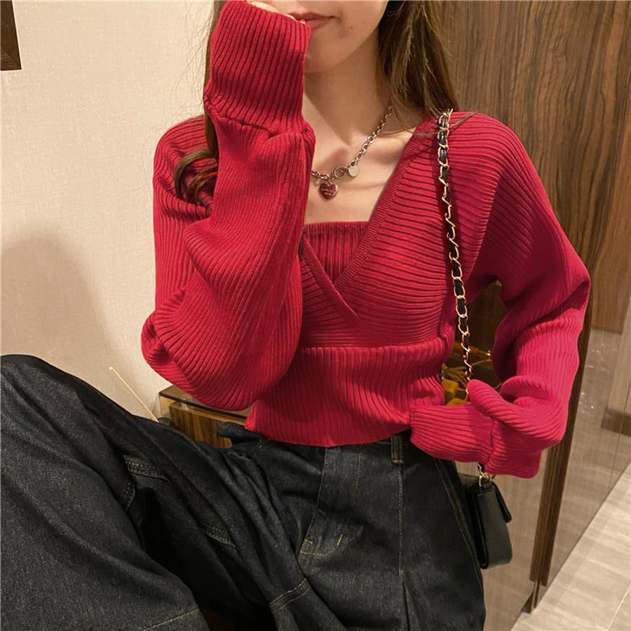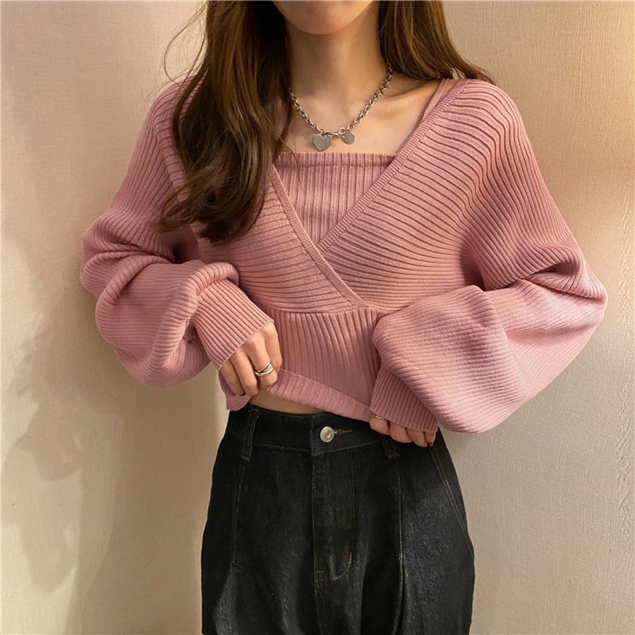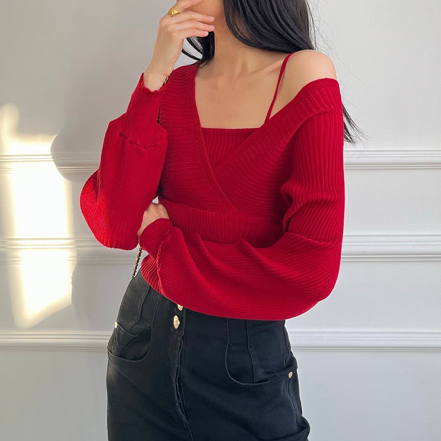 レイヤードして見えるVネックとボリュームを持たせた袖でメリハリのある着こなしが叶います。