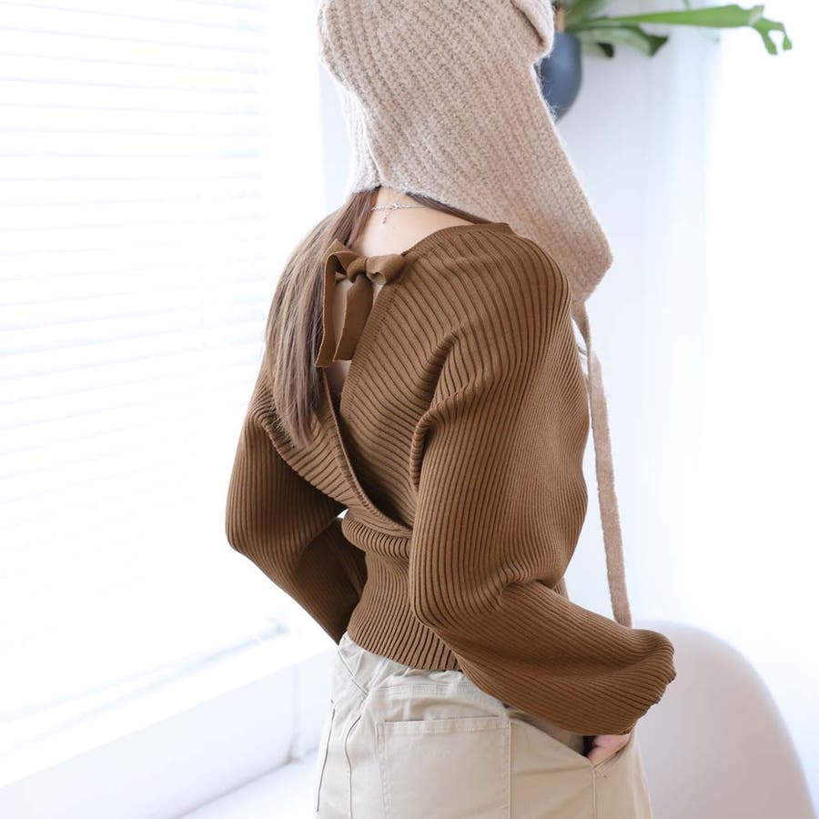 ざっくりとしたリブ編みで大人っぽく着られるのも◎。